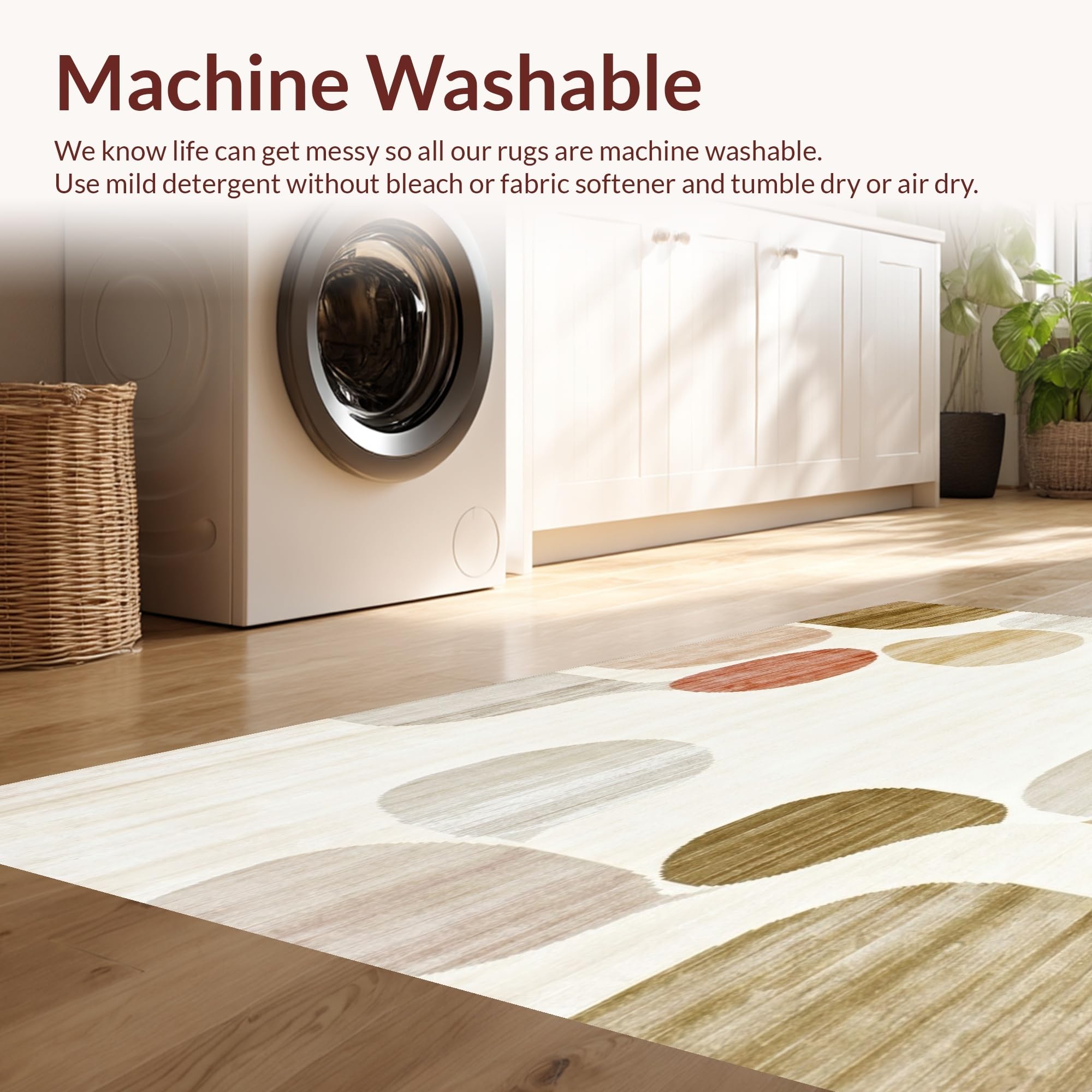 - Machine Washable: Our rugs can be easily thrown in the wash machine.