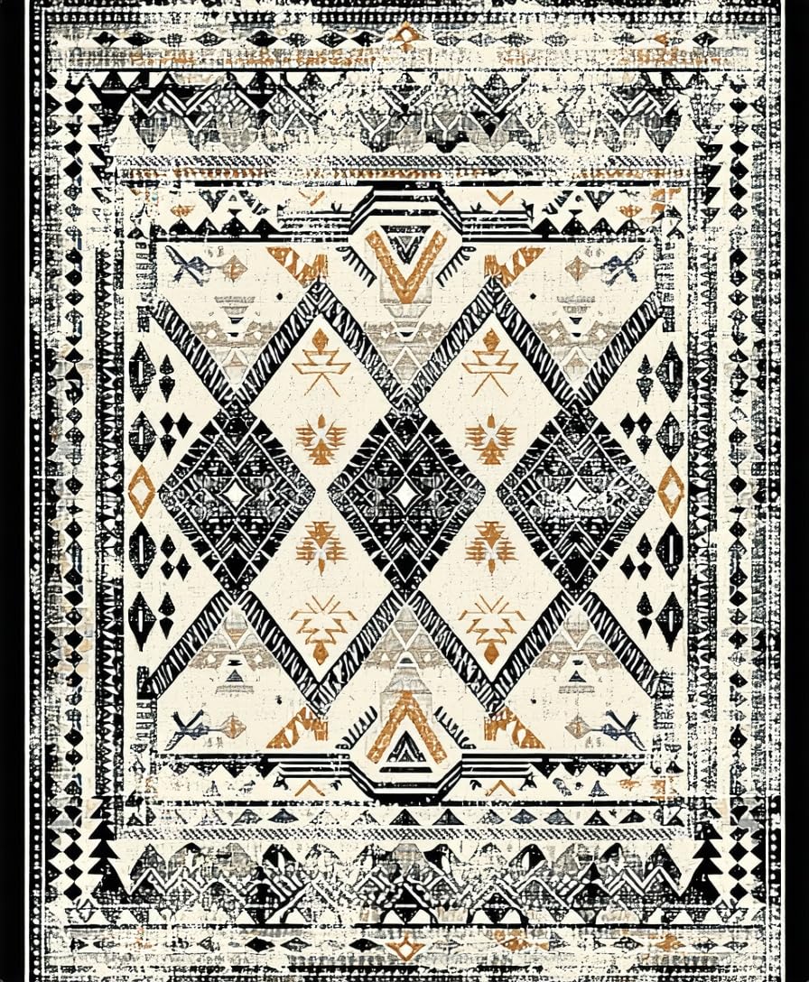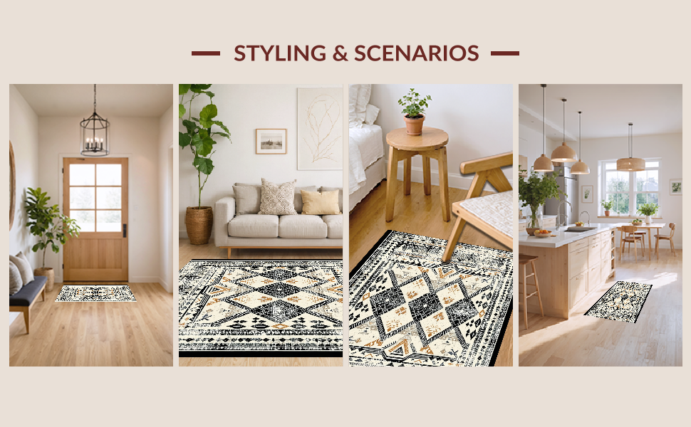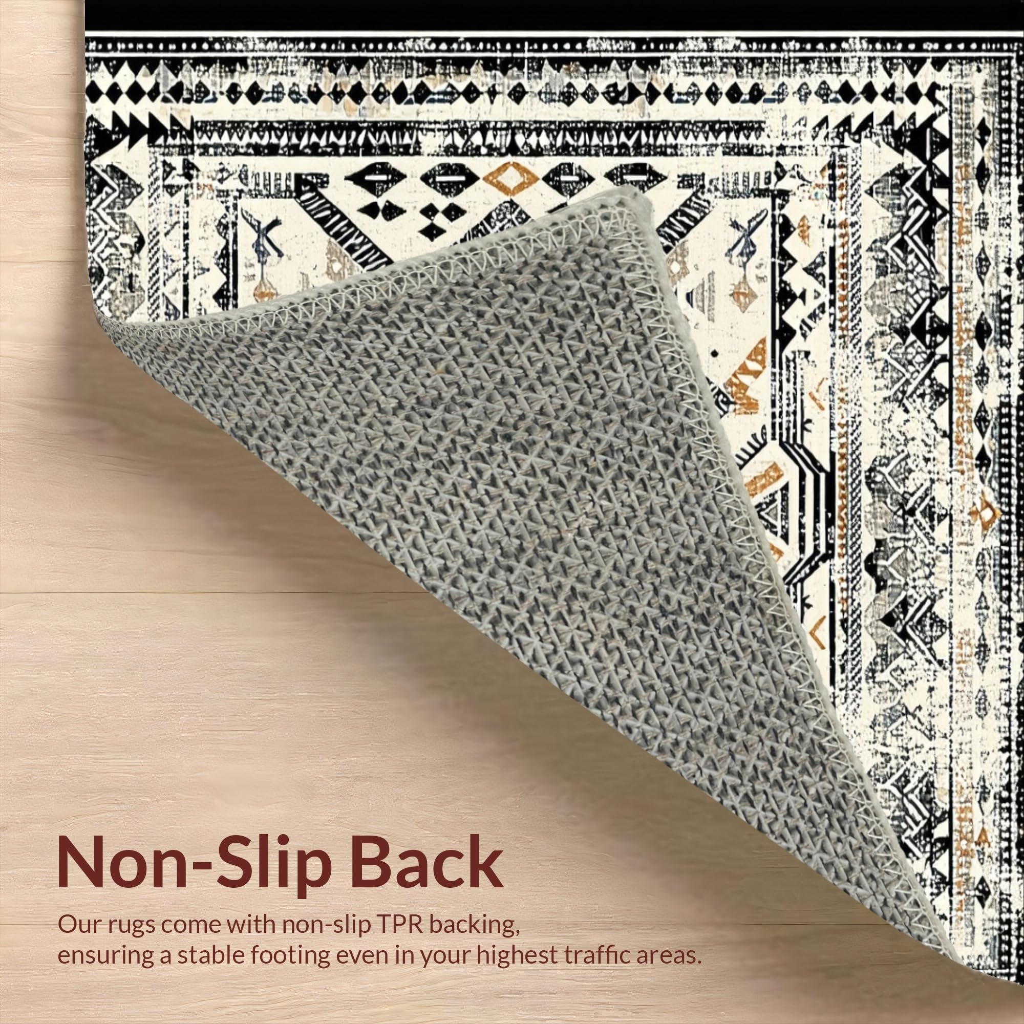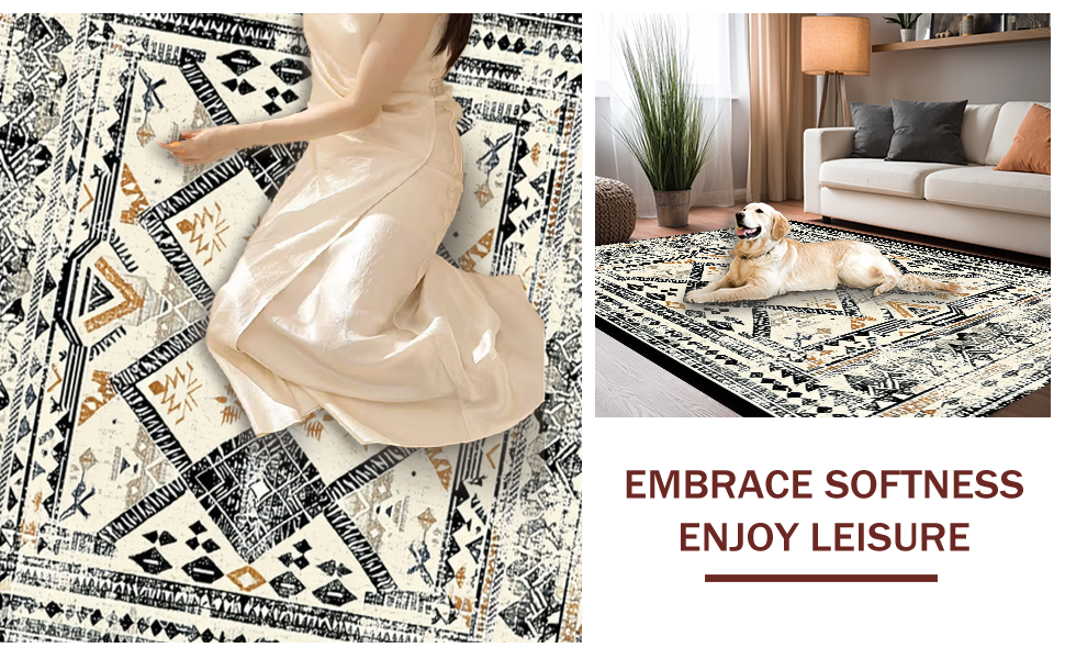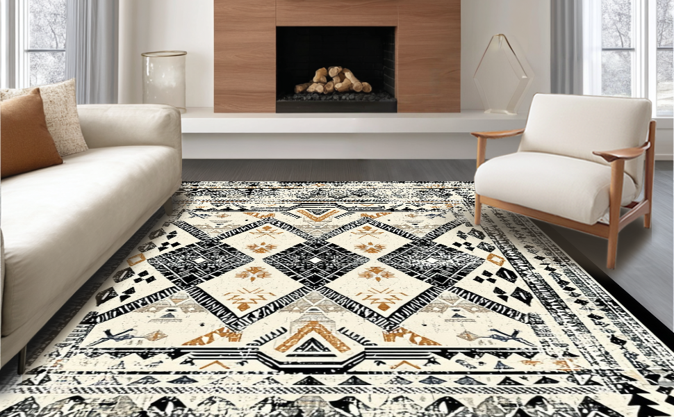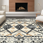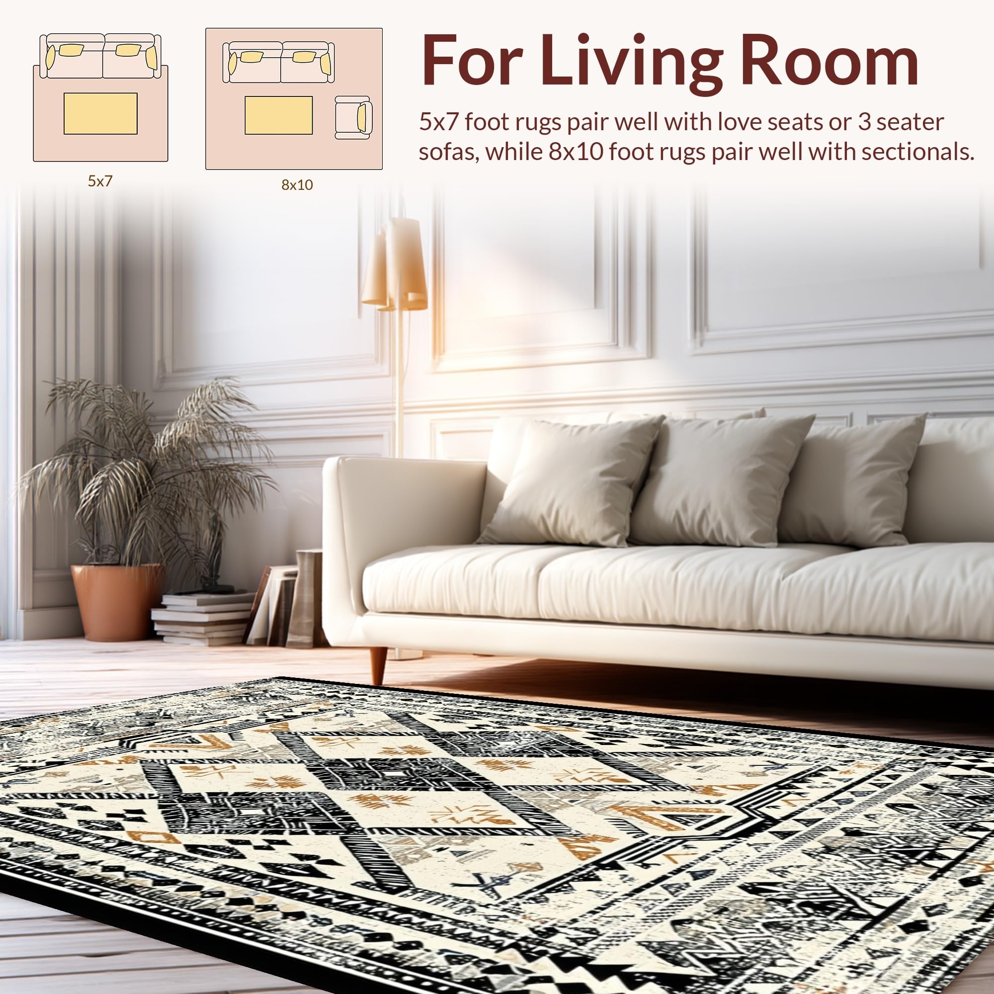 Ultra Soft Area Rug, Non Slip, Stain Resistant, Washable Area Rugs for Living Room, Bedroom, Abstract Rustic Tiled Design(Black) Overview: