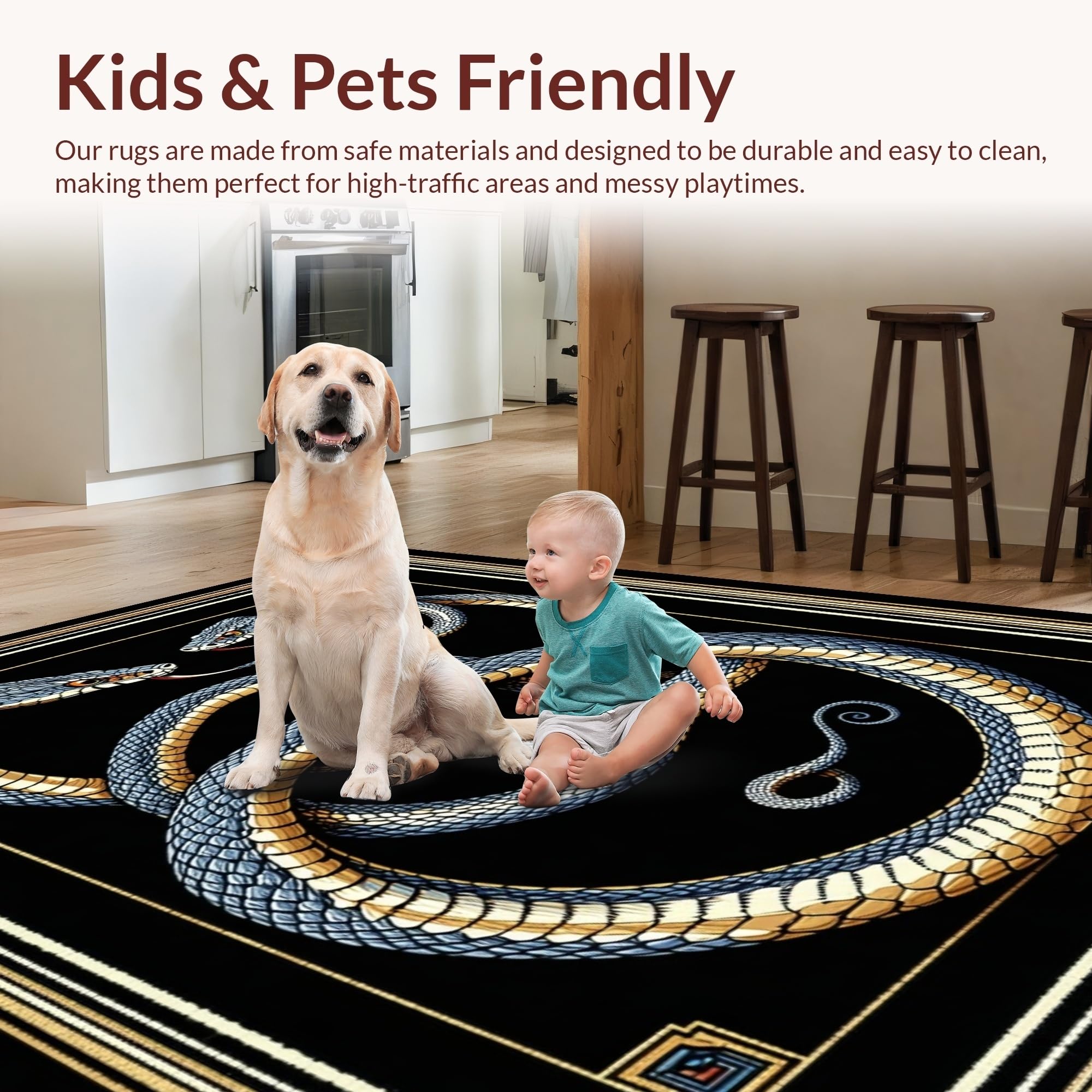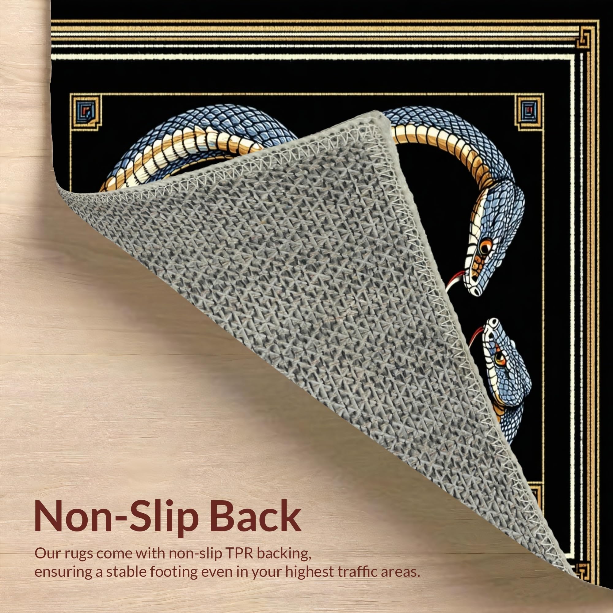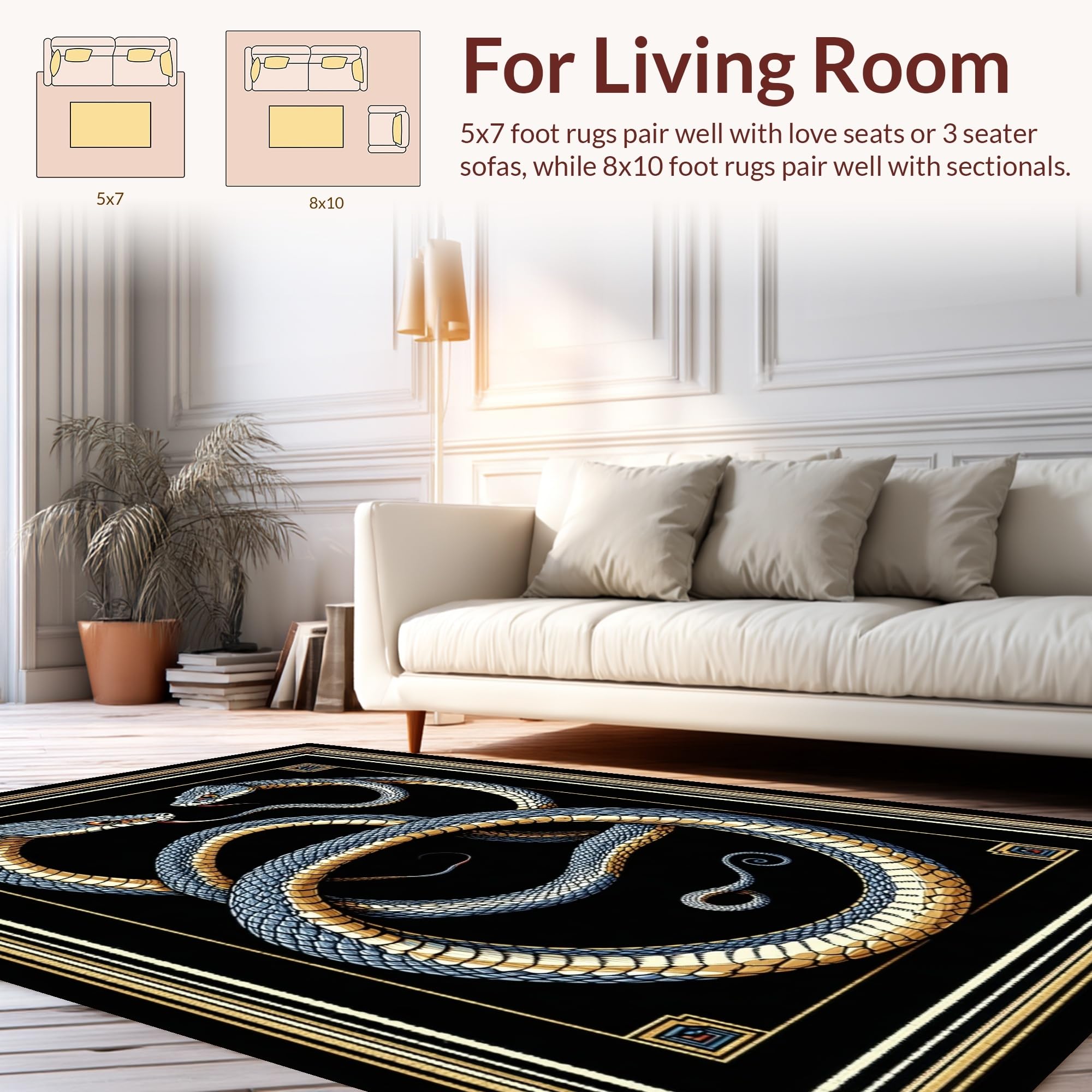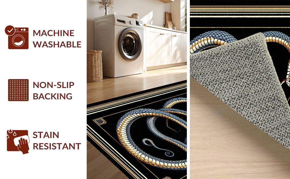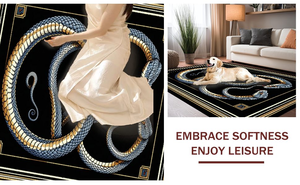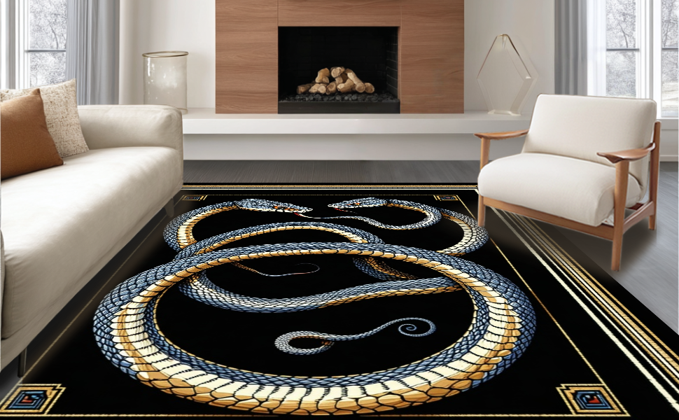 Ultra Soft Area Rug, Non Slip, Stain Resistant, Washable Area Rugs for Living Room, Bedroom, Abstract Serpent Motif Elegance(Blue) Overview: