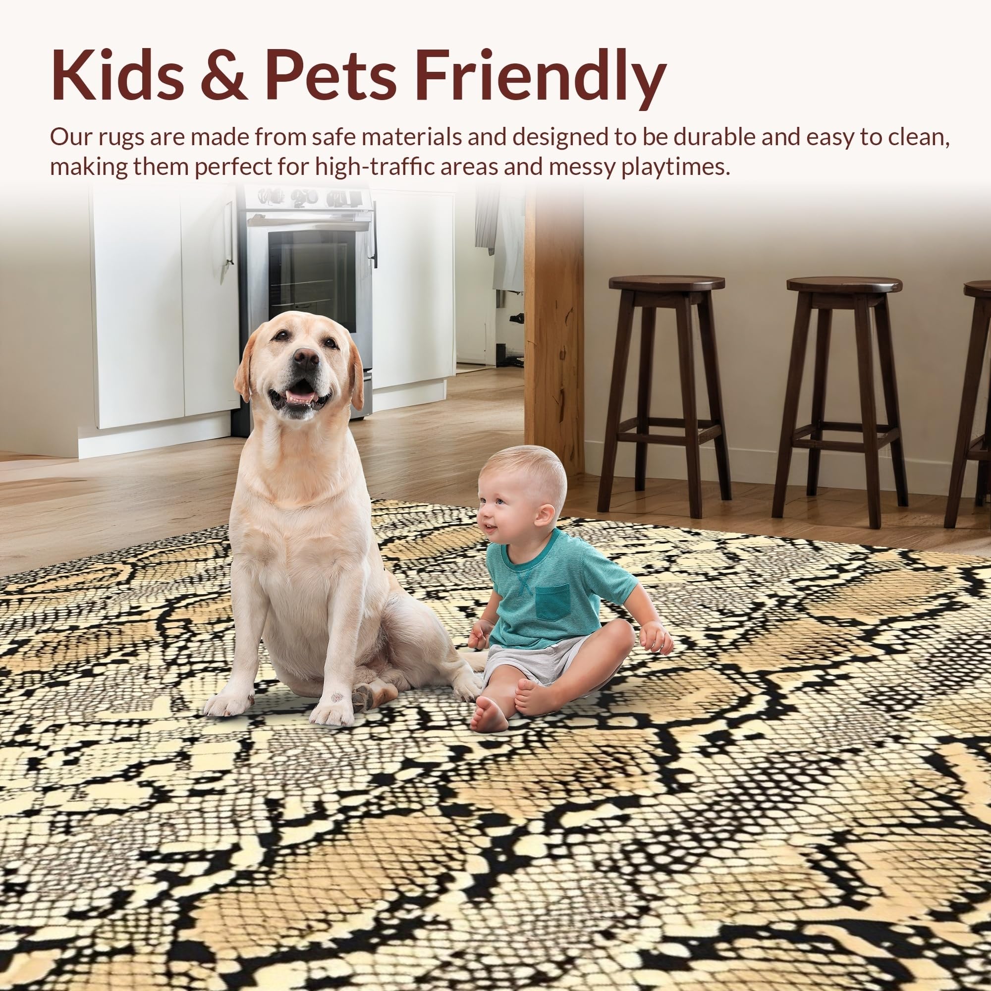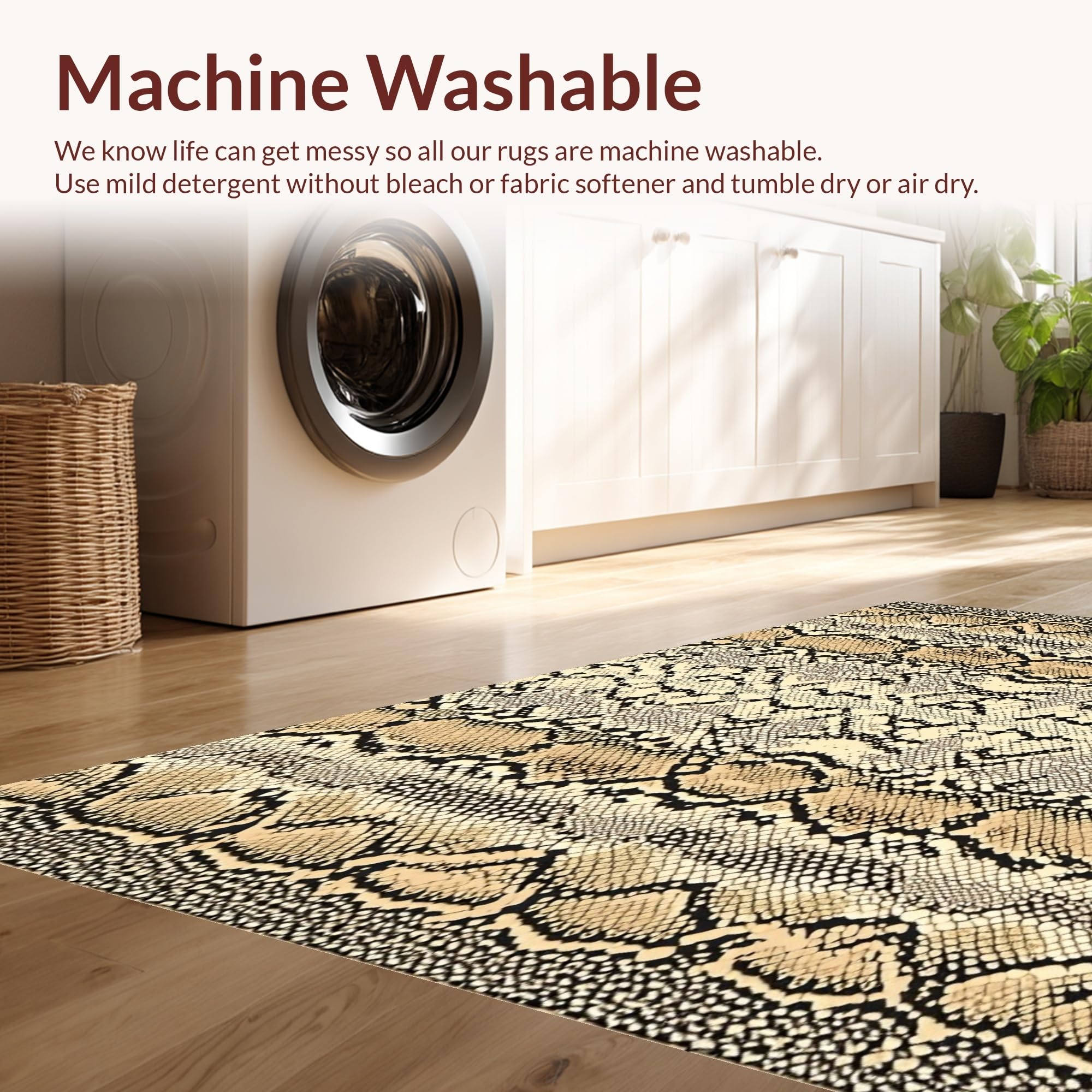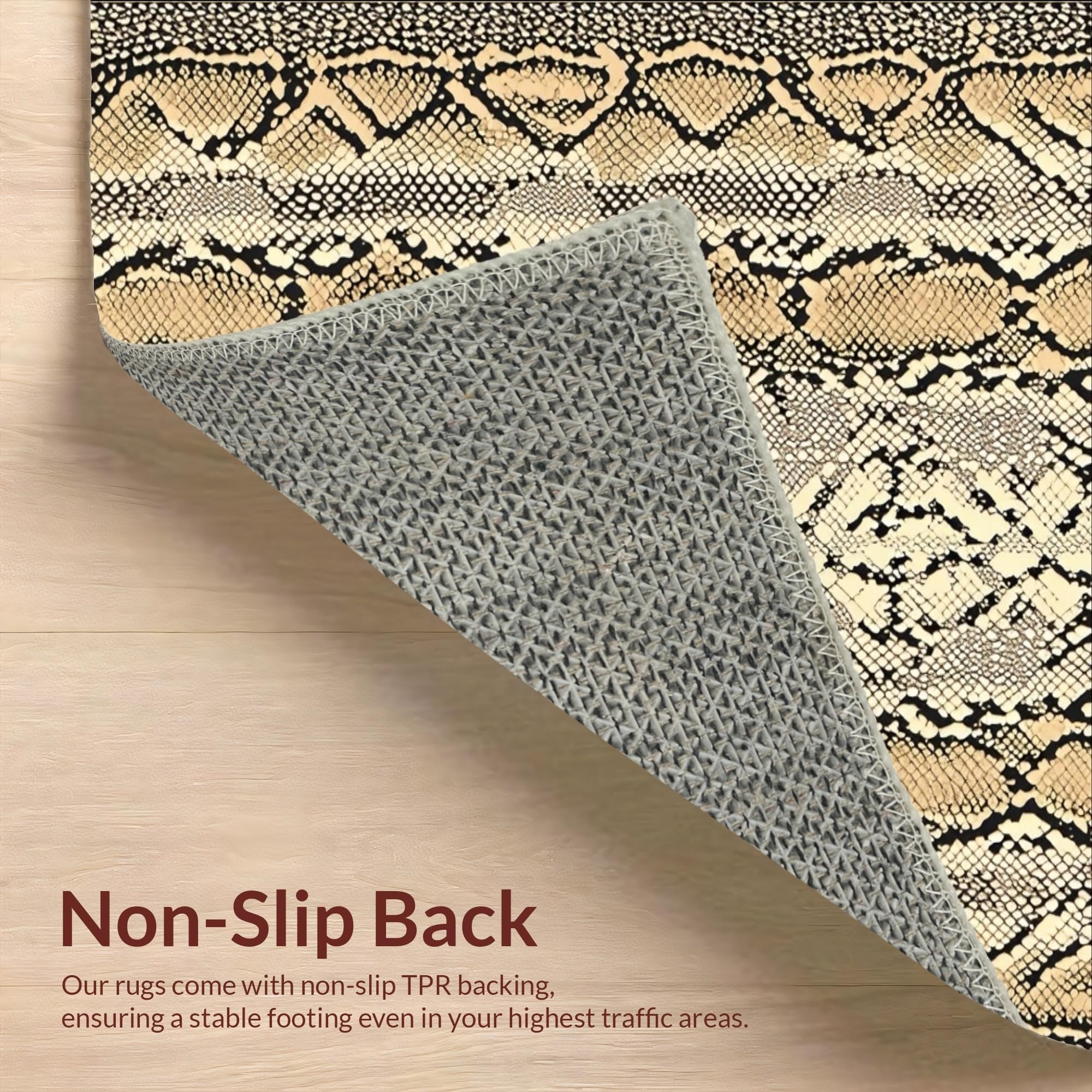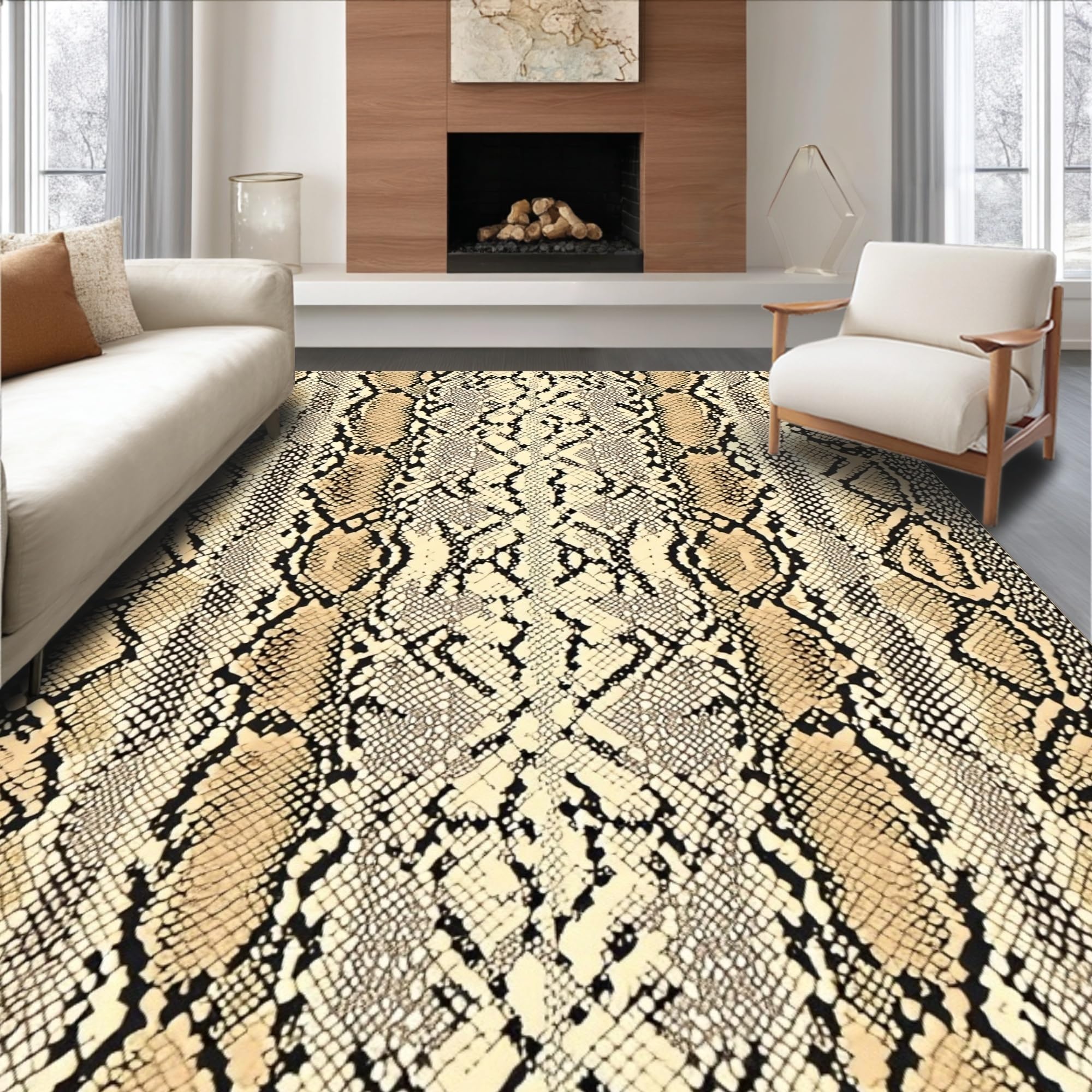Ultra Soft Area Rug, Non Slip, Stain Resistant, Washable Area Rugs for Living Room, Bedroom, Abstract Snakeskin Area Beige Brown Viscose Print(Beige) Overview: