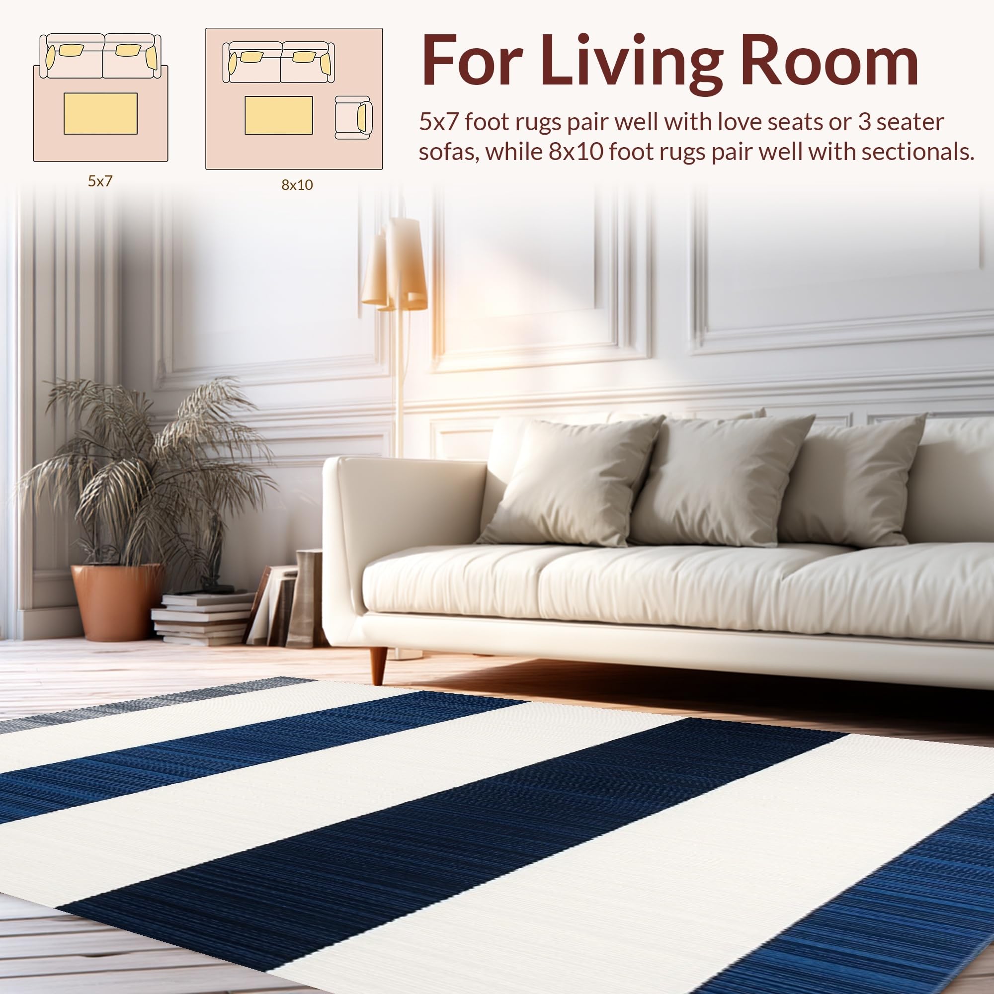 Ultra Soft Area Rug, Non Slip, Stain Resistant, Washable Area Rugs for Living Room, Bedroom, Abstract Stripe(Blue) Overview: