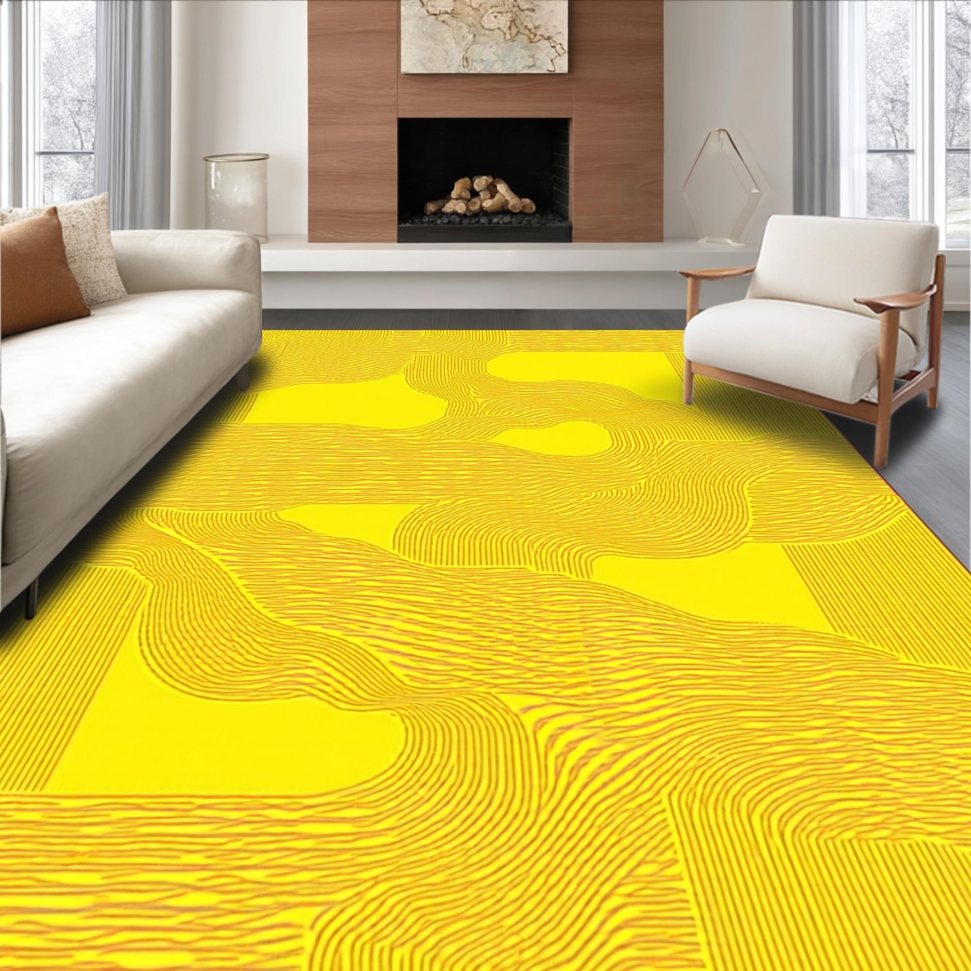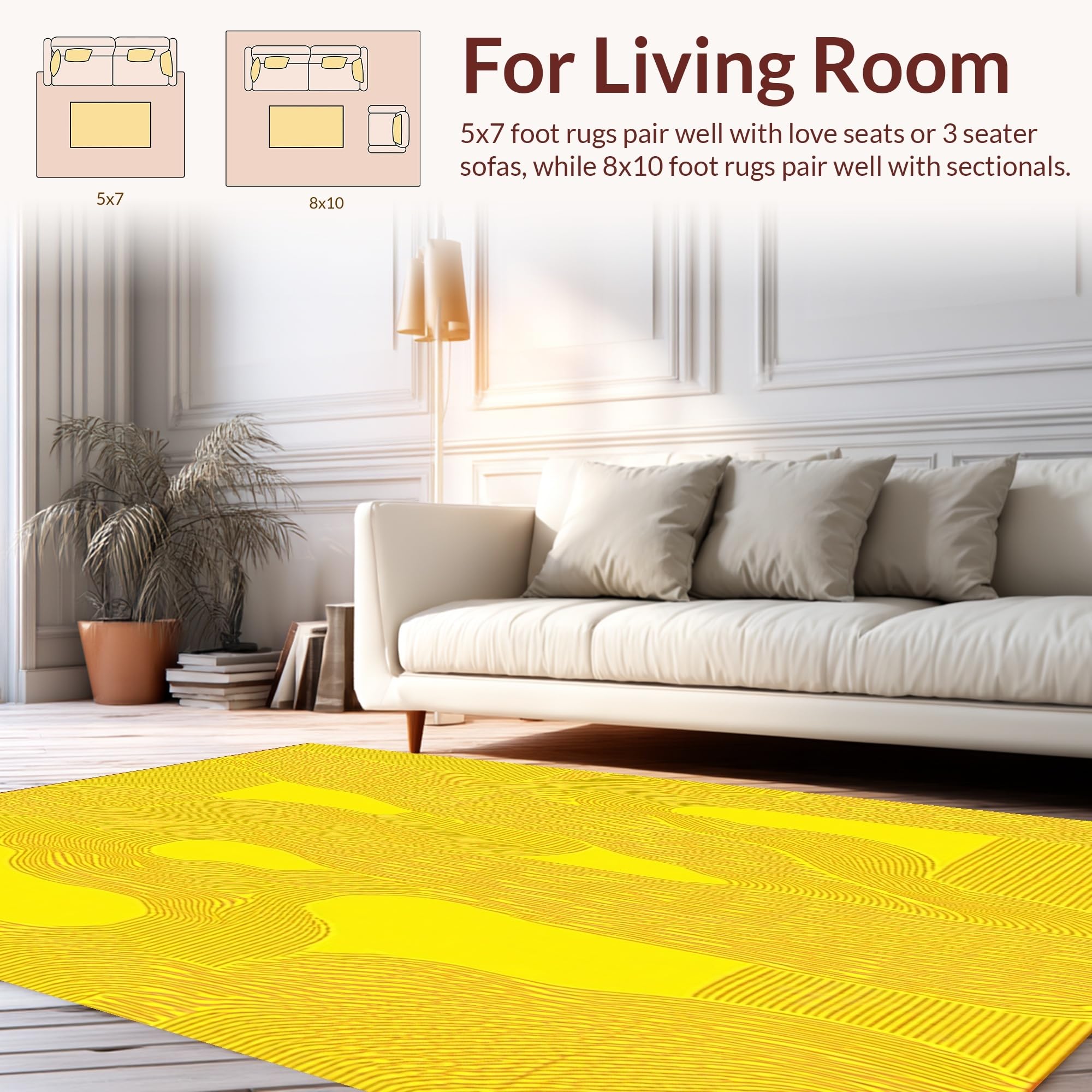 Ultra Soft Area Rug, Non Slip, Stain Resistant, Washable Area Rugs for Living Room, Bedroom, Abstract Swirl Design Yellow Area Unique Floor Accent(Yellow) Overview: