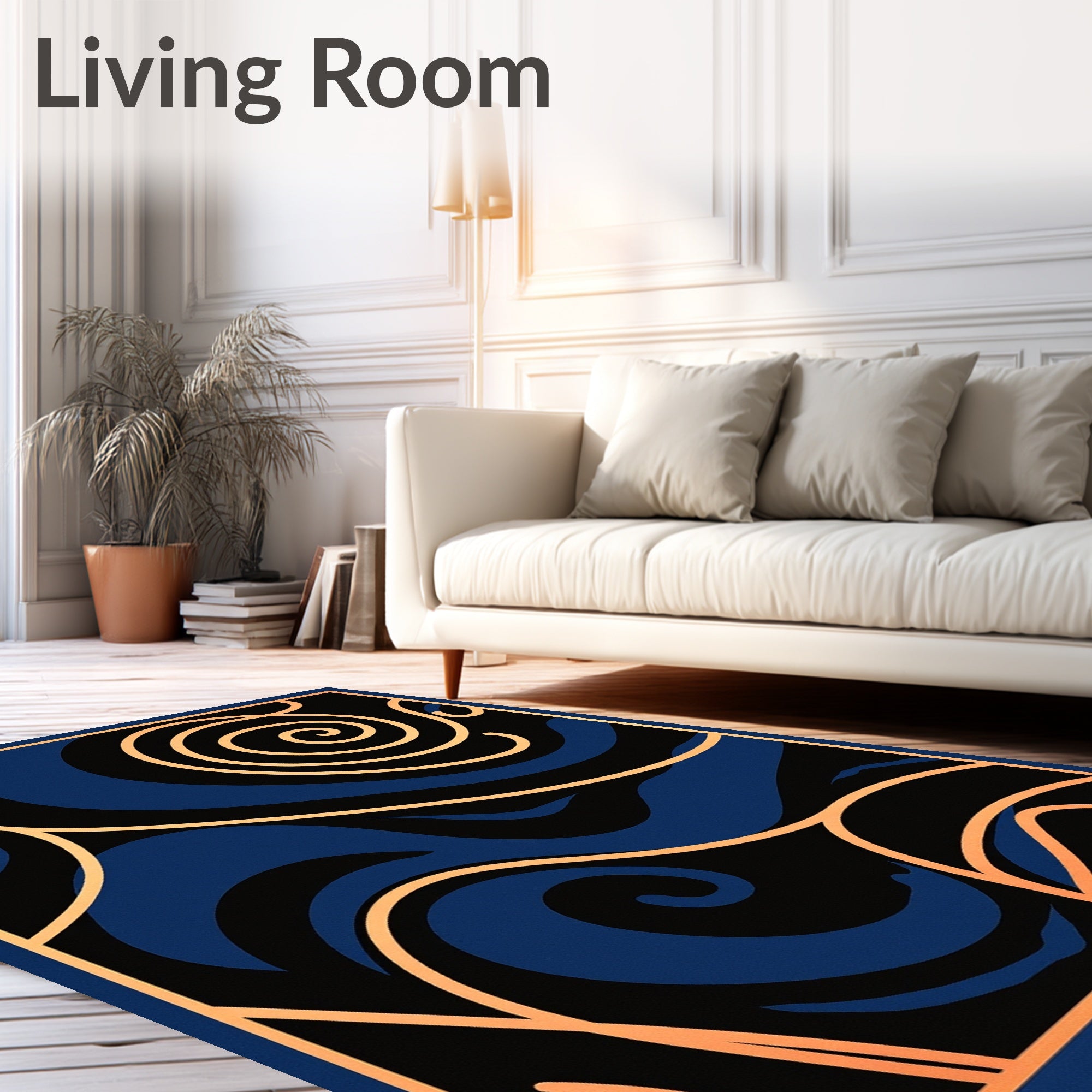 Ultra Soft Area Rug, Non Slip, Stain Resistant, Washable Area Rugs for Living Room, Bedroom, Abstract Swirl with Contemporary Flair(Black) Overview: