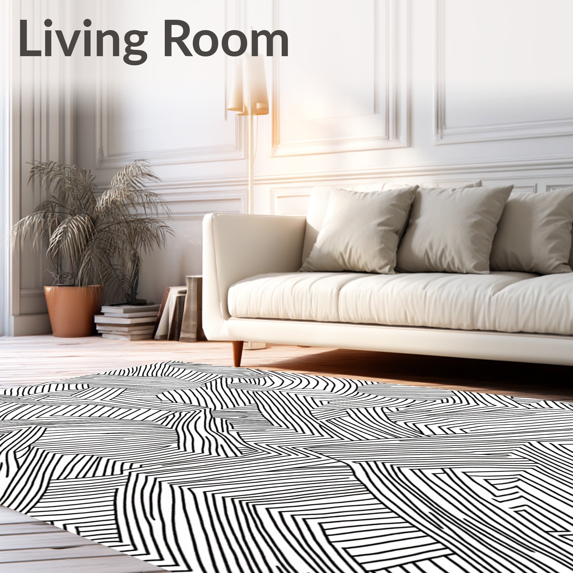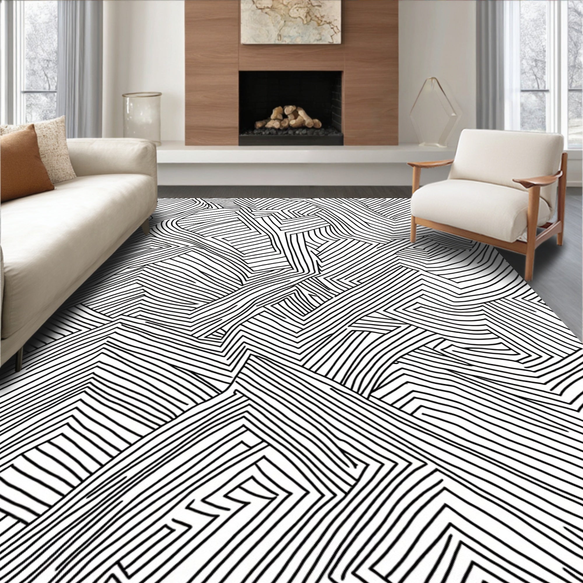 Ultra Soft Area Rug, Non Slip, Stain Resistant, Washable Area Rugs for Living Room, Bedroom, Abstract Twisted Lattice Visual Distortion Design(Black) Overview: