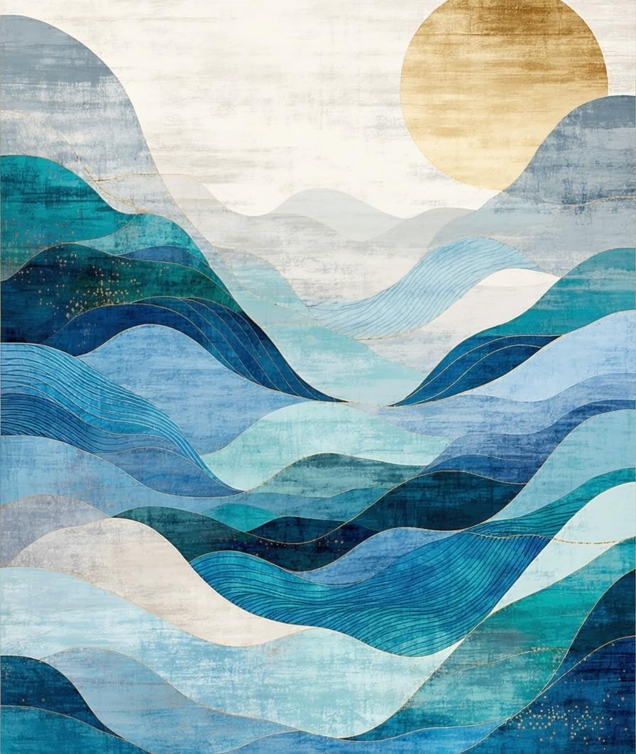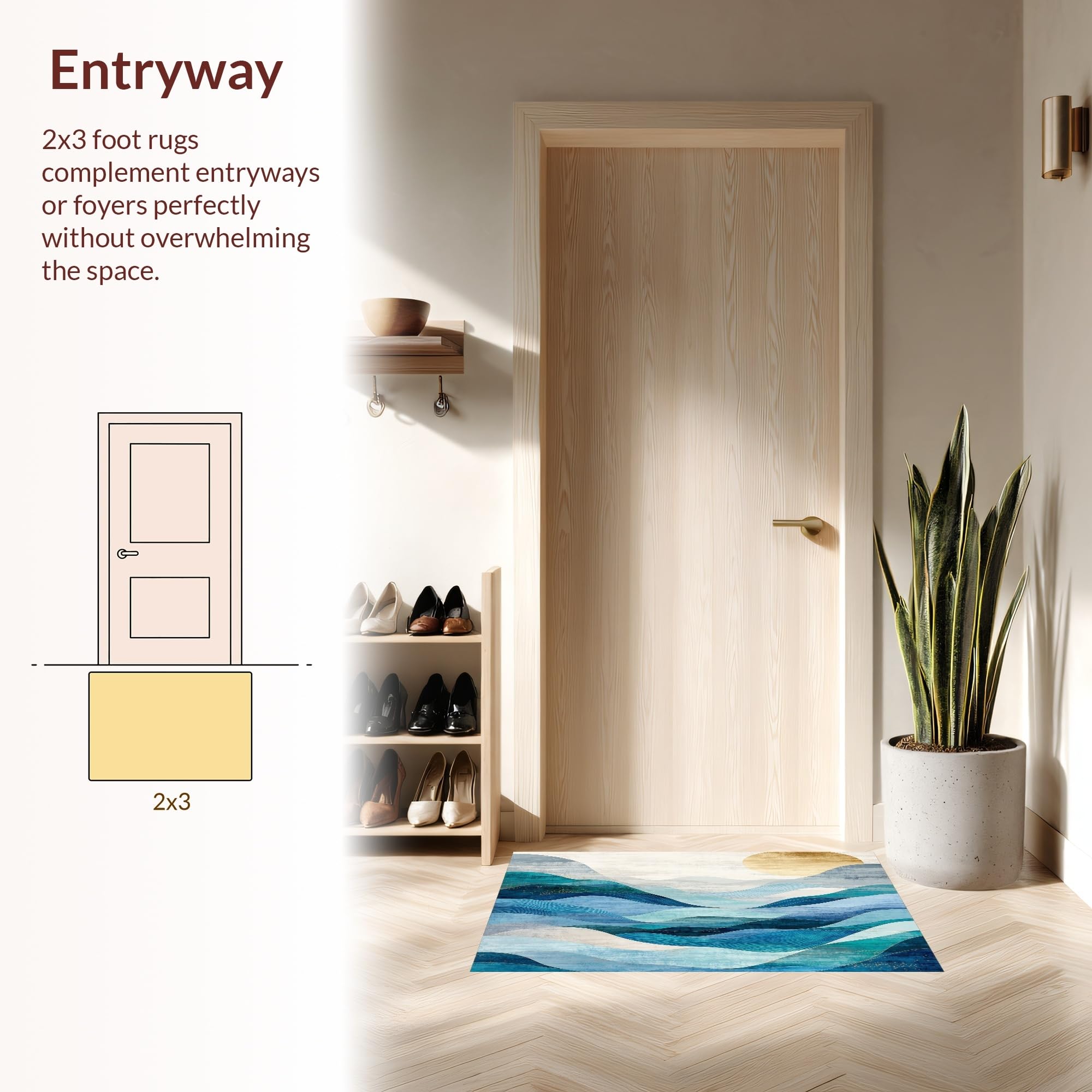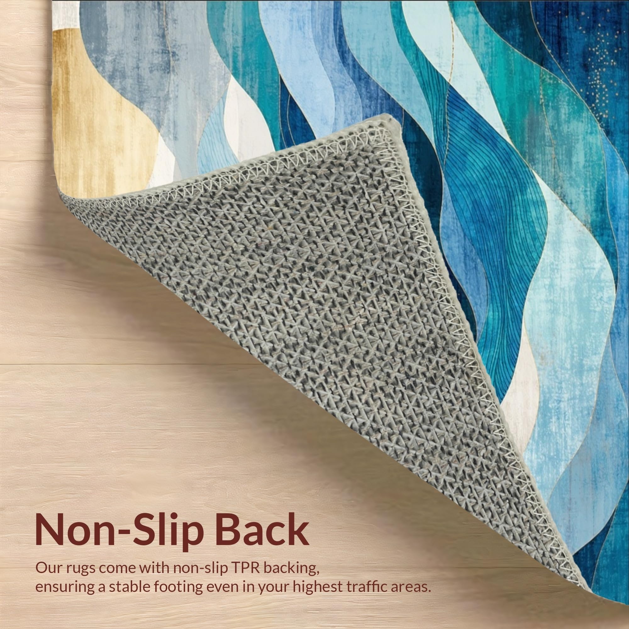 Ultra Soft Area Rug, Non Slip, Stain Resistant, Washable Area Rugs for Living Room, Bedroom, Abstract Waves Accent Rug Non Shedding Blue Ivory Floor Carpet(Blue) Overview: