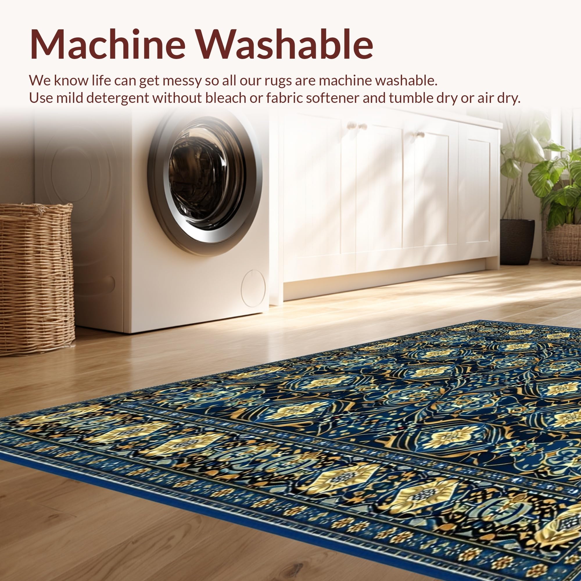 - Machine Washable: Our rugs can be easily thrown in the wash machine.