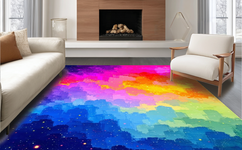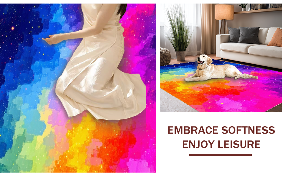 Ultra Soft Area Rug, Non Slip, Stain Resistant, Washable Area Rugs for Living Room, Bedroom, Abstract Whimsical Color Burst(Pink) Overview: