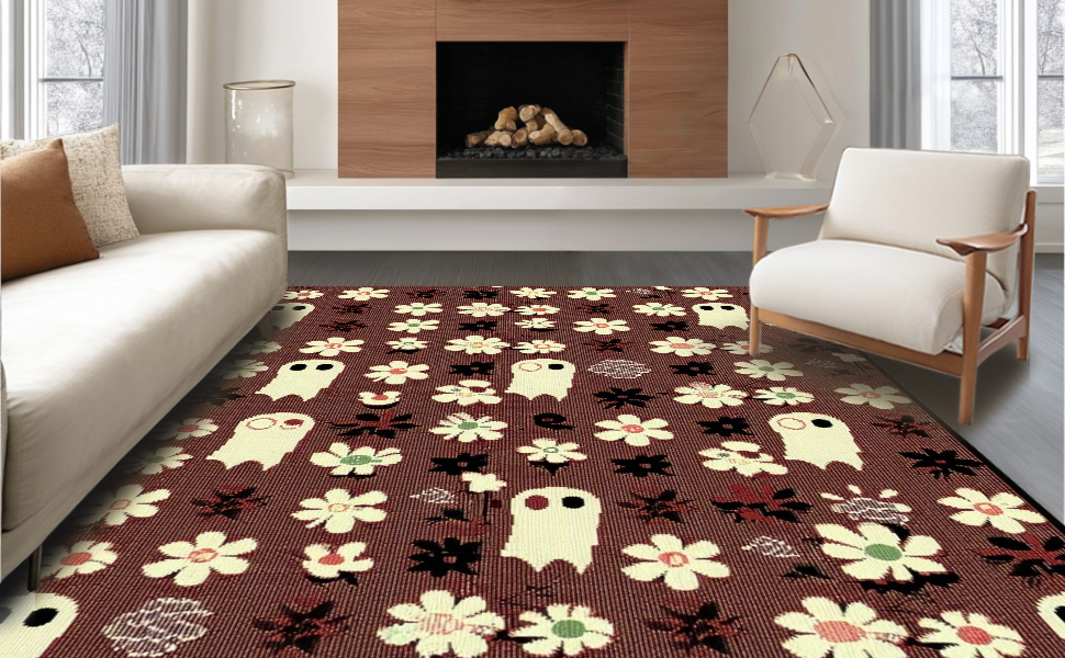 Ultra Soft Area Rug, Non Slip, Stain Resistant, Washable Area Rugs for Living Room, Bedroom, Abstract Whimsical Horror Artistry(Brown) Overview: