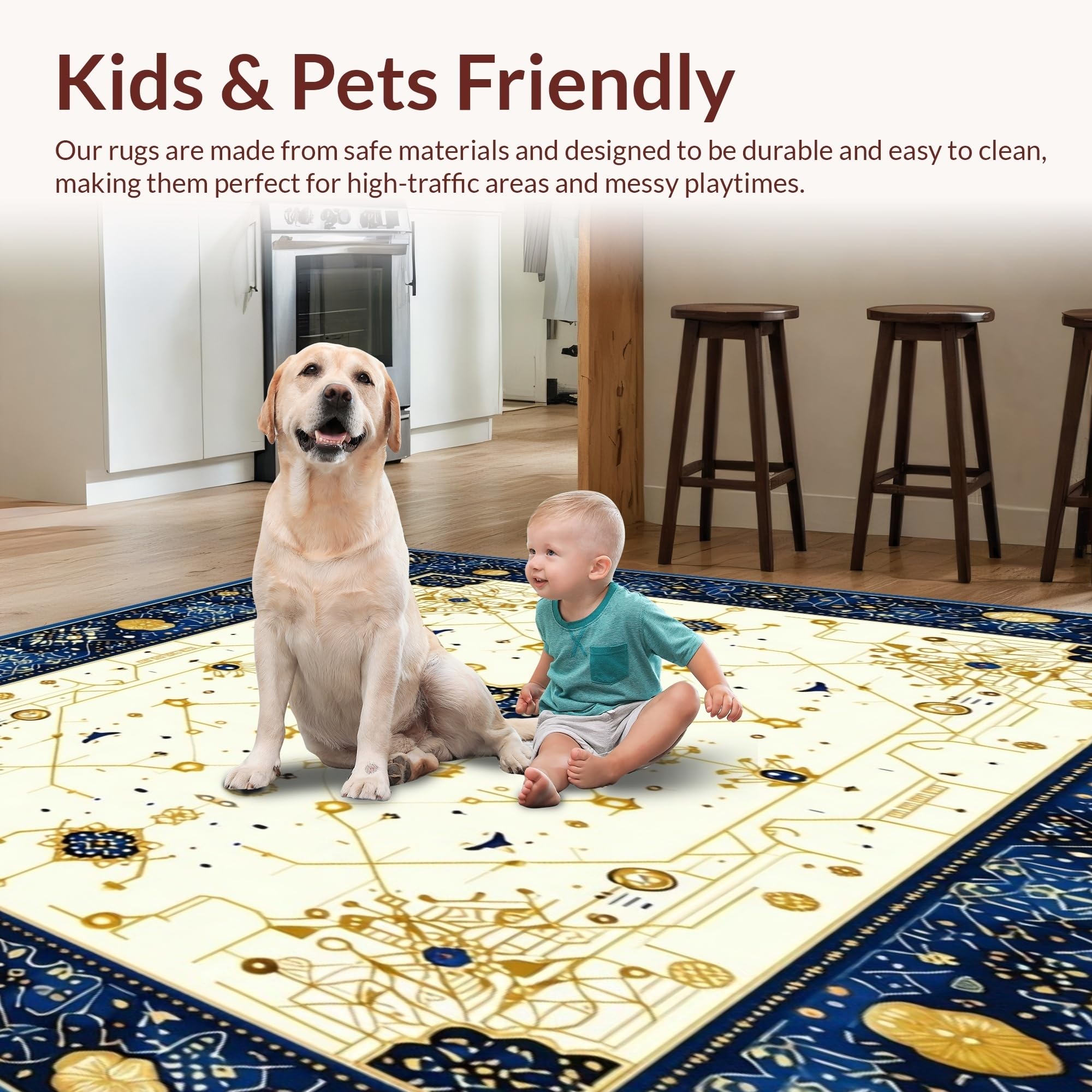 Ultra Soft Area Rug, Non Slip, Stain Resistant, Washable Area Rugs for Living Room, Bedroom, Abstract Whimsical Octagon(White) Overview: