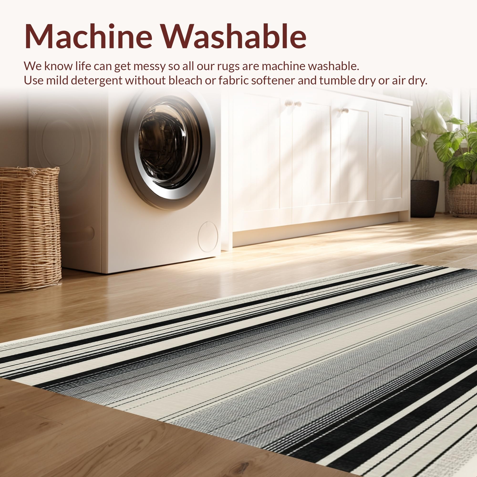 - Machine Washable: Our rugs can be easily thrown in the wash machine.