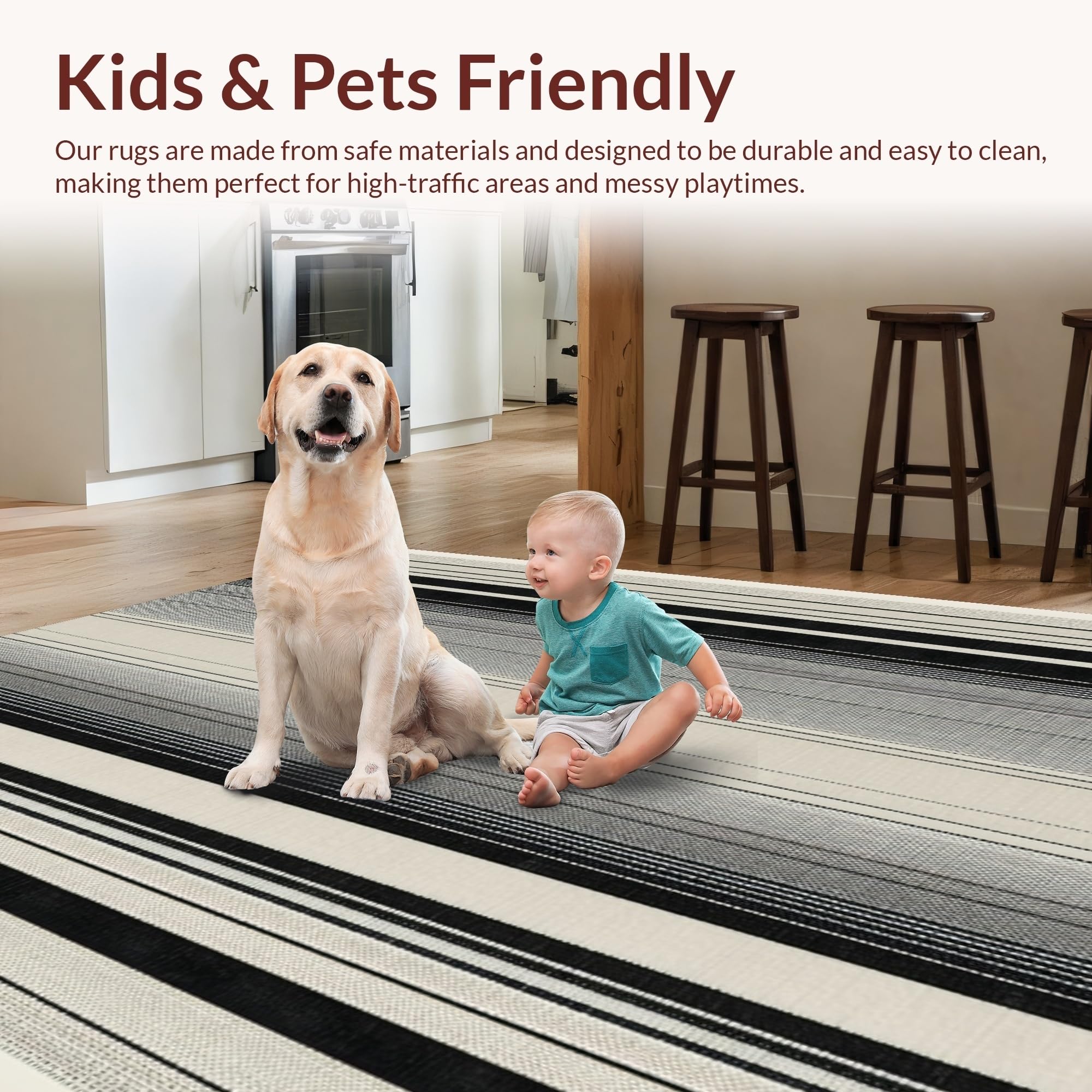 Ultra Soft Area Rug, Non Slip, Stain Resistant, Washable Area Rugs for Living Room, Bedroom, Abstract Wildlife Pattern Rug, Graphic Striped Carpet, Elegant Contrast(Beige) Overview: