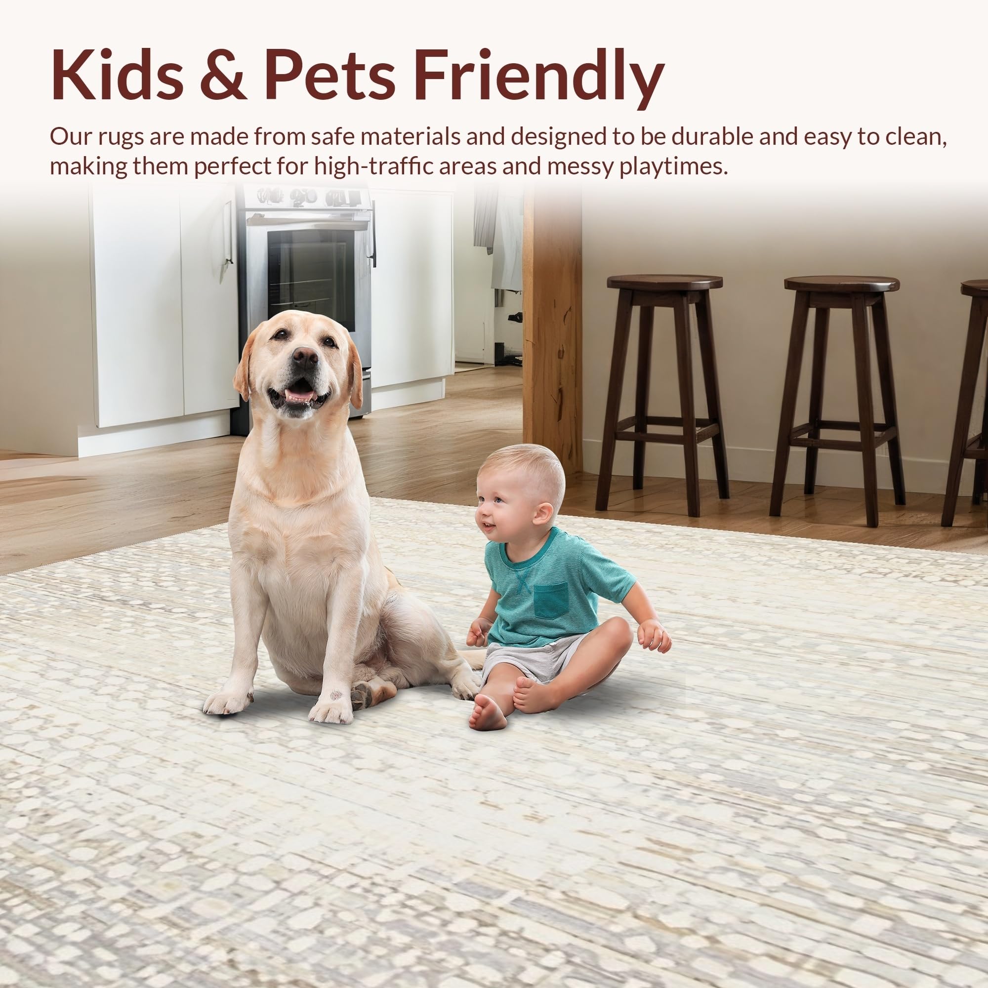 Ultra Soft Area Rug, Non Slip, Stain Resistant, Washable Area Rugs for Living Room, Bedroom, Abstract Woven Area Ivory Beige(Beige) Overview: