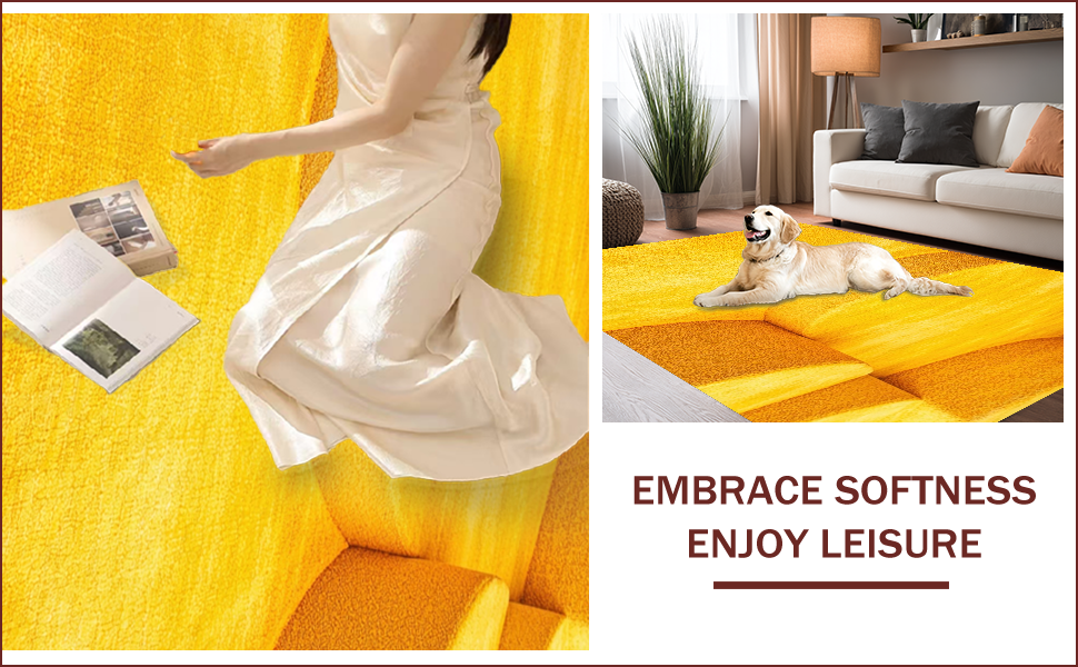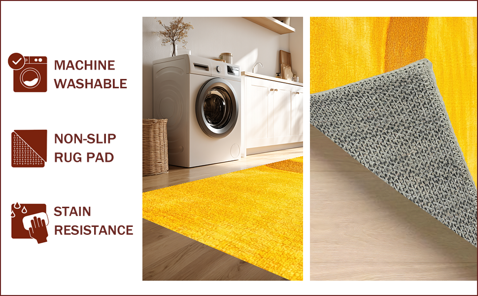 Ultra Soft Area Rug, Non Slip, Stain Resistant, Washable Area Rugs for Living Room, Bedroom, Abstract Yellow Living Room Non-Shedding Carpet(Yellow) Overview: