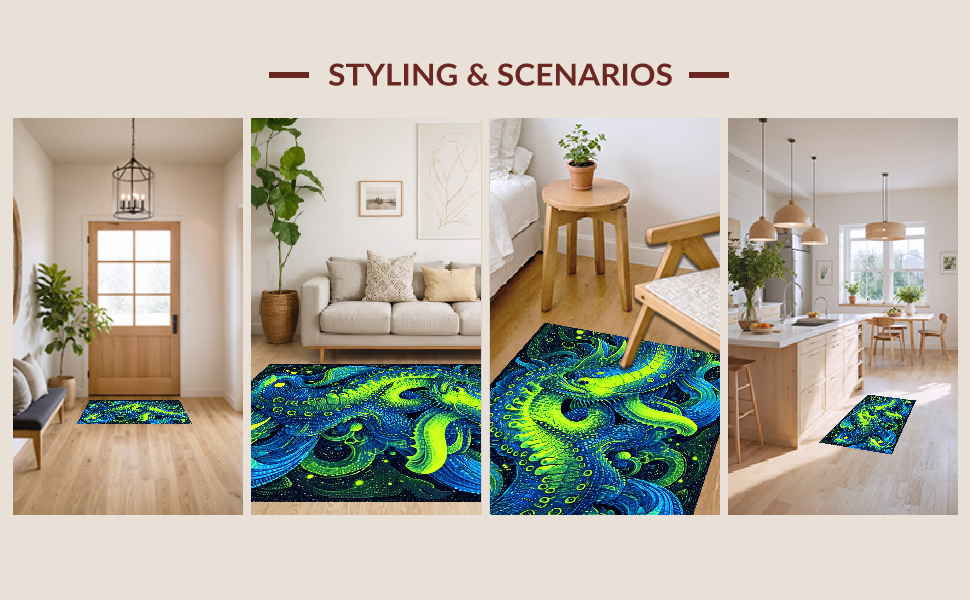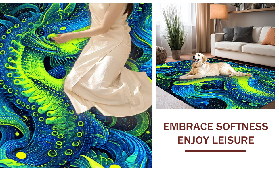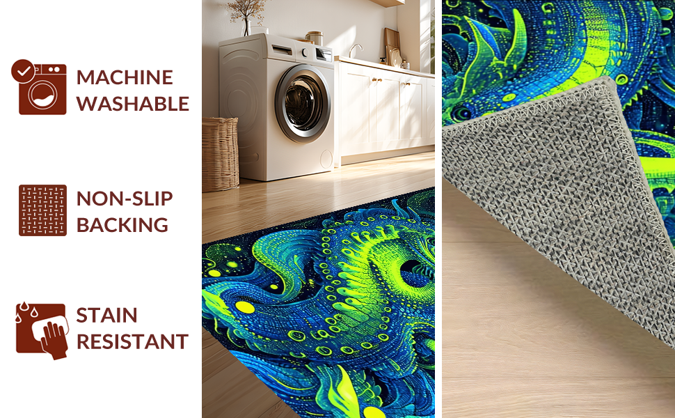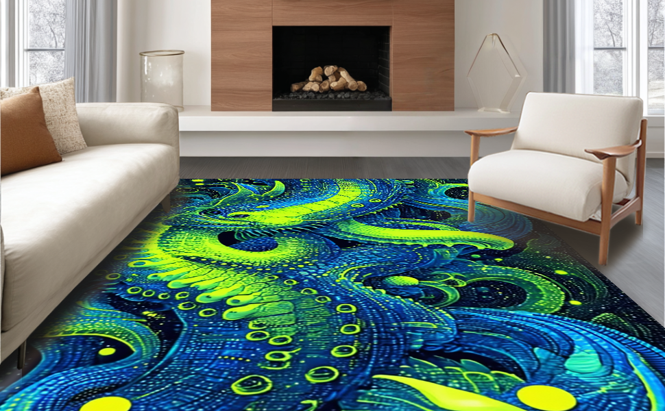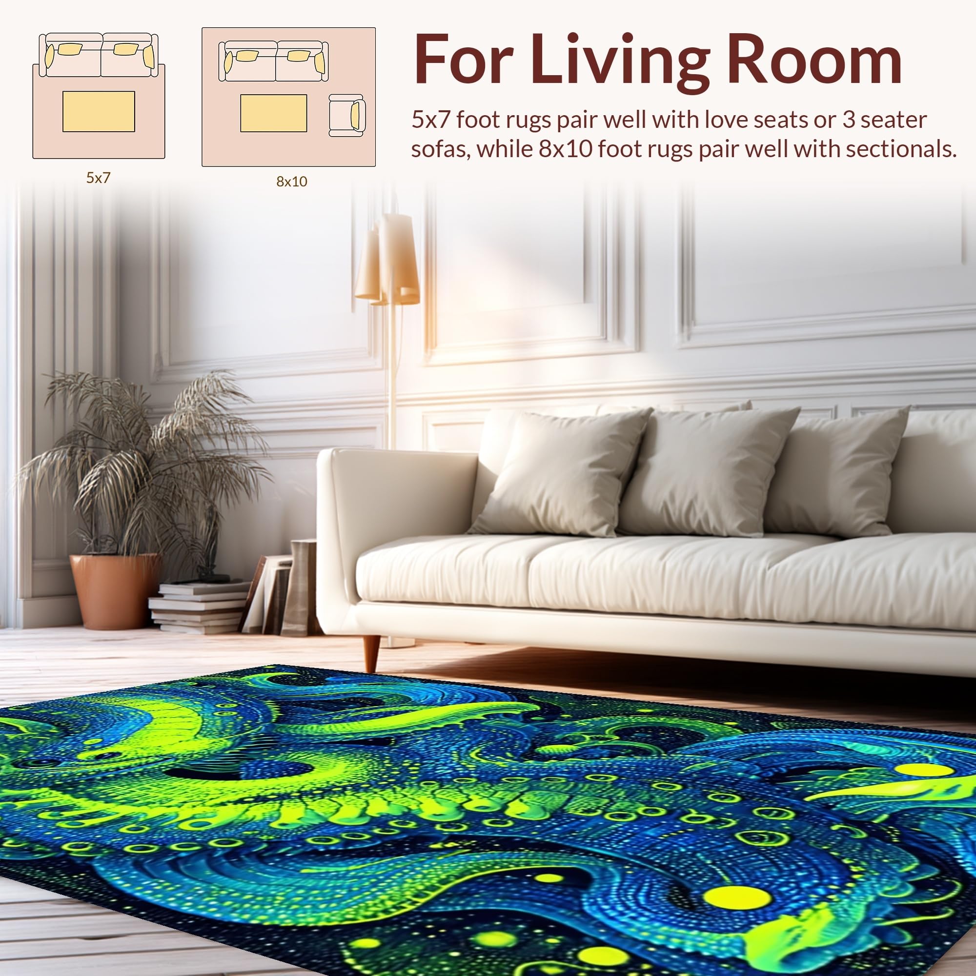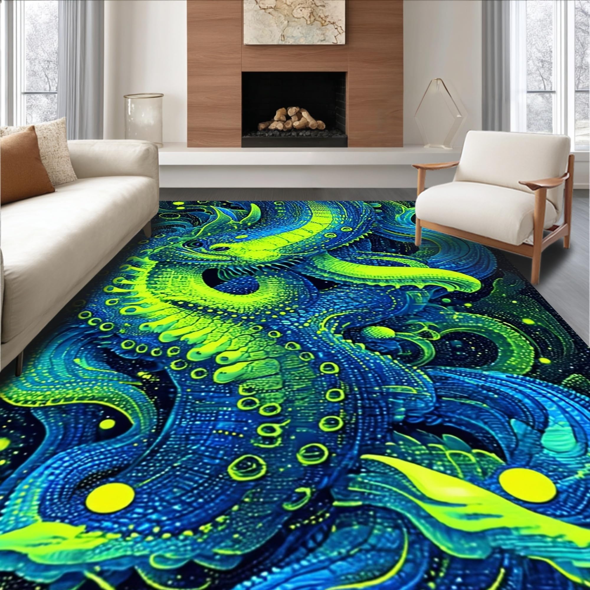 Ultra Soft Area Rug, Non Slip, Stain Resistant, Washable Area Rugs for Living Room, Bedroom, Abyssal Kraken Swirl Area Rug(Blue) Overview: