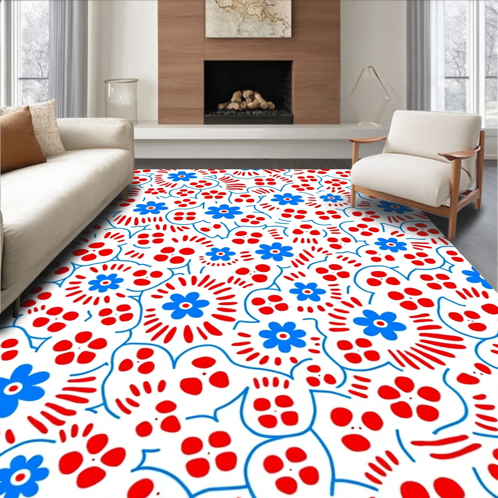 Flatwoven High Traffic Area Rug, Accent Featuring Abstract Animal Inspired Design with Boho Flair, Non Slip, Stain Resistant, Washable Area Rugs for Living Room, Bedroom (Red) Overview: