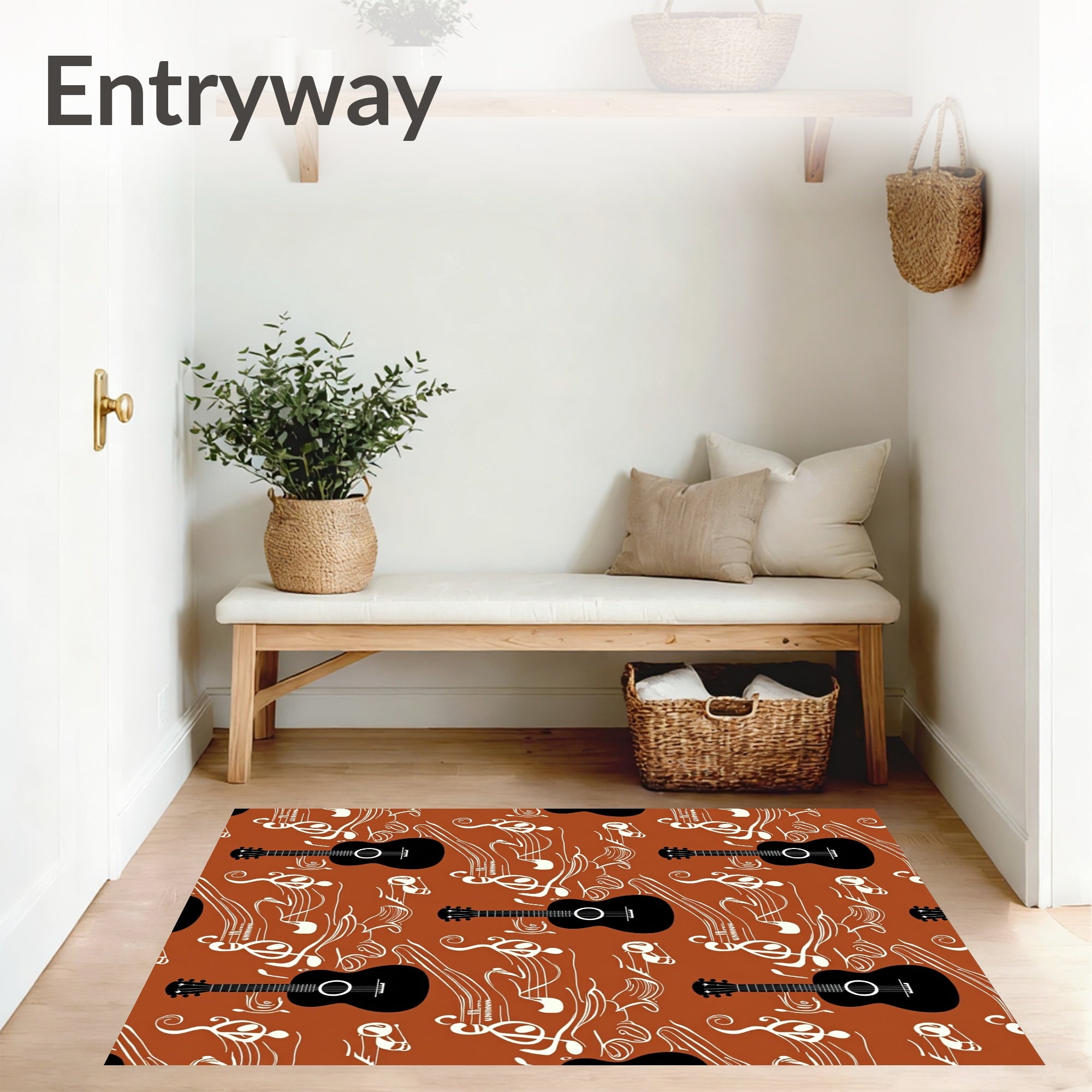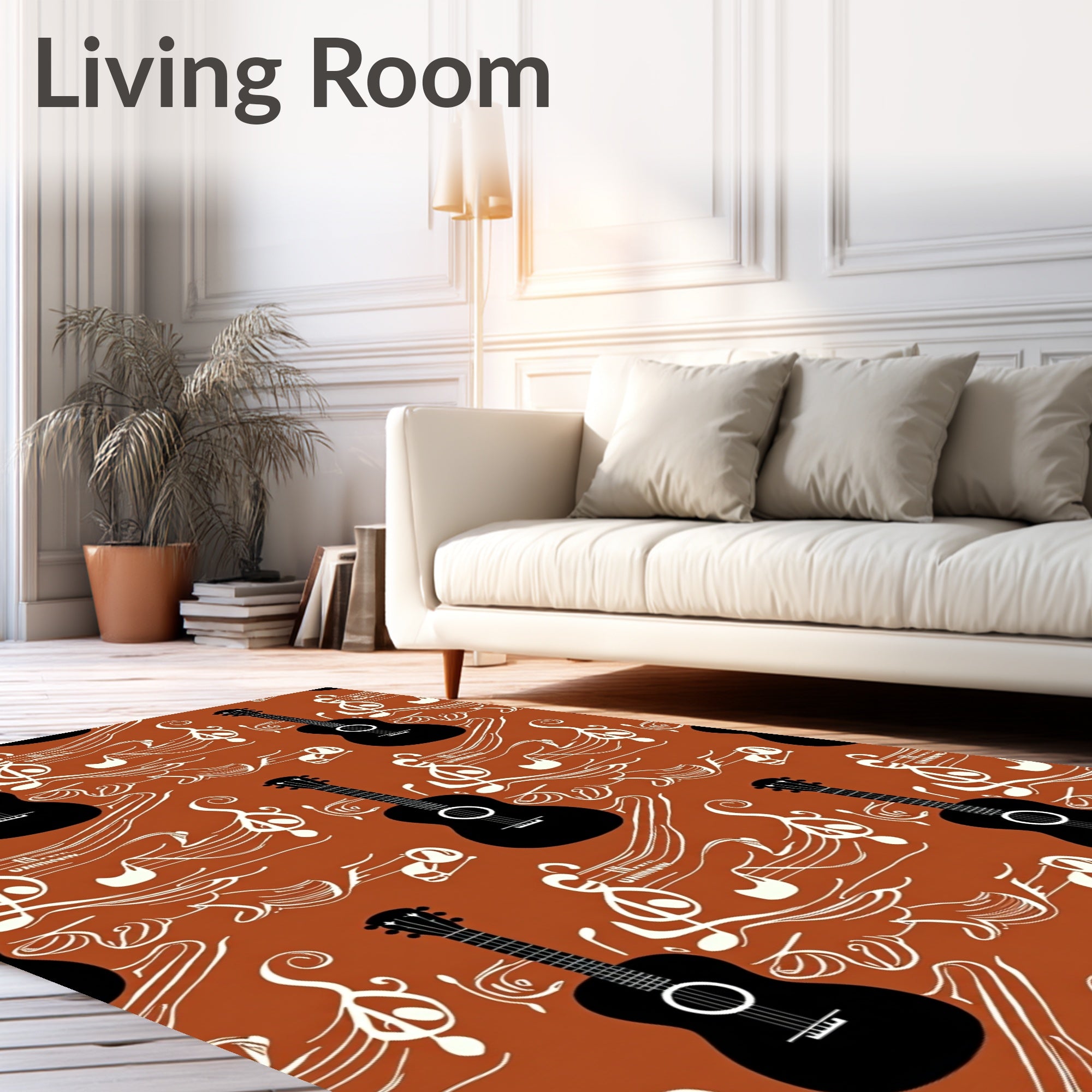 Flatwoven High Traffic Area Rug, Acoustic String Instrument Treble Clef Artistic Composition, Non Slip, Stain Resistant, Washable Area Rugs for Living Room, Bedroom (Brown) Overview: