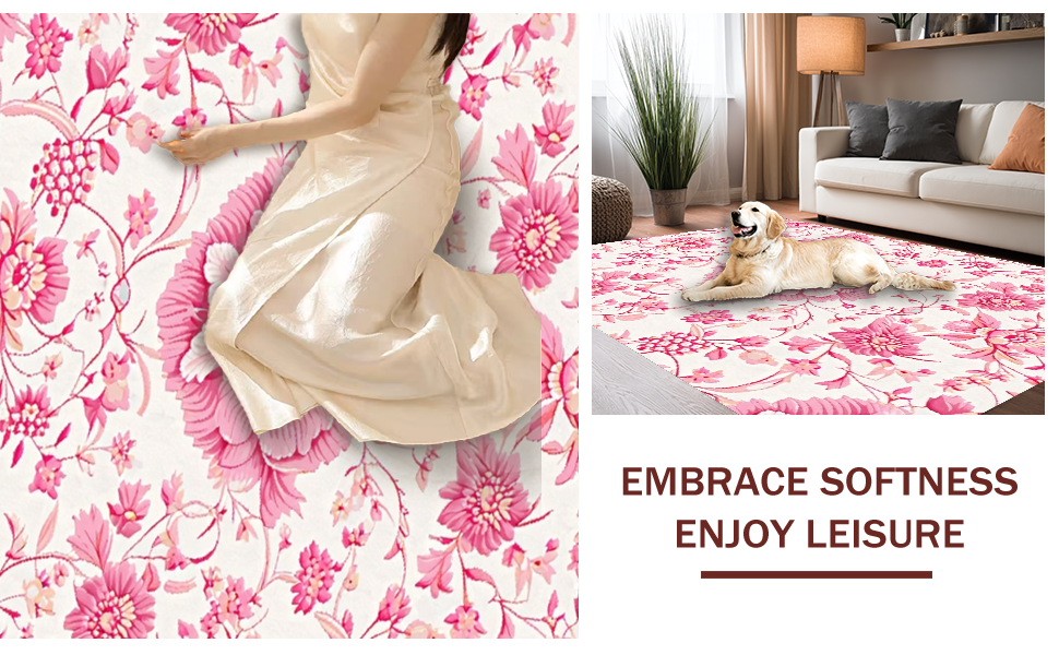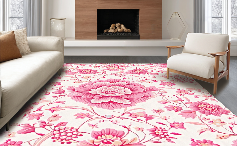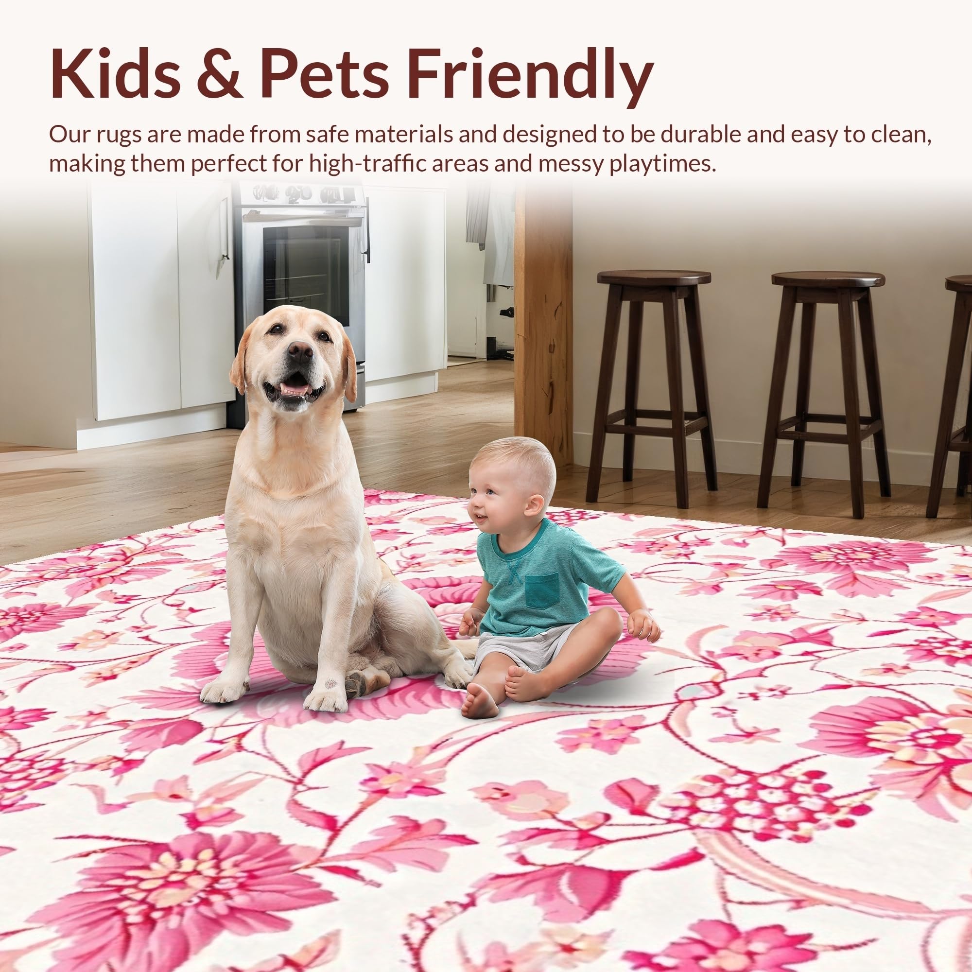Ultra Soft Area Rug, Non Slip, Stain Resistant, Washable Area Rugs for Living Room, Bedroom, Adorable Bright Geometric Theme(Pink) Overview: