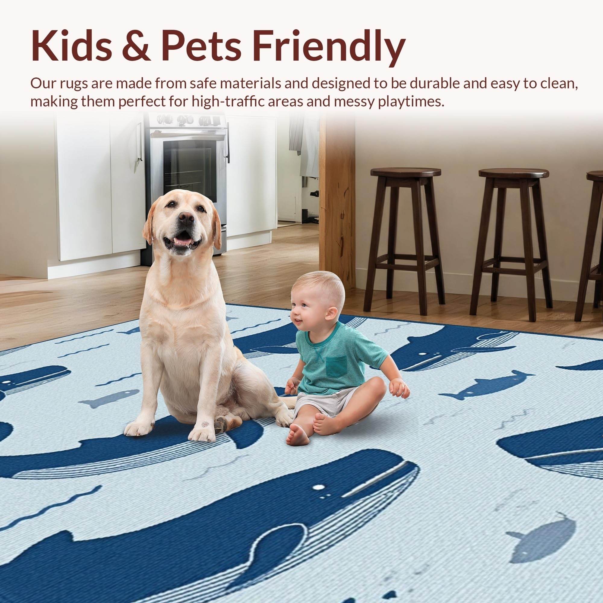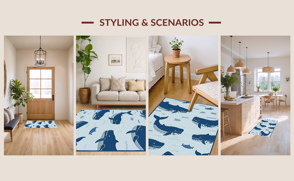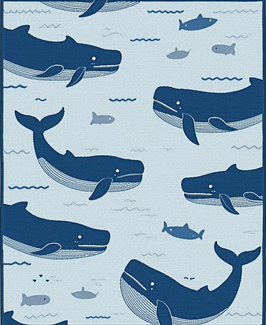 Ultra Soft Area Rug, Non Slip, Stain Resistant, Washable Area Rugs for Living Room, Bedroom, Adorable Coastal Wildlife Patterning(Blue) Overview: