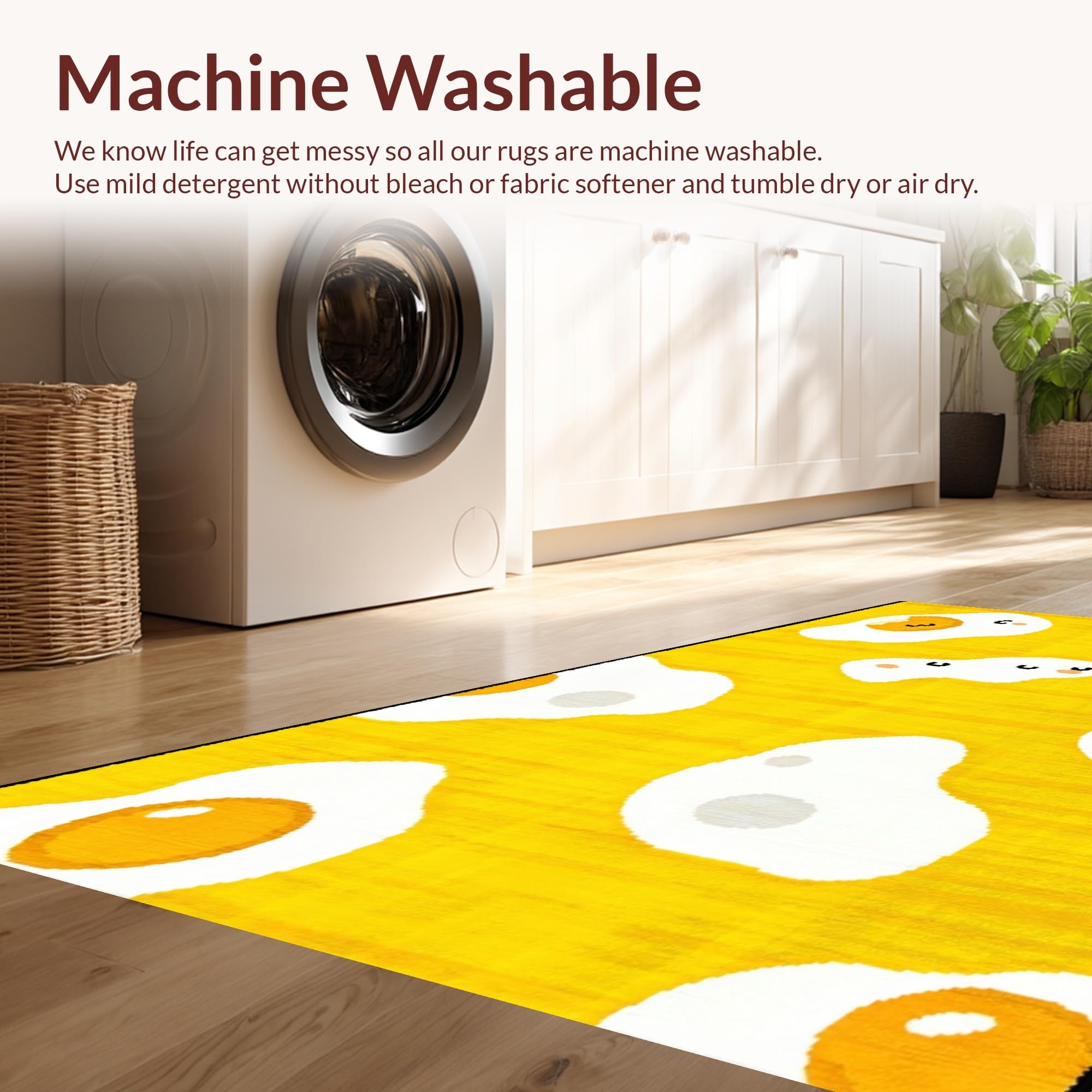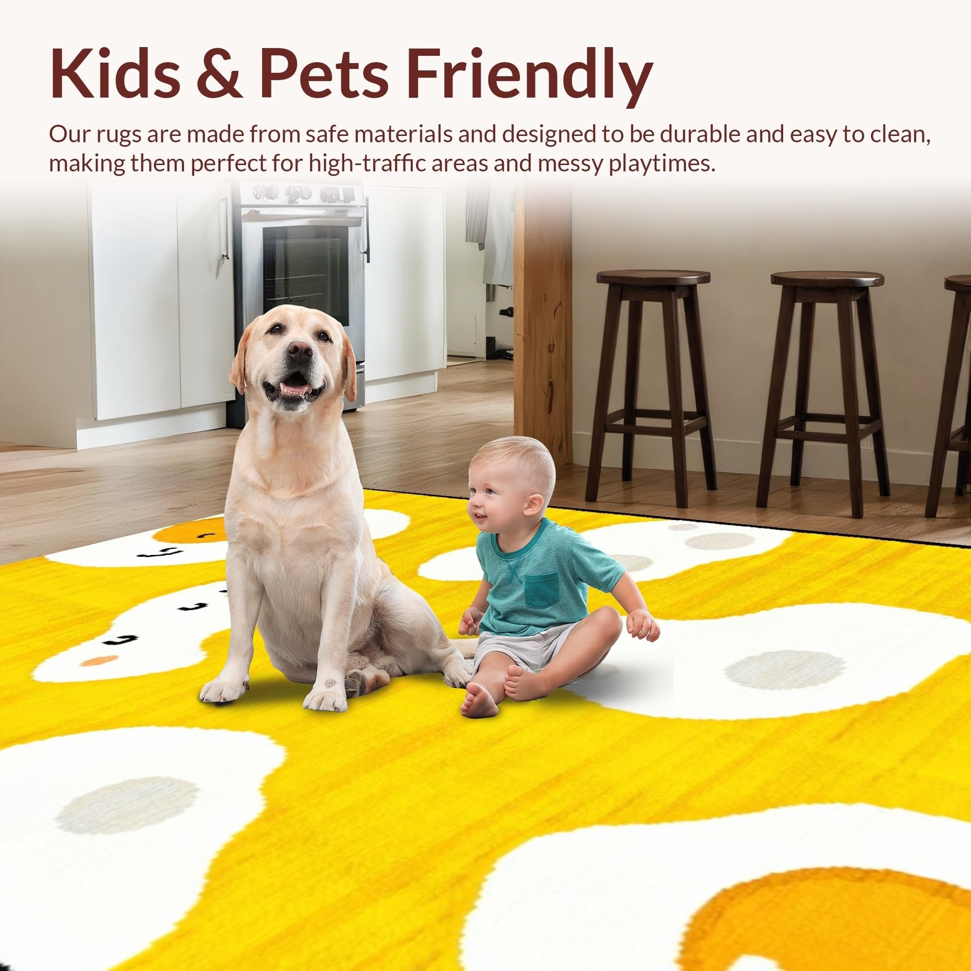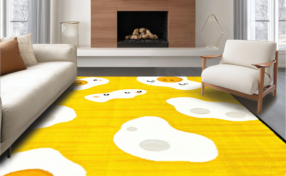 Ultra Soft Area Rug, Non Slip, Stain Resistant, Washable Area Rugs for Living Room, Bedroom, Adorable Egg-Inspired Visuals(Yellow) Overview:
