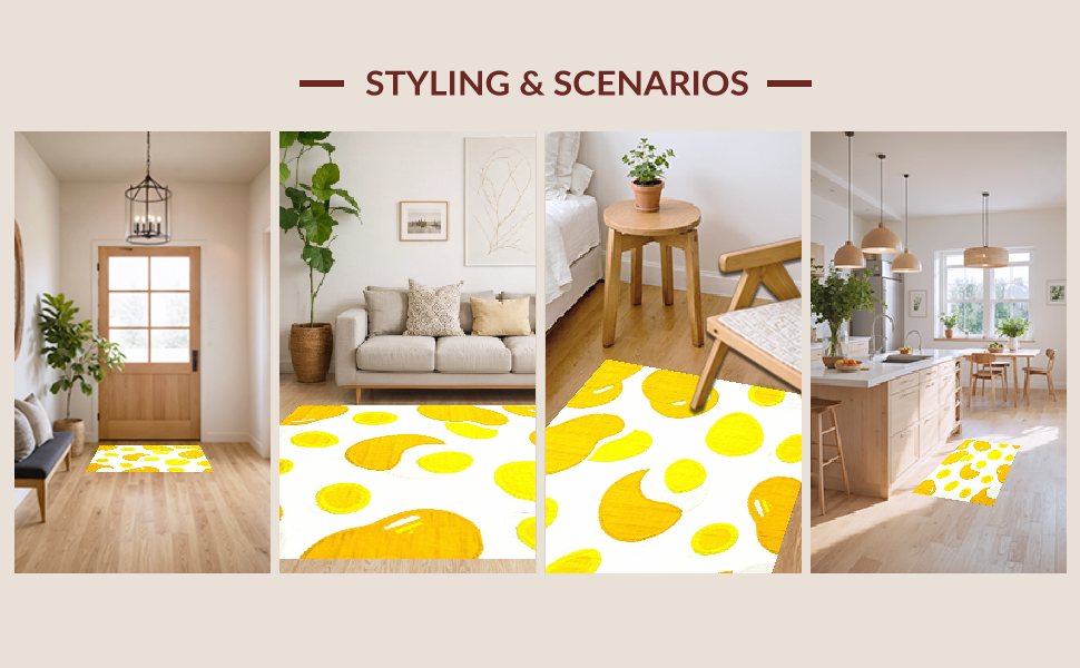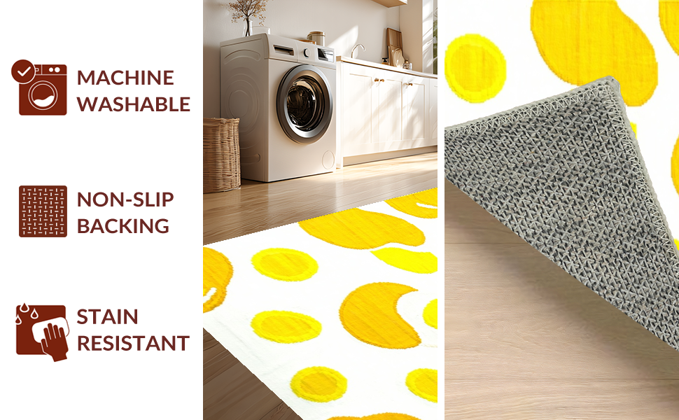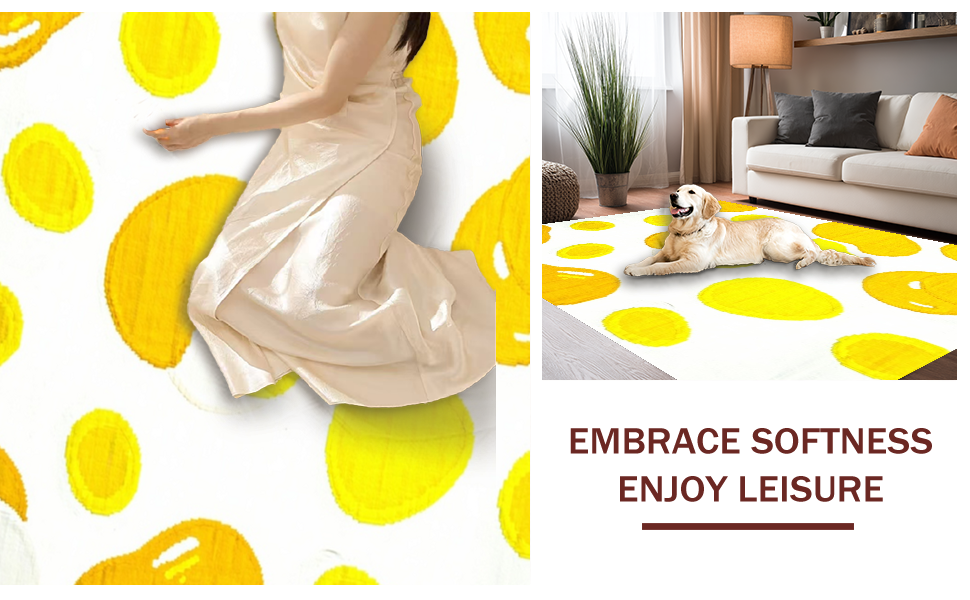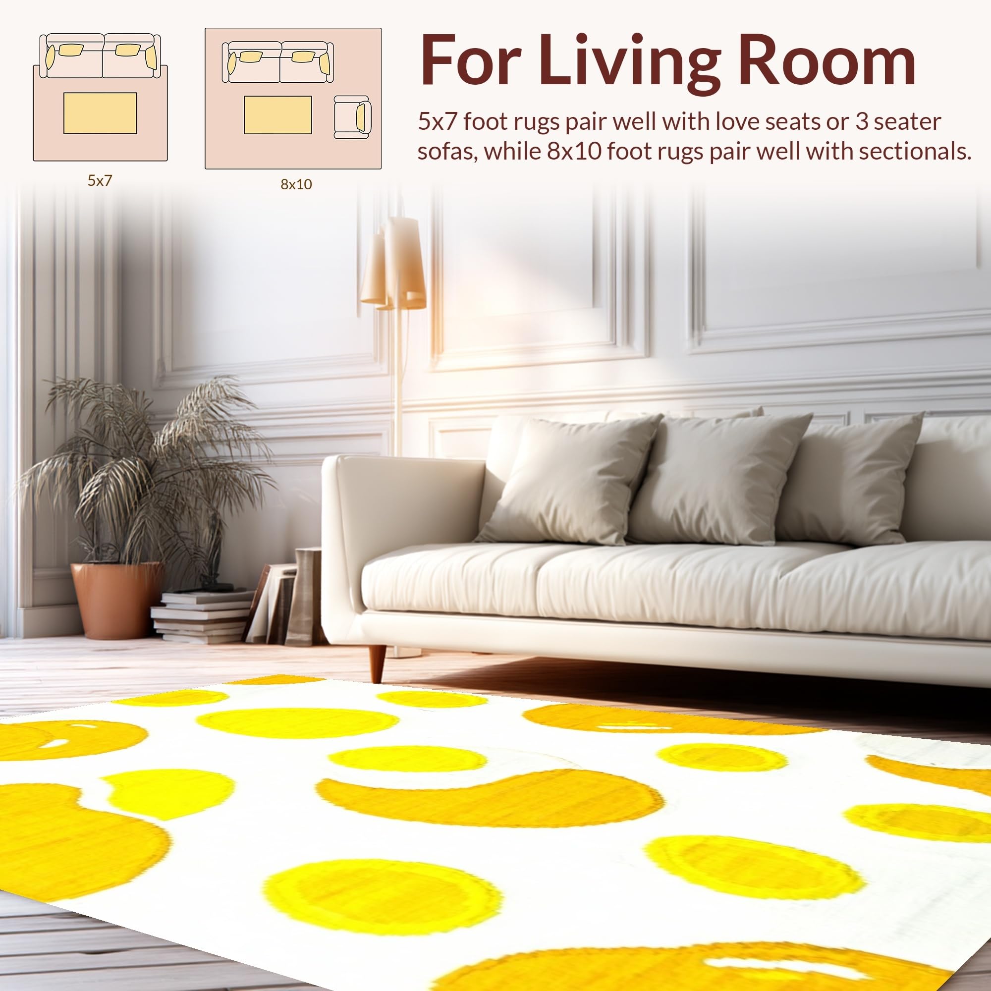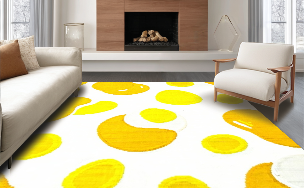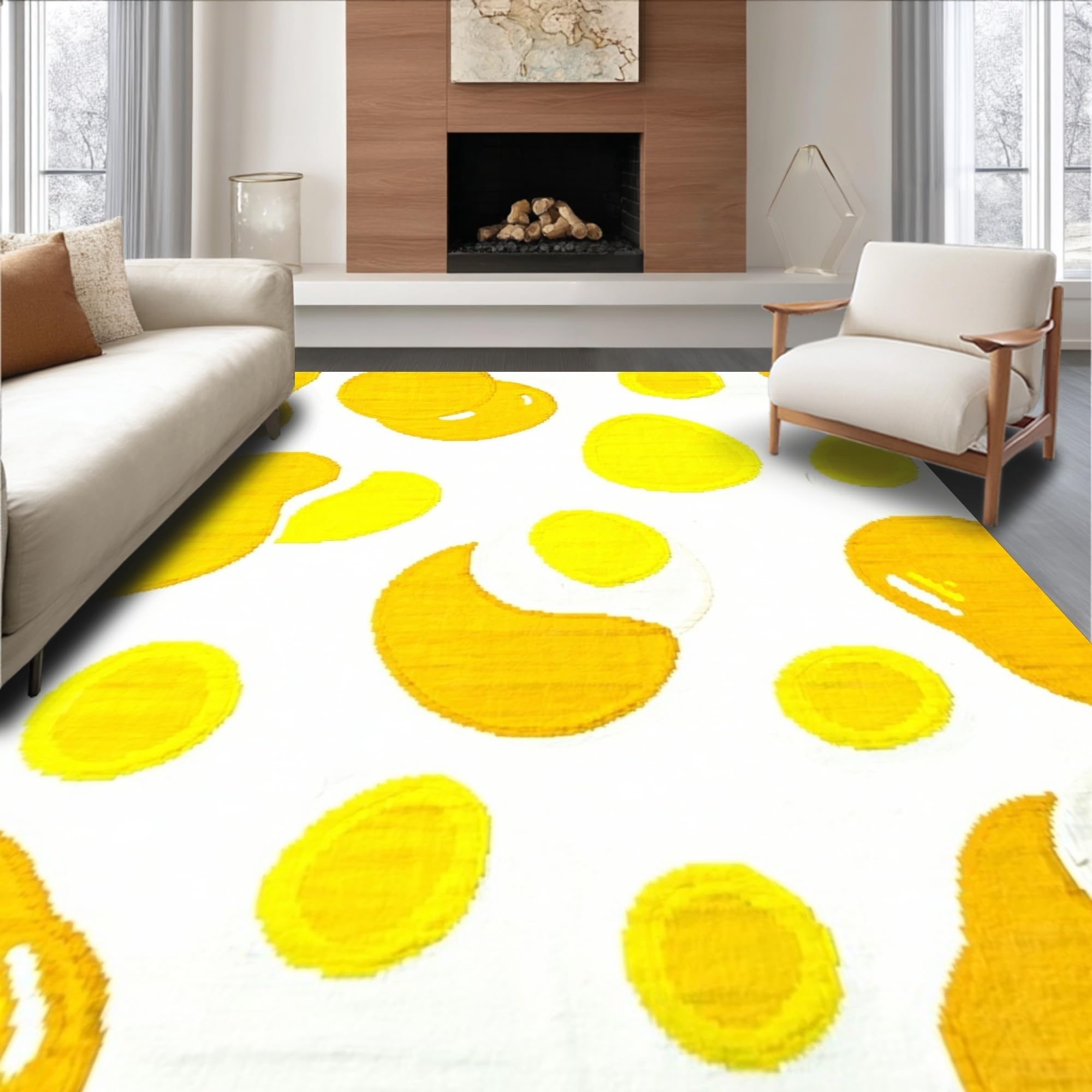 Ultra Soft Area Rug, Non Slip, Stain Resistant, Washable Area Rugs for Living Room, Bedroom, Adorable Egg Motif Design(Yellow) Overview: