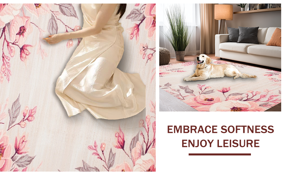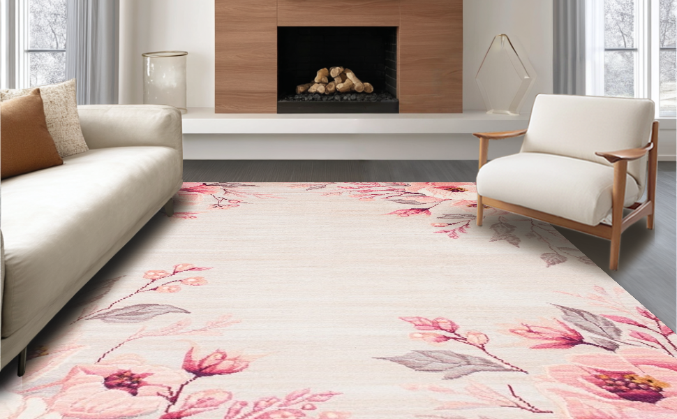 Ultra Soft Area Rug, Non Slip, Stain Resistant, Washable Area Rugs for Living Room, Bedroom, Adorable Gentle Textured Vibe(Pink) Overview: