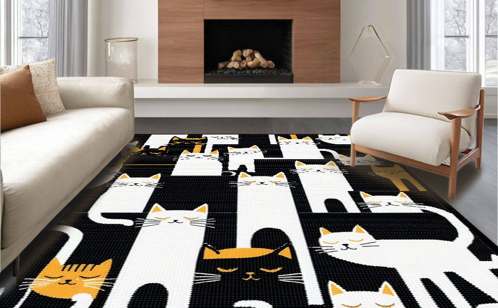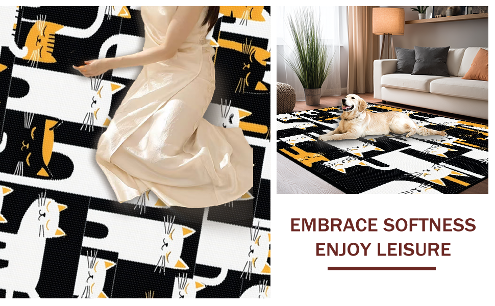 Ultra Soft Area Rug, Non Slip, Stain Resistant, Washable Area Rugs for Living Room, Bedroom, Adorable Minimalist Pet Design(Black) Overview: