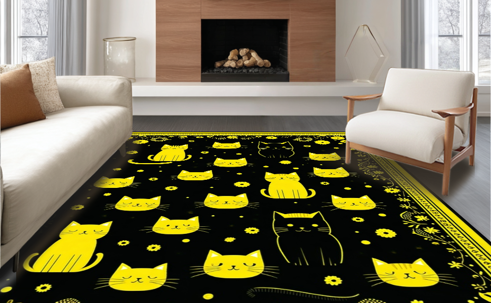 Ultra Soft Area Rug, Non Slip, Stain Resistant, Washable Area Rugs for Living Room, Bedroom, Adorable Non-Slip Pet Accent(Black) Overview: