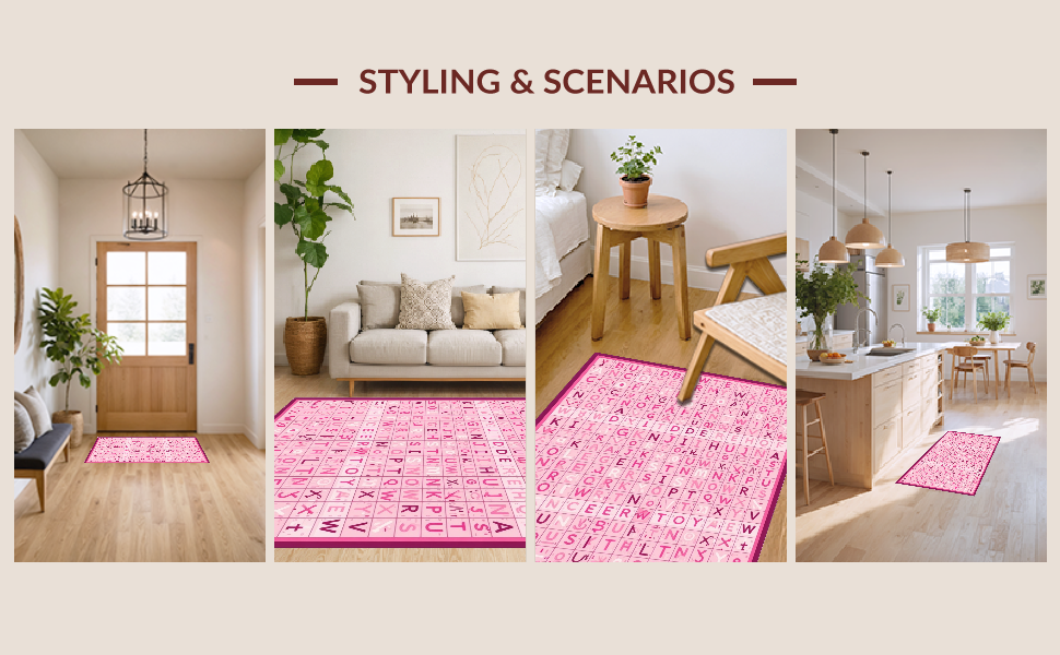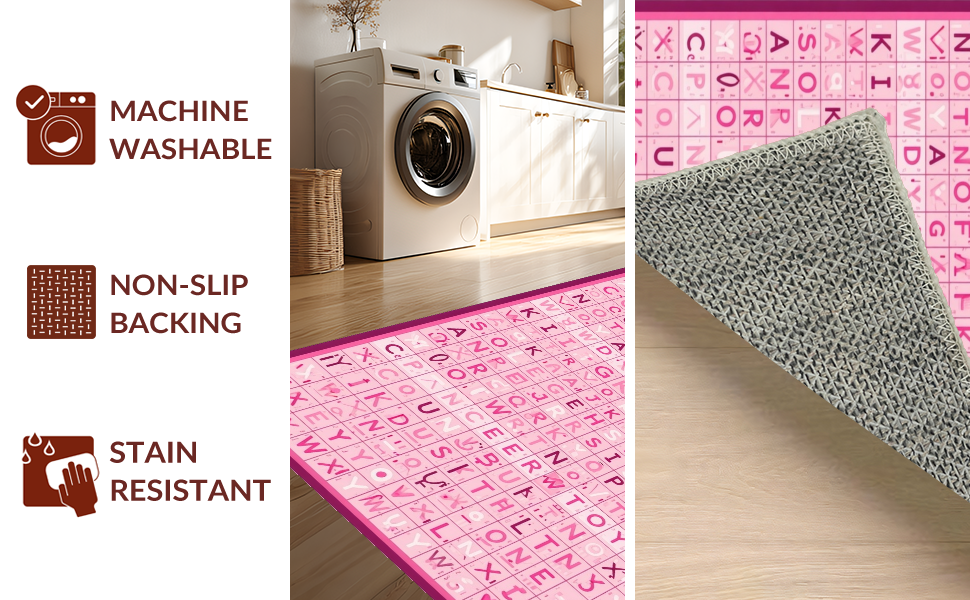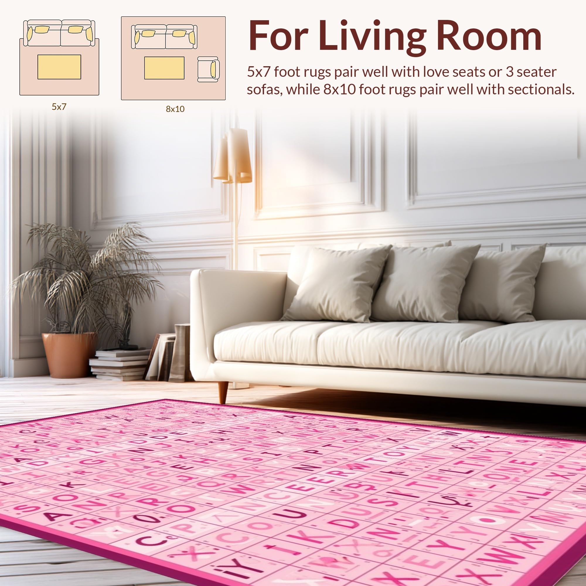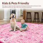 Ultra Soft Area Rug, Non Slip, Stain Resistant, Washable Area Rugs for Living Room, Bedroom, Adorable Round Letters Theme Decor(Black) Overview: