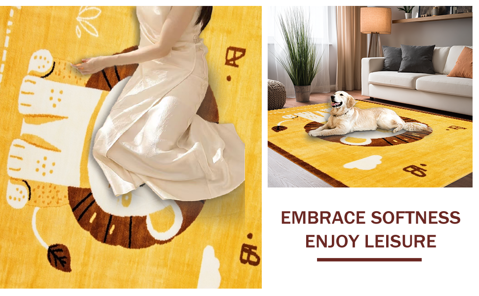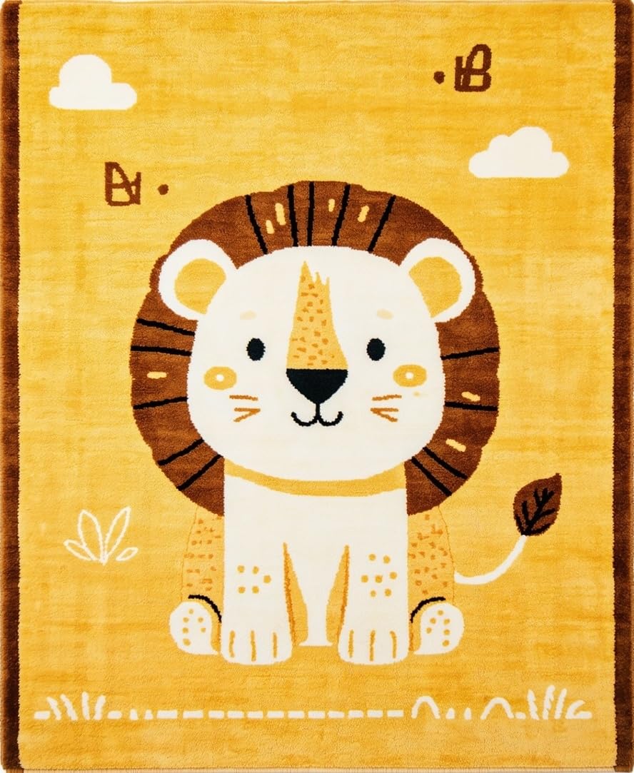 Ultra Soft Area Rug, Non Slip, Stain Resistant, Washable Area Rugs for Living Room, Bedroom, Adorable Round Wildlife Motif(Yellow) Overview: