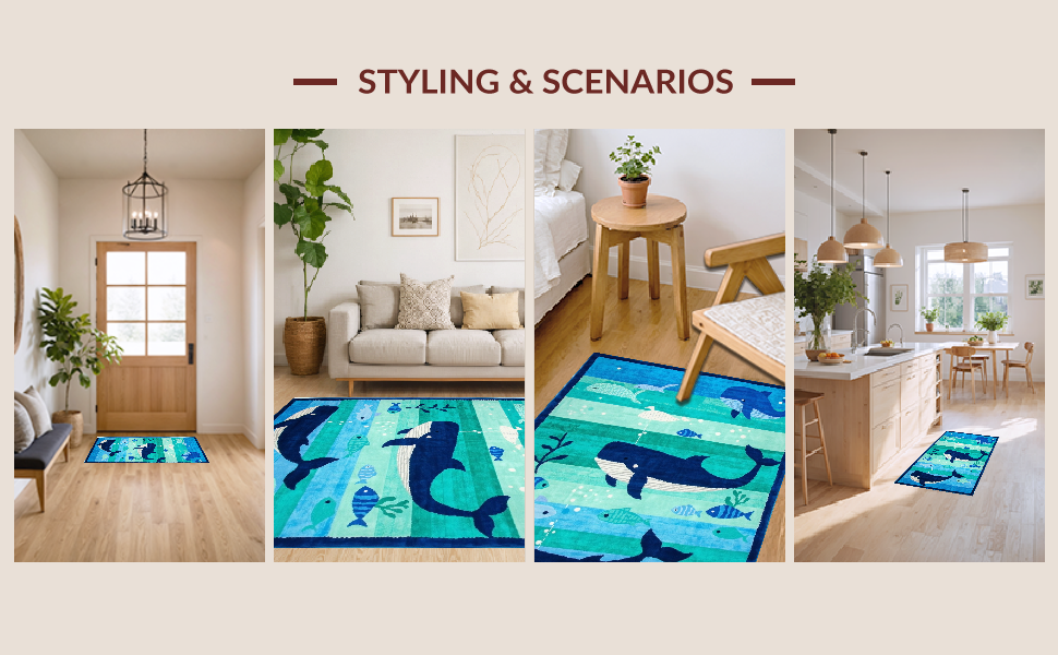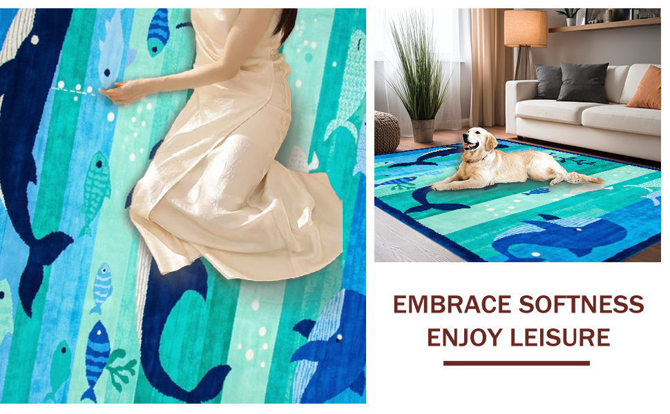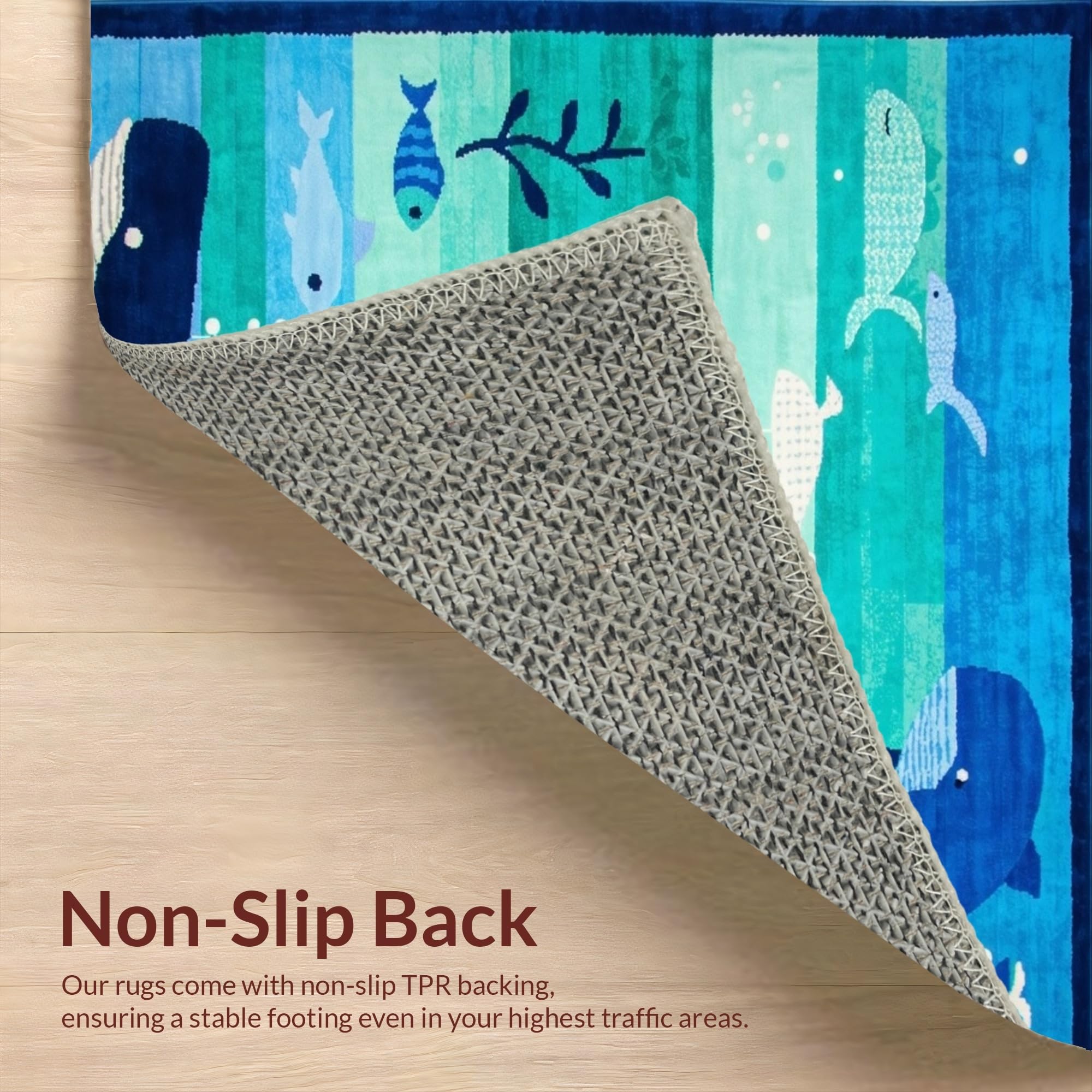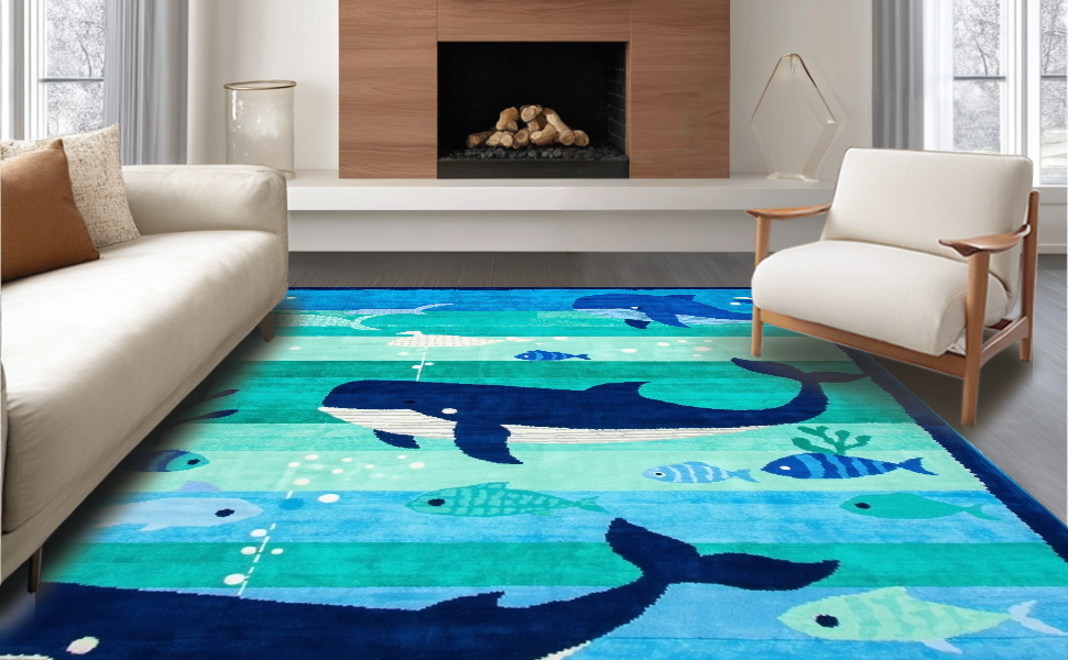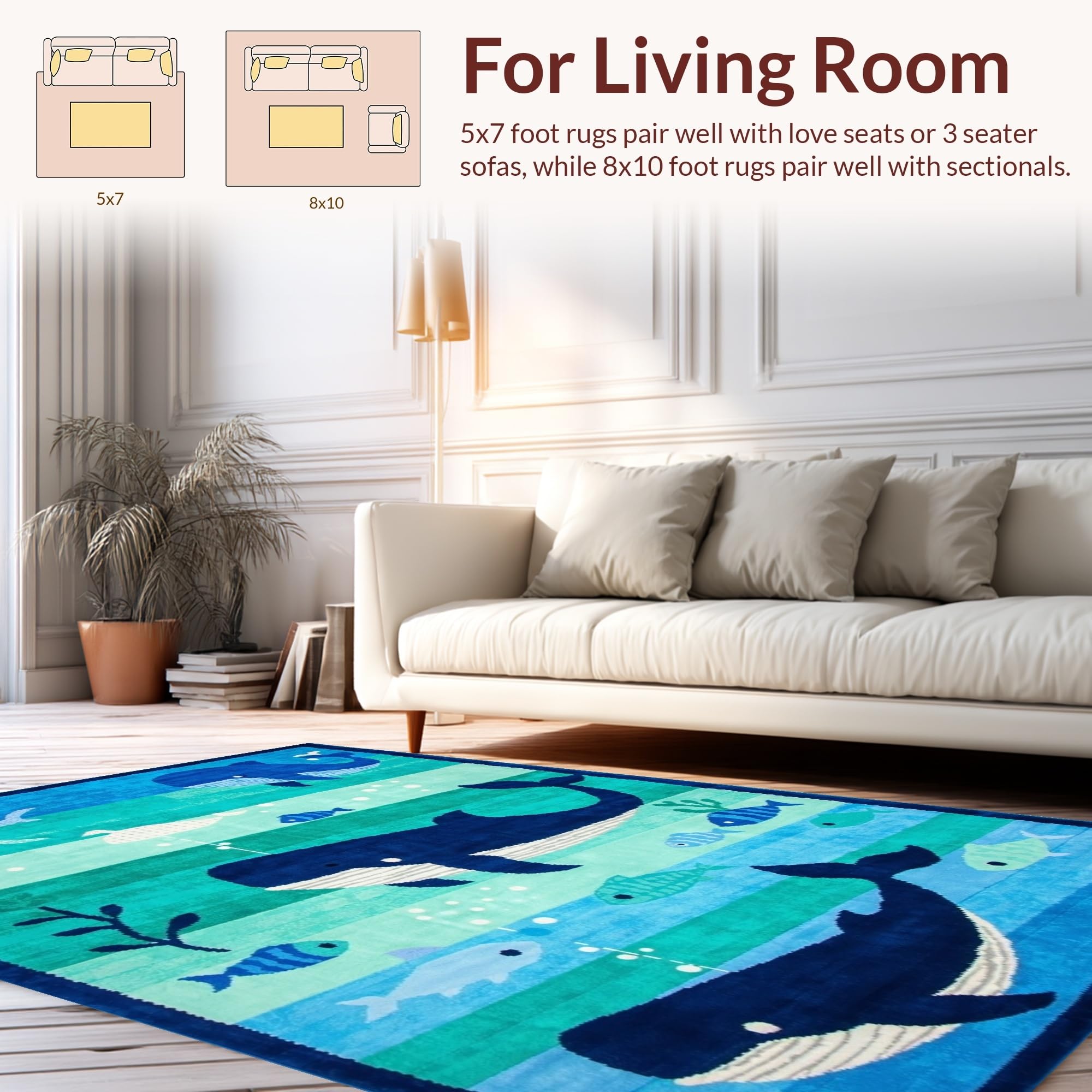 Ultra Soft Area Rug, Non Slip, Stain Resistant, Washable Area Rugs for Living Room, Bedroom, Adorable Sea Creature Arrangement(Blue) Overview: