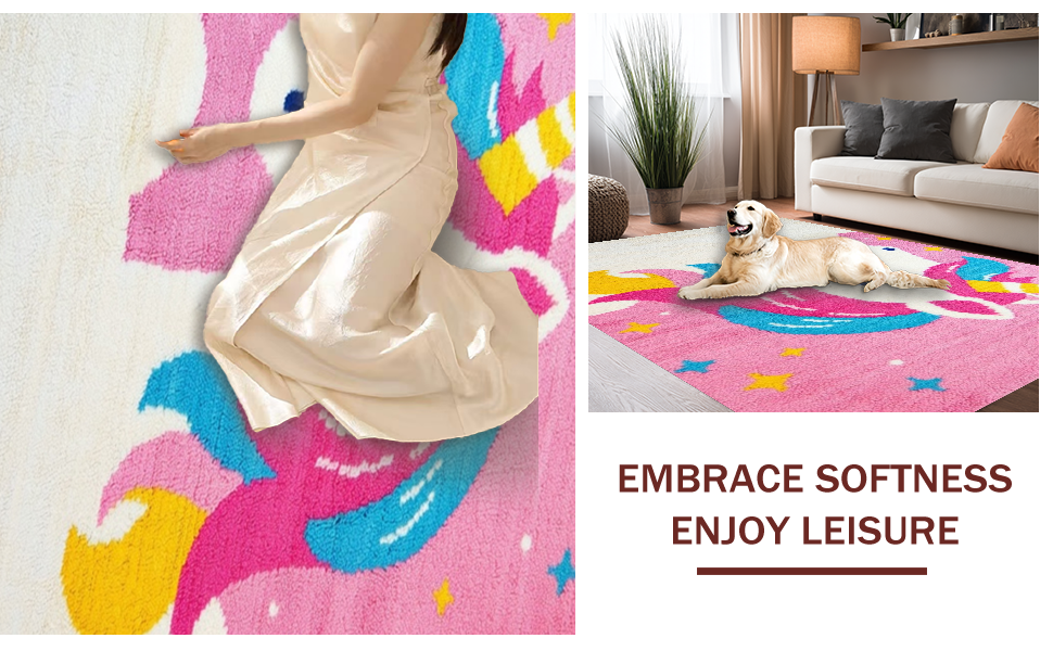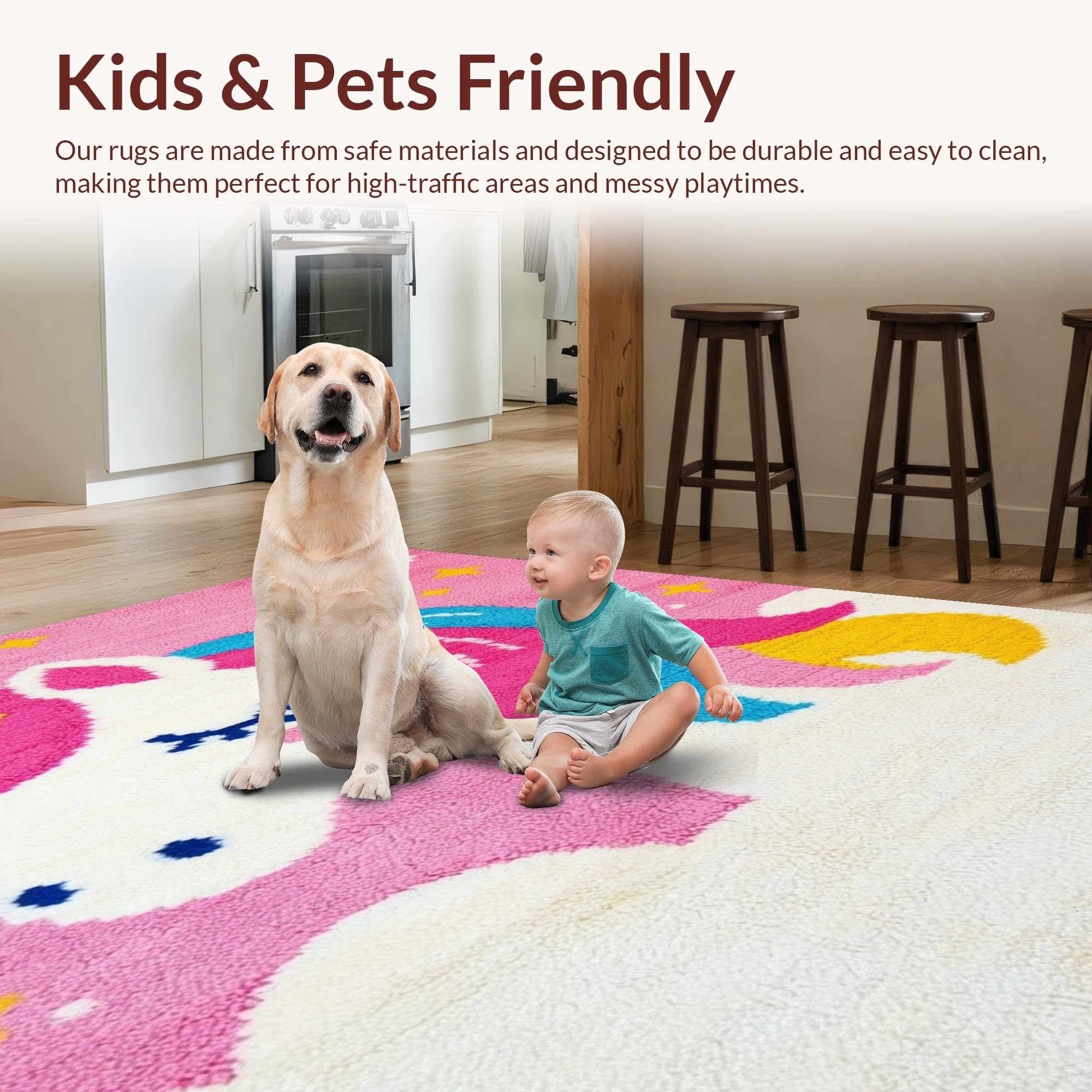 Ultra Soft Area Rug, Non Slip, Stain Resistant, Washable Area Rugs for Living Room, Bedroom, Adorable Shaggy Kaleidoscope Style(Pink) Overview: