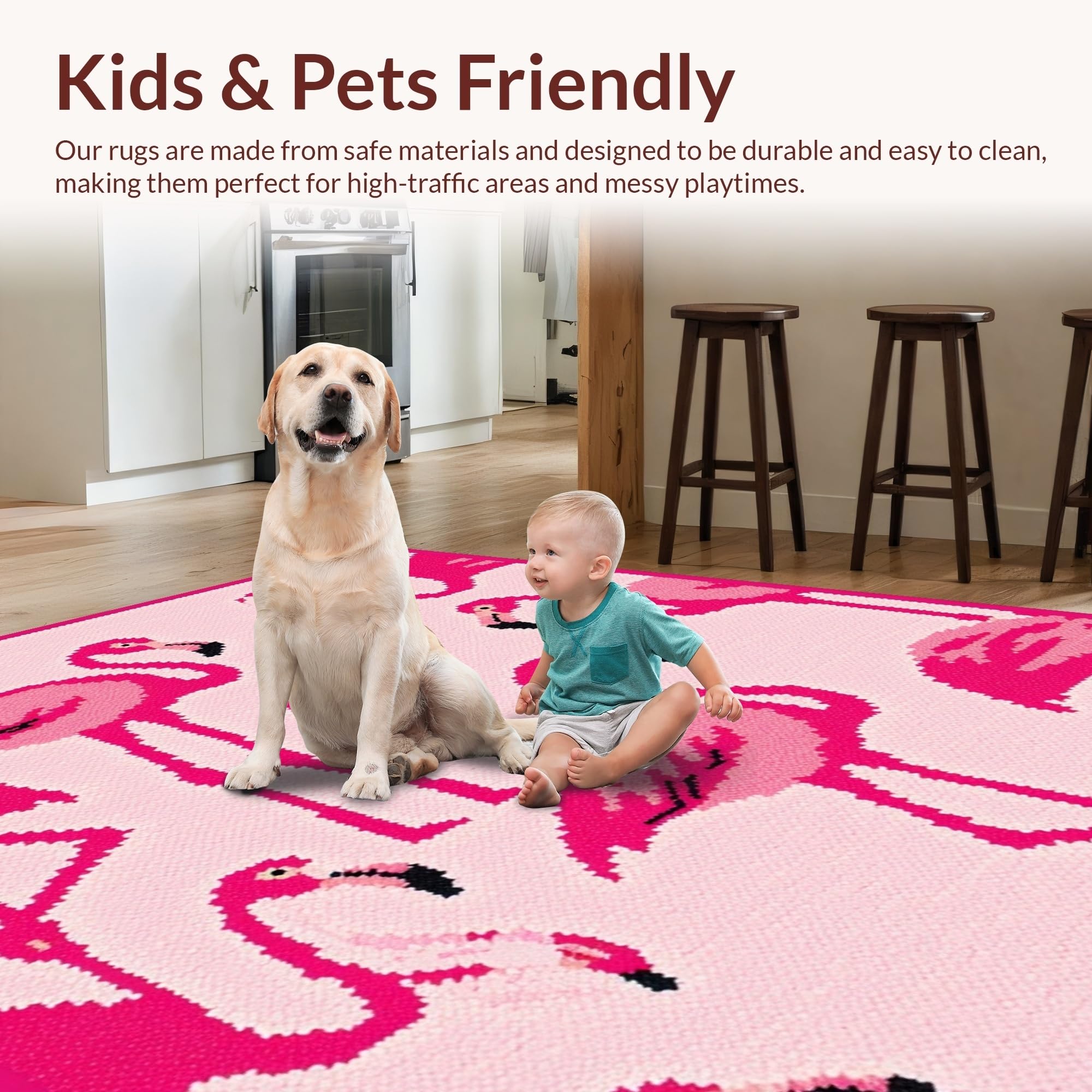 Ultra Soft Area Rug, Non Slip, Stain Resistant, Washable Area Rugs for Living Room, Bedroom, Adorable Youthful Floral Style(Pink) Overview: