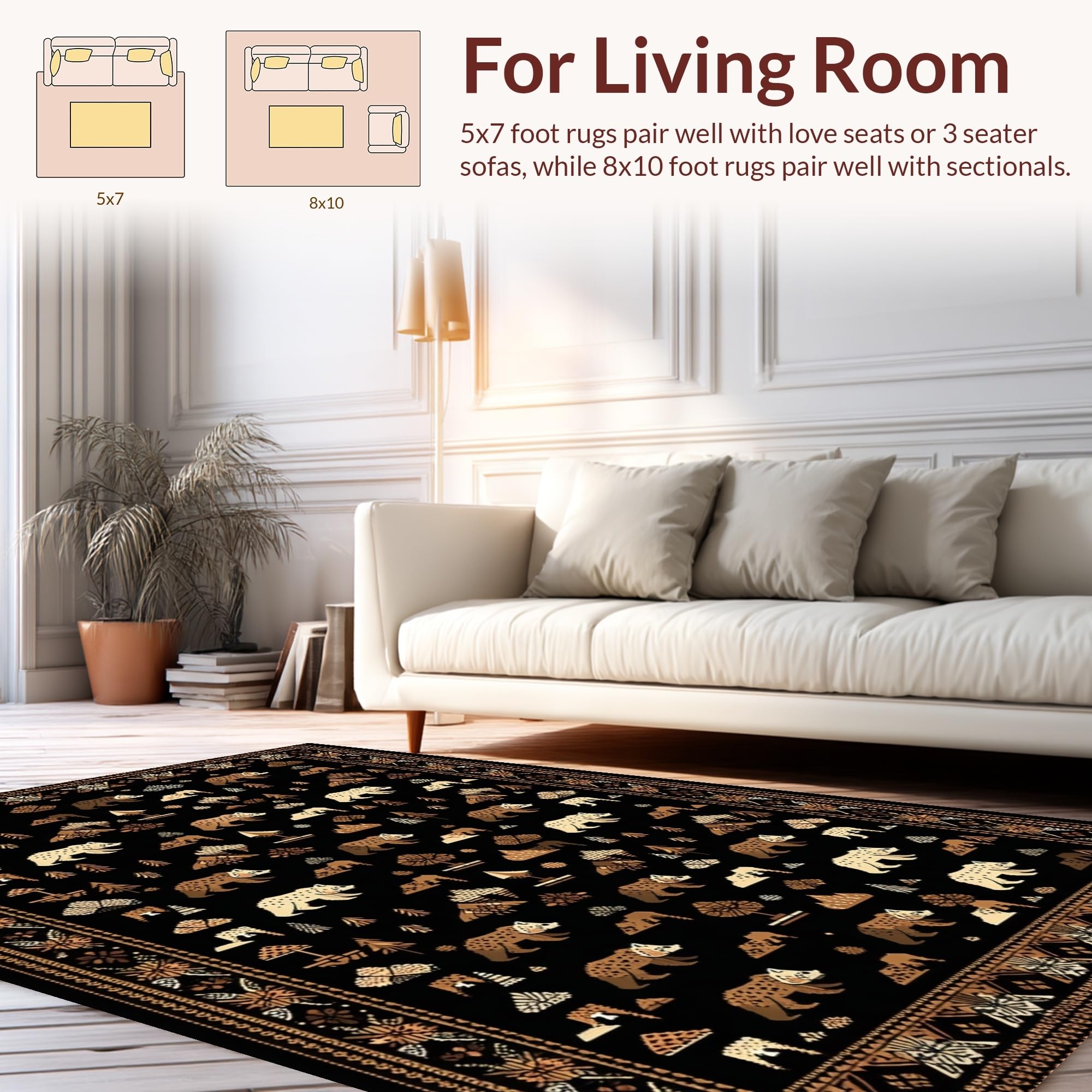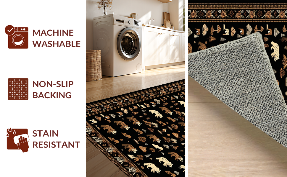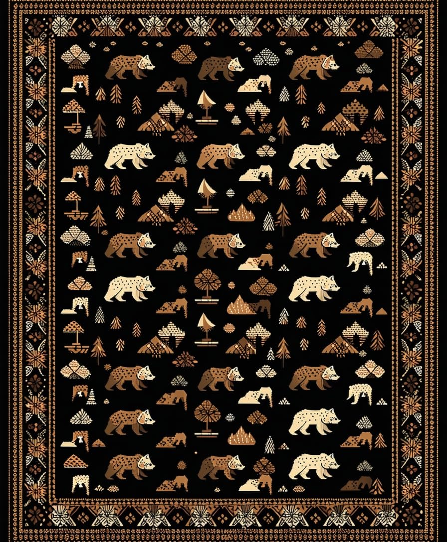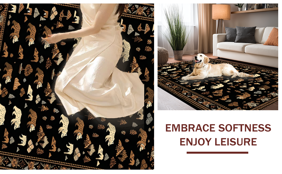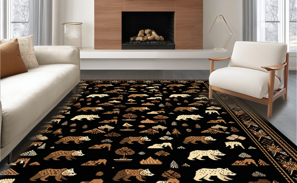 Ultra Soft Area Rug, Non Slip, Stain Resistant, Washable Area Rugs for Living Room, Bedroom, Adventurous Cozy Forest Motif(Black) Overview: