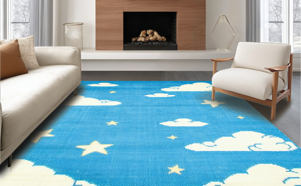 Ultra Soft Area Rug, Non Slip, Stain Resistant, Washable Area Rugs for Living Room, Bedroom, Adventurous Vintage Balloon Journey(Blue) Overview: