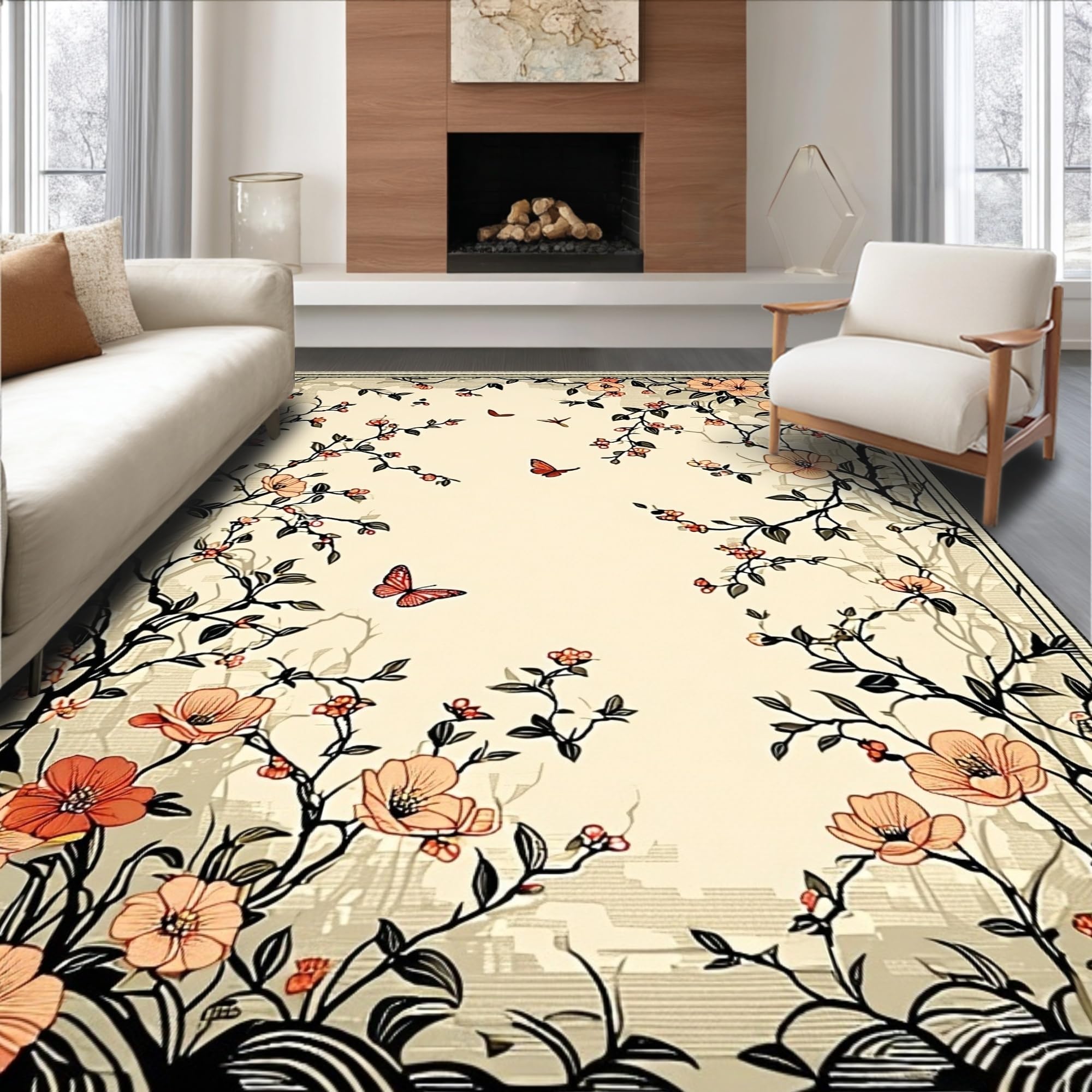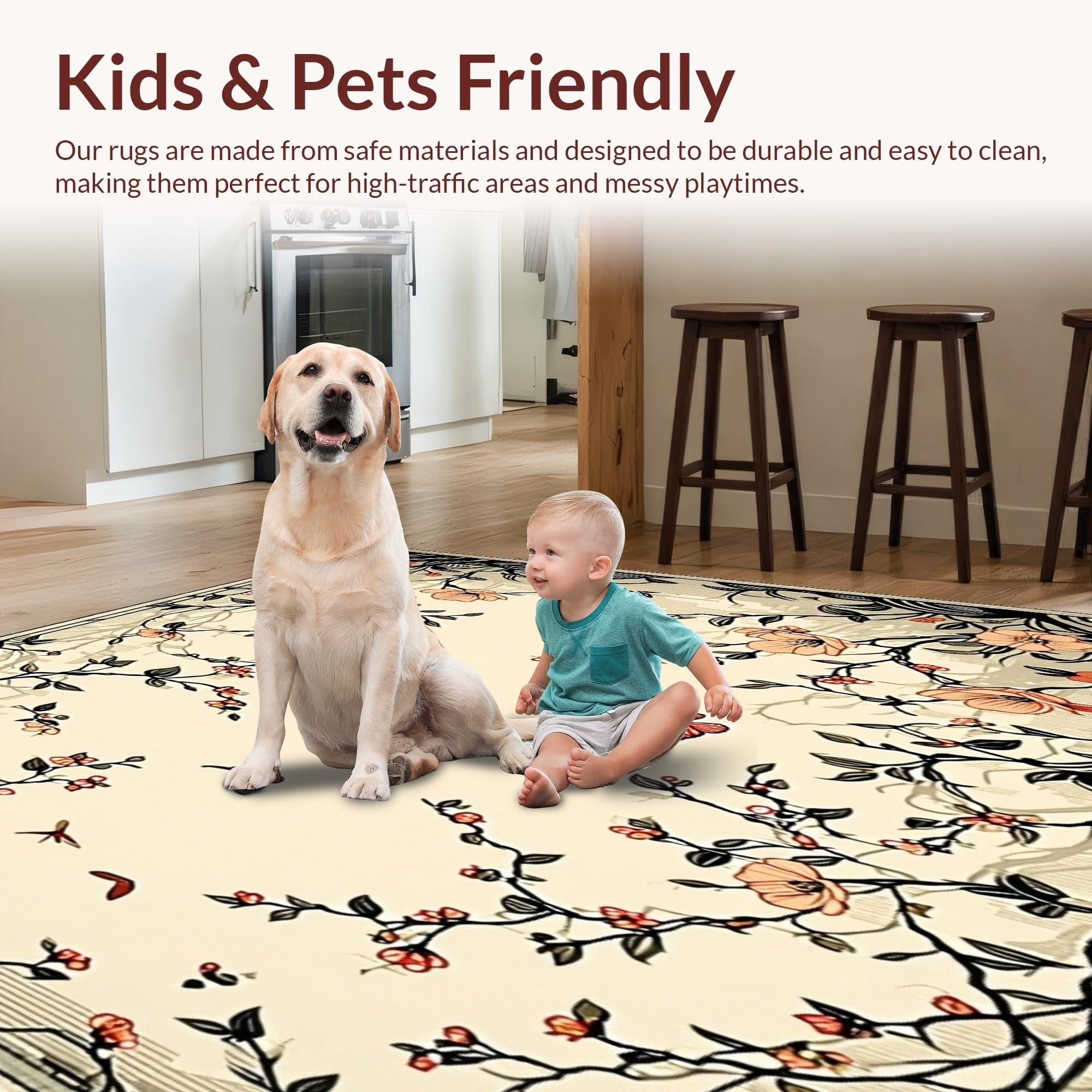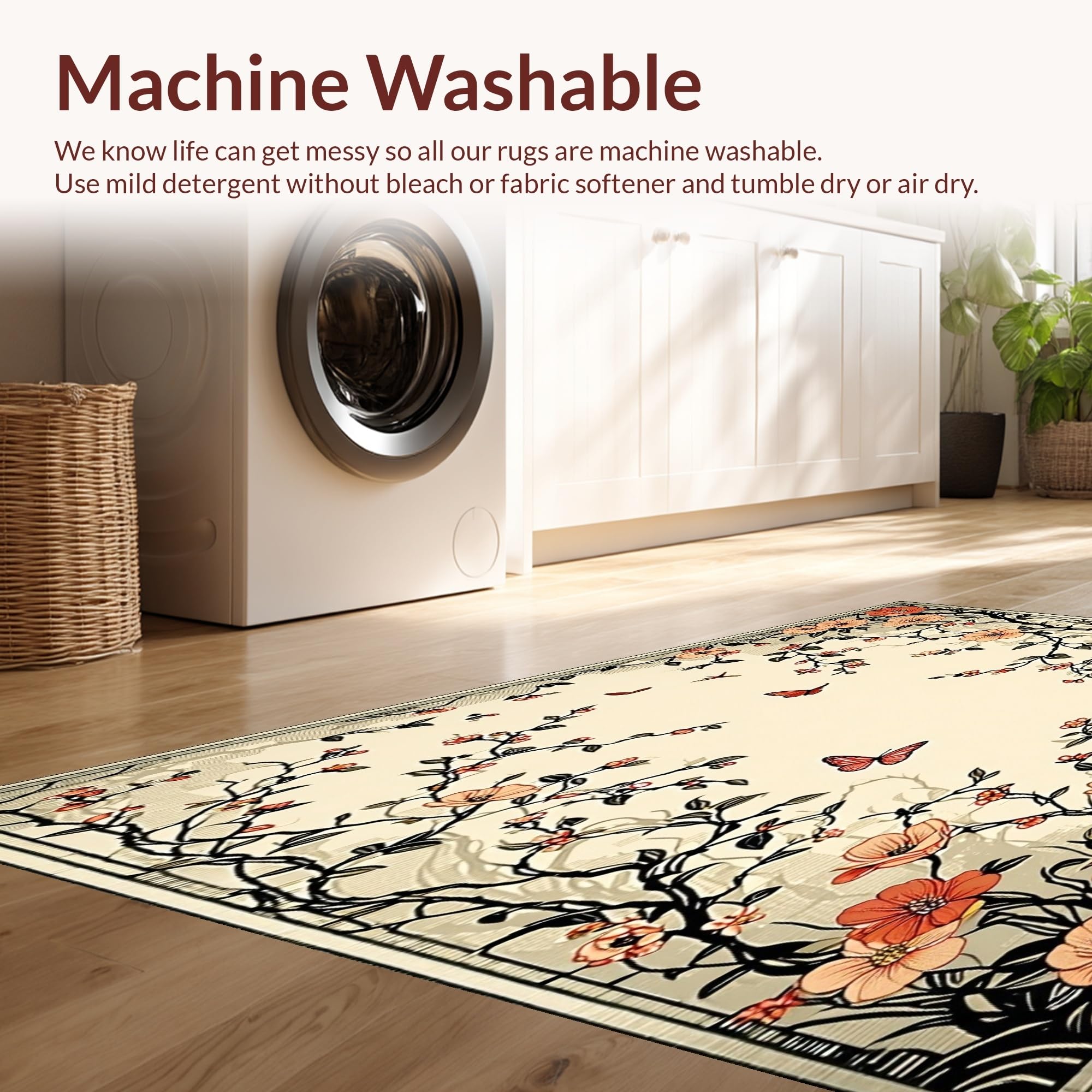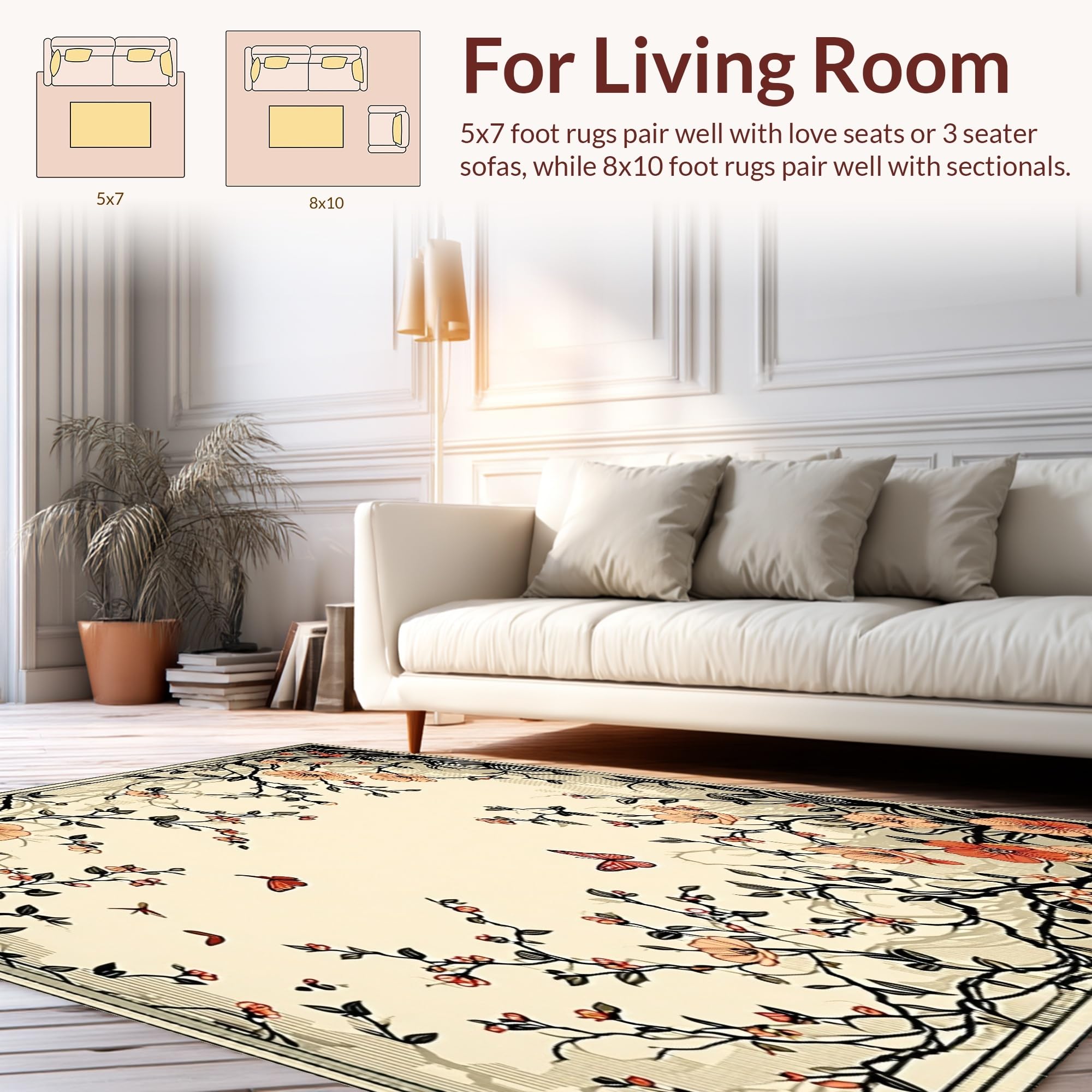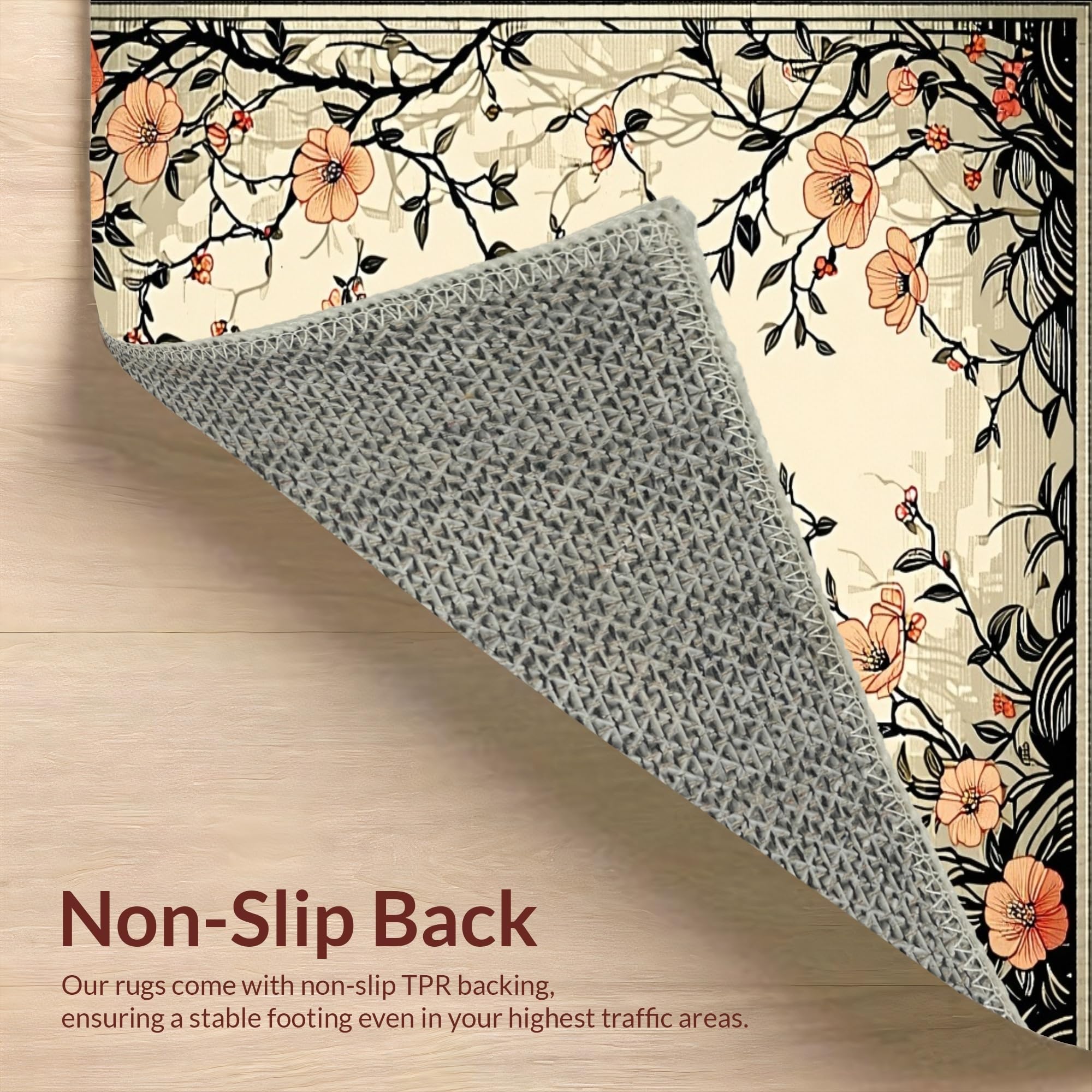 Ultra Soft Area Rug, Non Slip, Stain Resistant, Washable Area Rugs for Living Room, Bedroom, Aesthetic Blossom Doorway With Unique Neutral Tone(Beige) Overview: