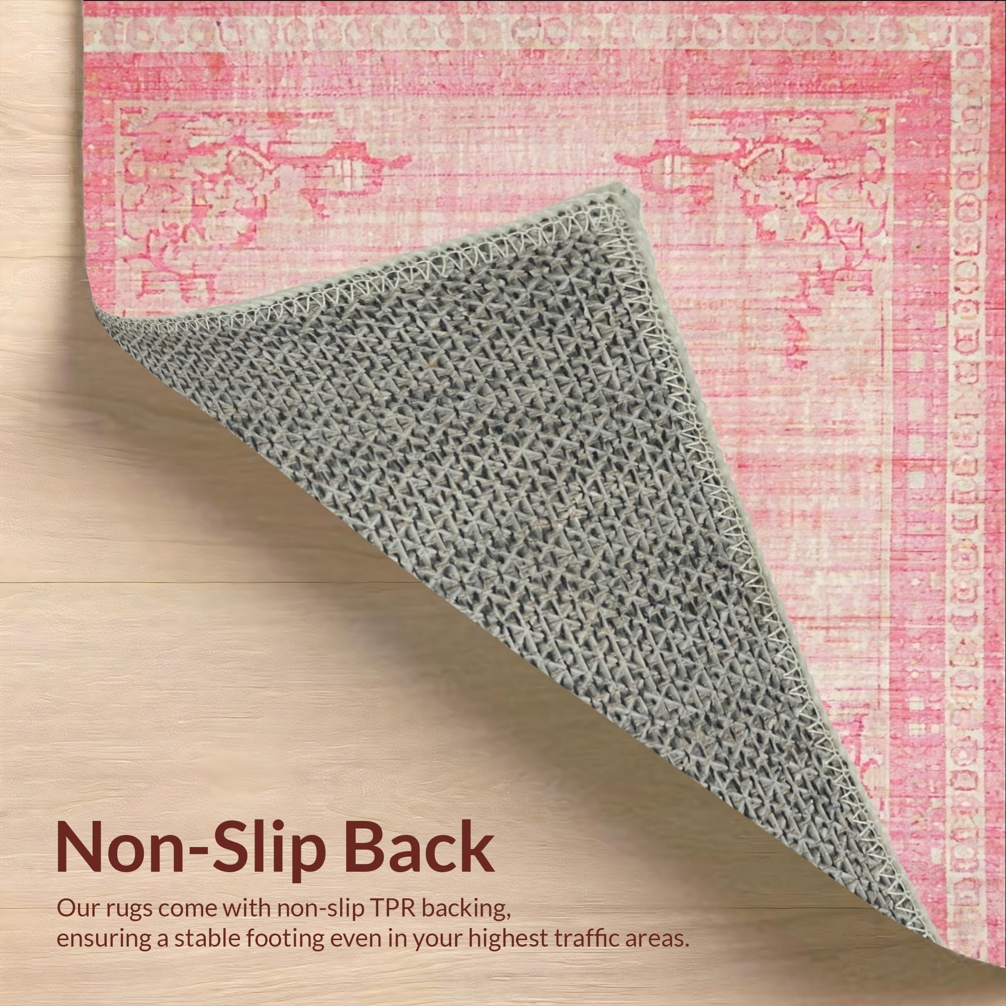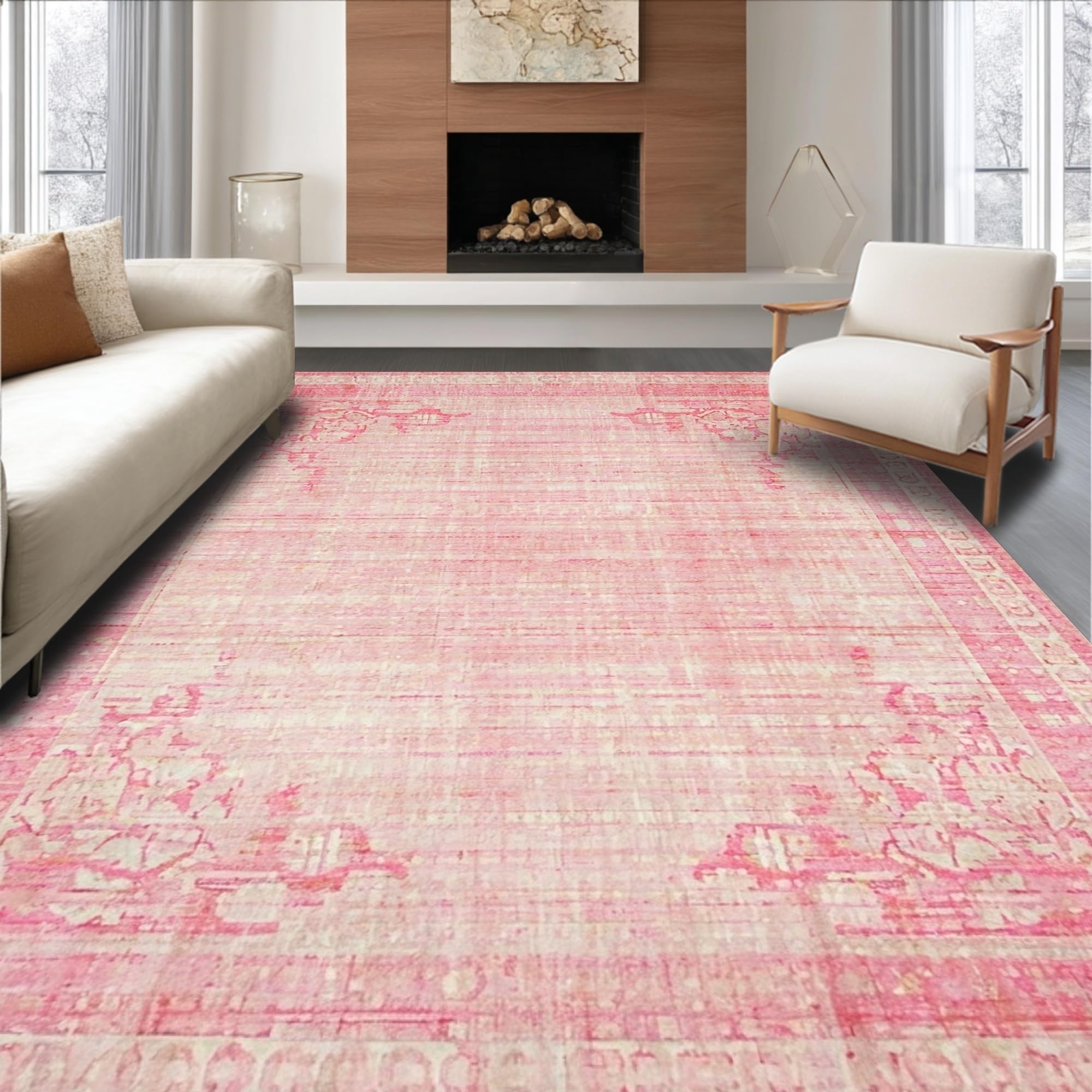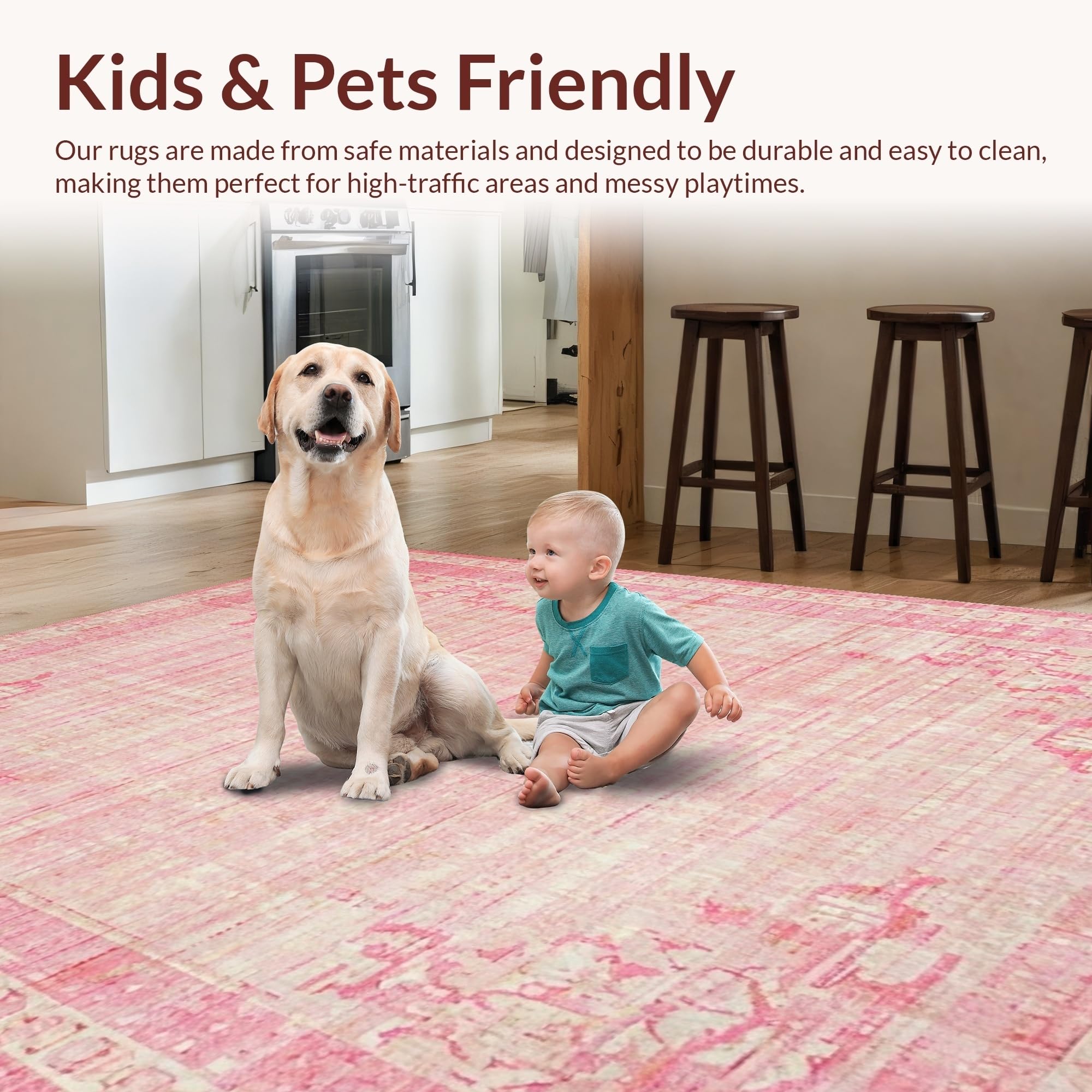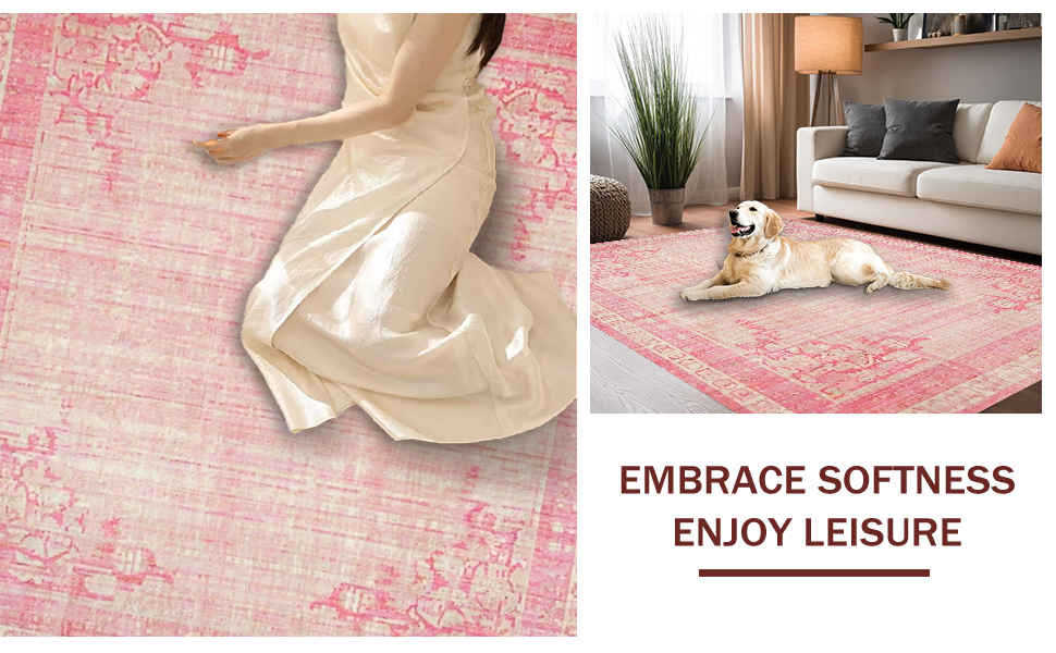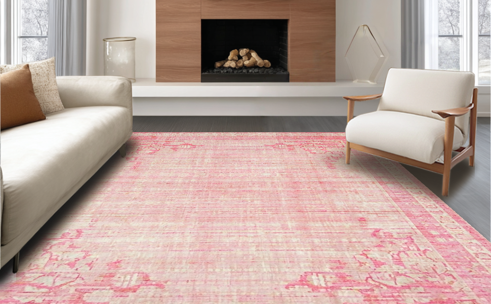 Ultra Soft Area Rug, Non Slip, Stain Resistant, Washable Area Rugs for Living Room, Bedroom, Aesthetic Bow Design Scalloped Border Rug(Pink) Overview: