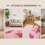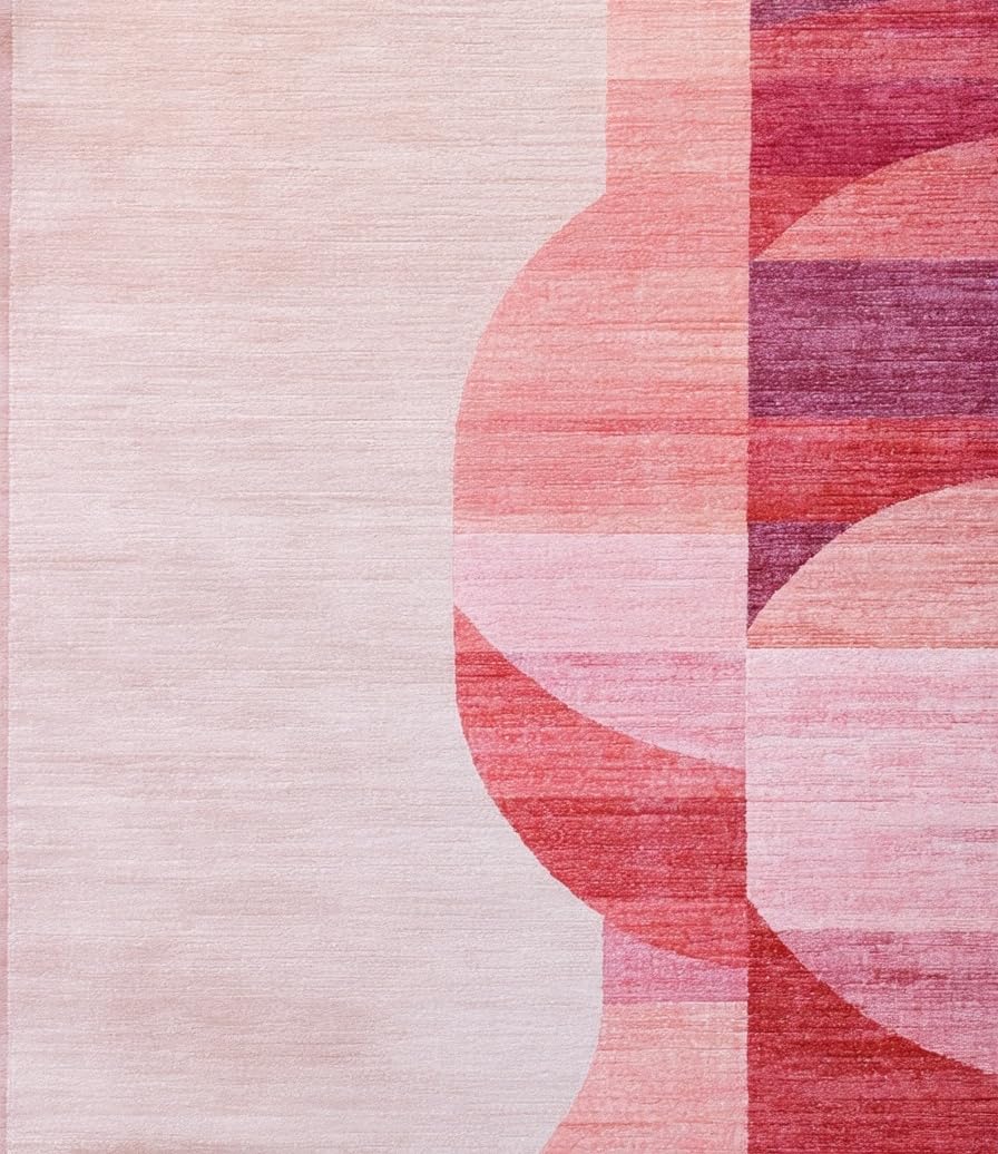 Ultra Soft Area Rug, Non Slip, Stain Resistant, Washable Area Rugs for Living Room, Bedroom, Aesthetic Bow Silhouette Rug with Satin Ribbon Elements and Dotted Borders(Pink) Overview:
