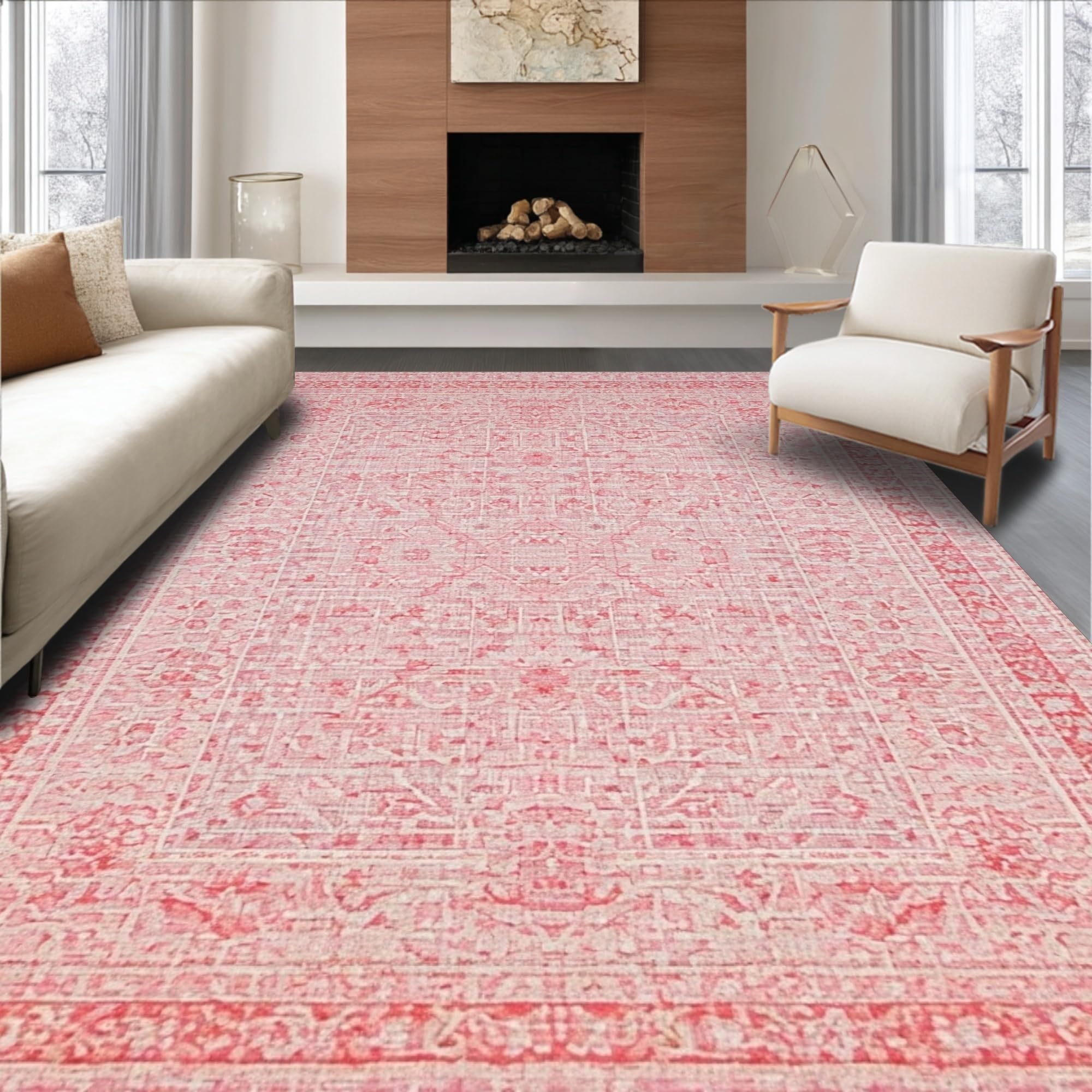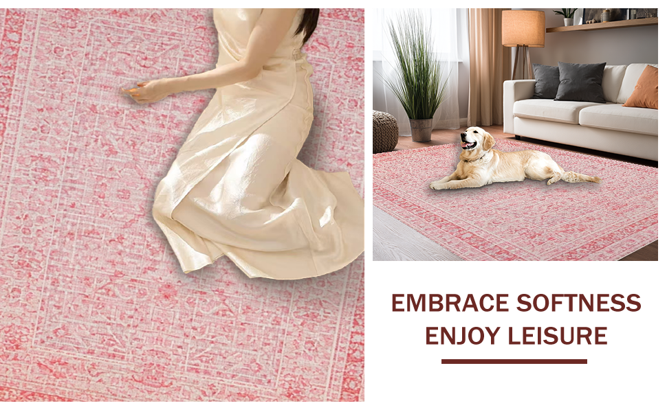 Ultra Soft Area Rug, Non Slip, Stain Resistant, Washable Area Rugs for Living Room, Bedroom, Aesthetic Ribbon Loop Rug Featuring Whimsical Bow-Inspired Pattern Design(Pink) Overview:
