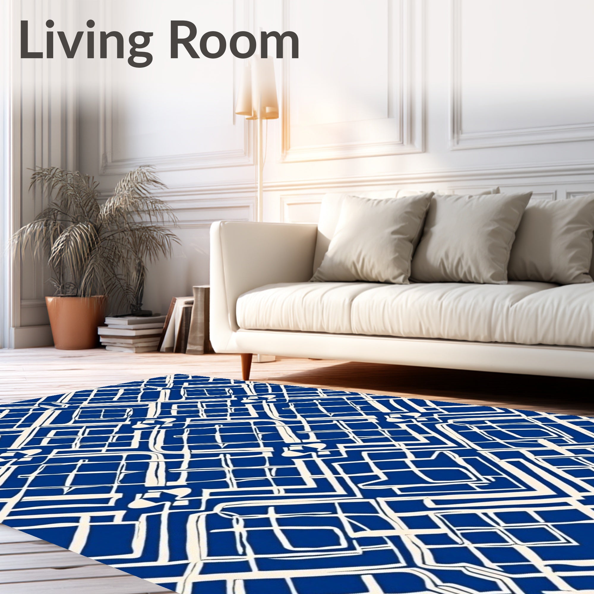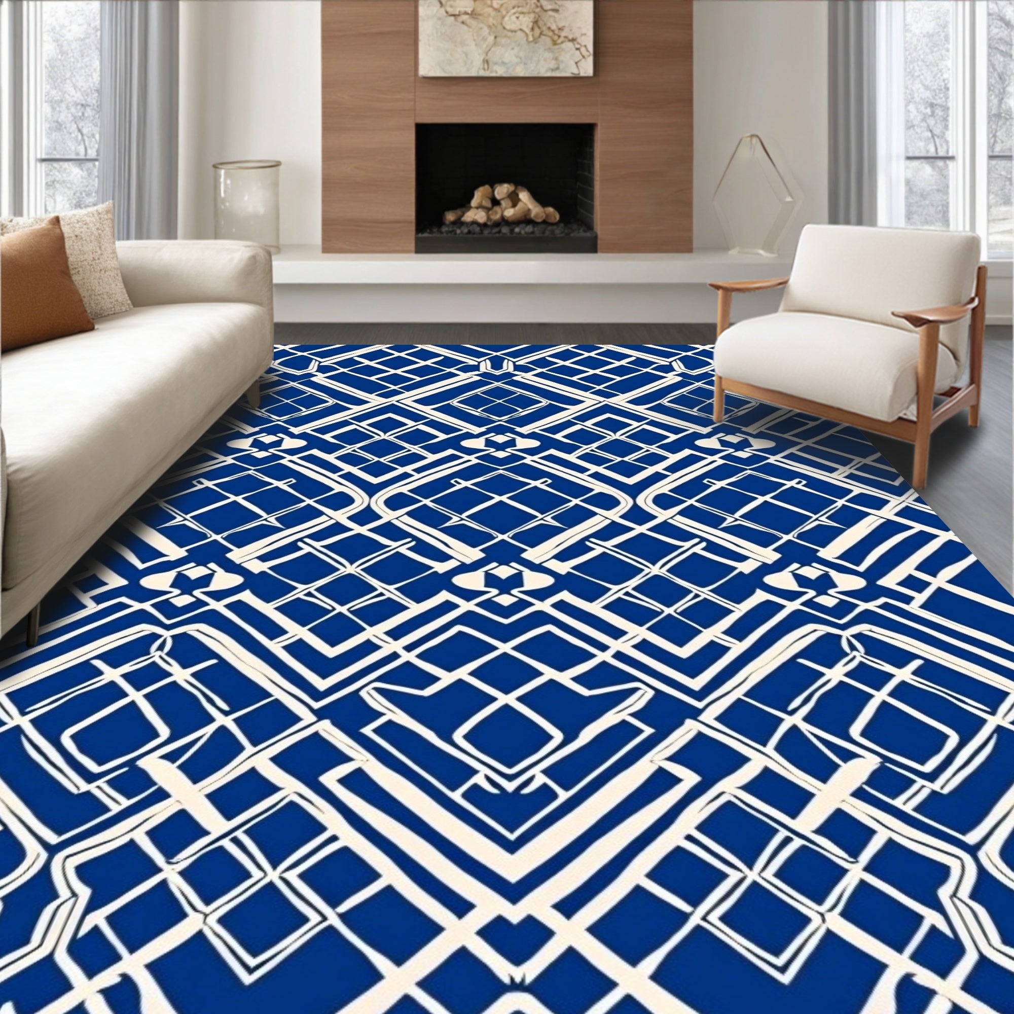 Ultra Soft Area Rug, Non Slip, Stain Resistant, Washable Area Rugs for Living Room, Bedroom, Amada Abstract Lattice Symmetry Inspired by Urban Art(Blue) Overview: