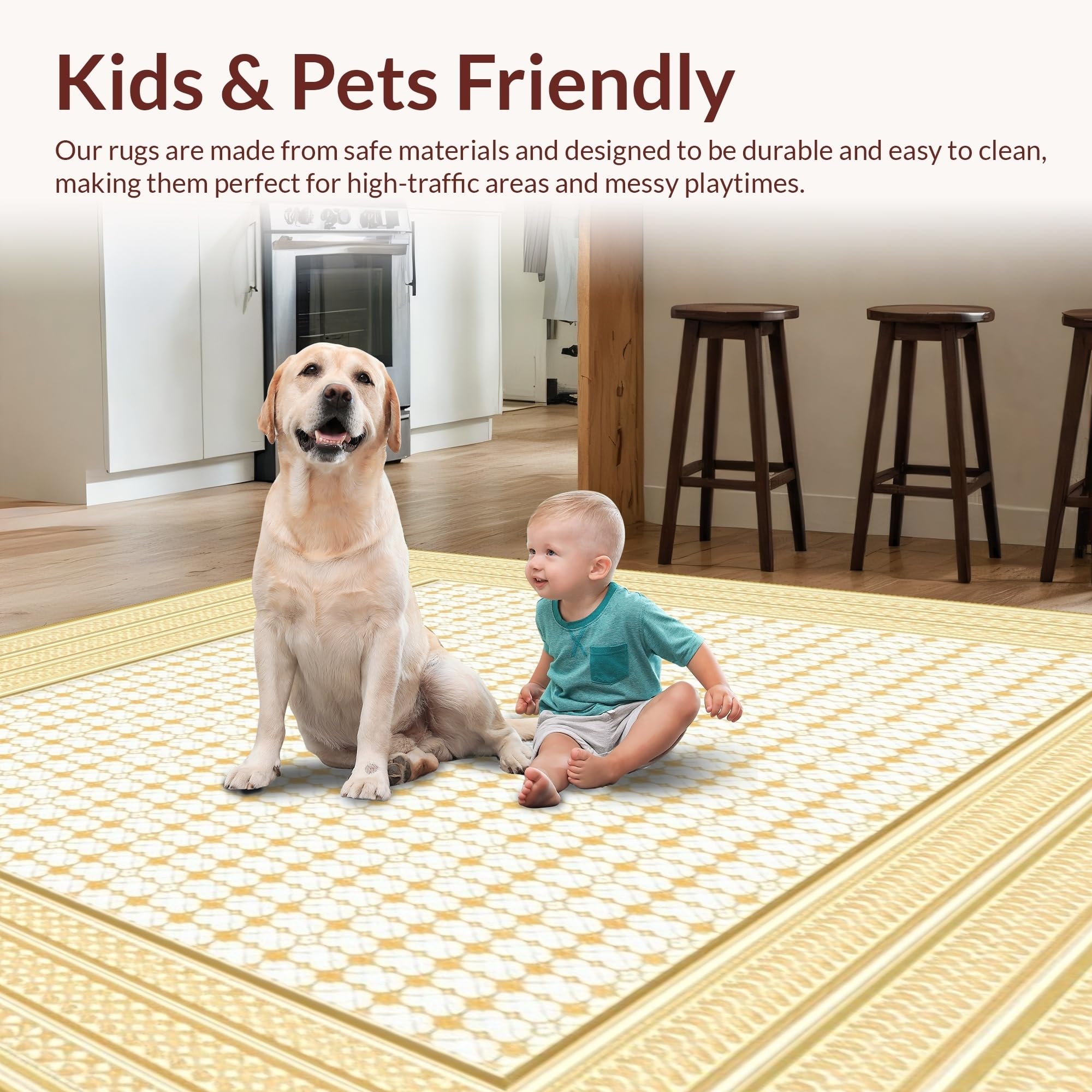 Ultra Soft Area Rug, Non Slip, Stain Resistant, Washable Area Rugs for Living Room, Bedroom, Amherst Collection Area Wheat & Beige Geometric Trellis Design(Gold) Overview: