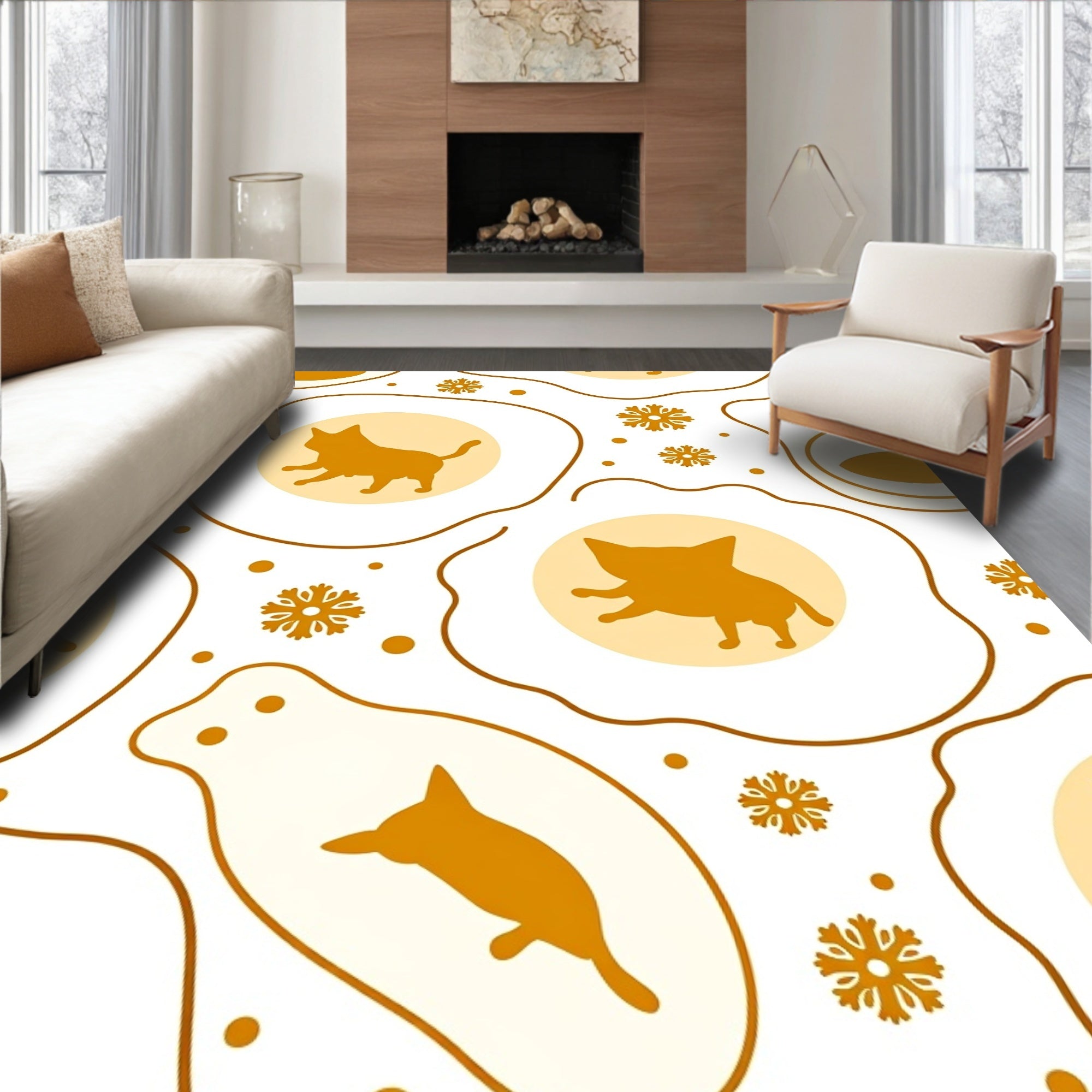 Ultra Soft Area Rug, Non Slip, Stain Resistant, Washable Area Rugs for Living Room, Bedroom, Amusing Flash Kitty Brunch Theme Vacation Accessory(Beige) Overview: