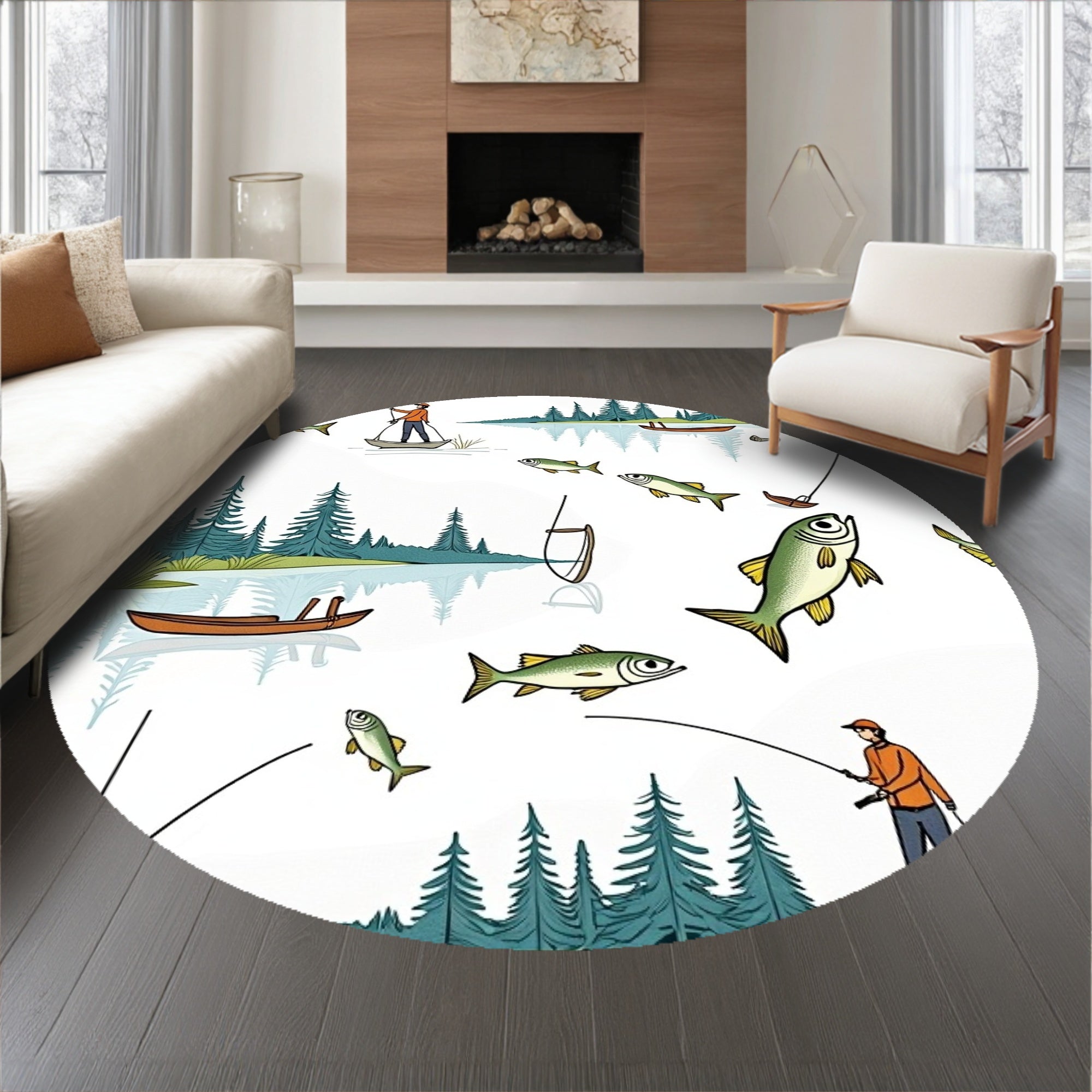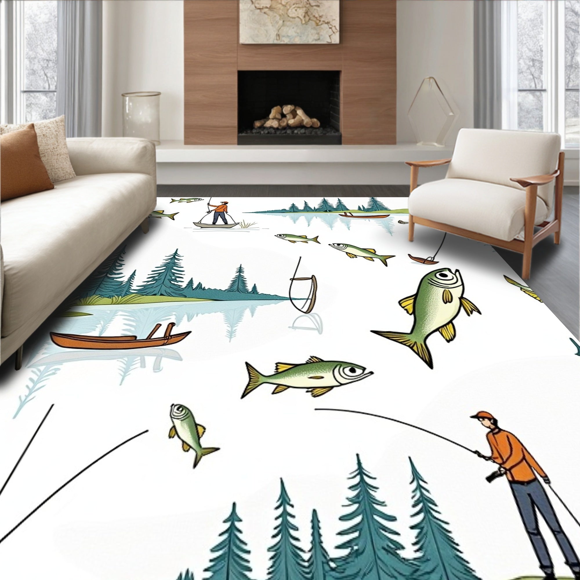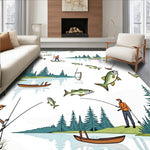 Ultra Soft Area Rug, Non Slip, Stain Resistant, Washable Area Rugs for Living Room, Bedroom, Angler Lake Scene Decorative Nautical Fish Catch Display(Brown) Overview: