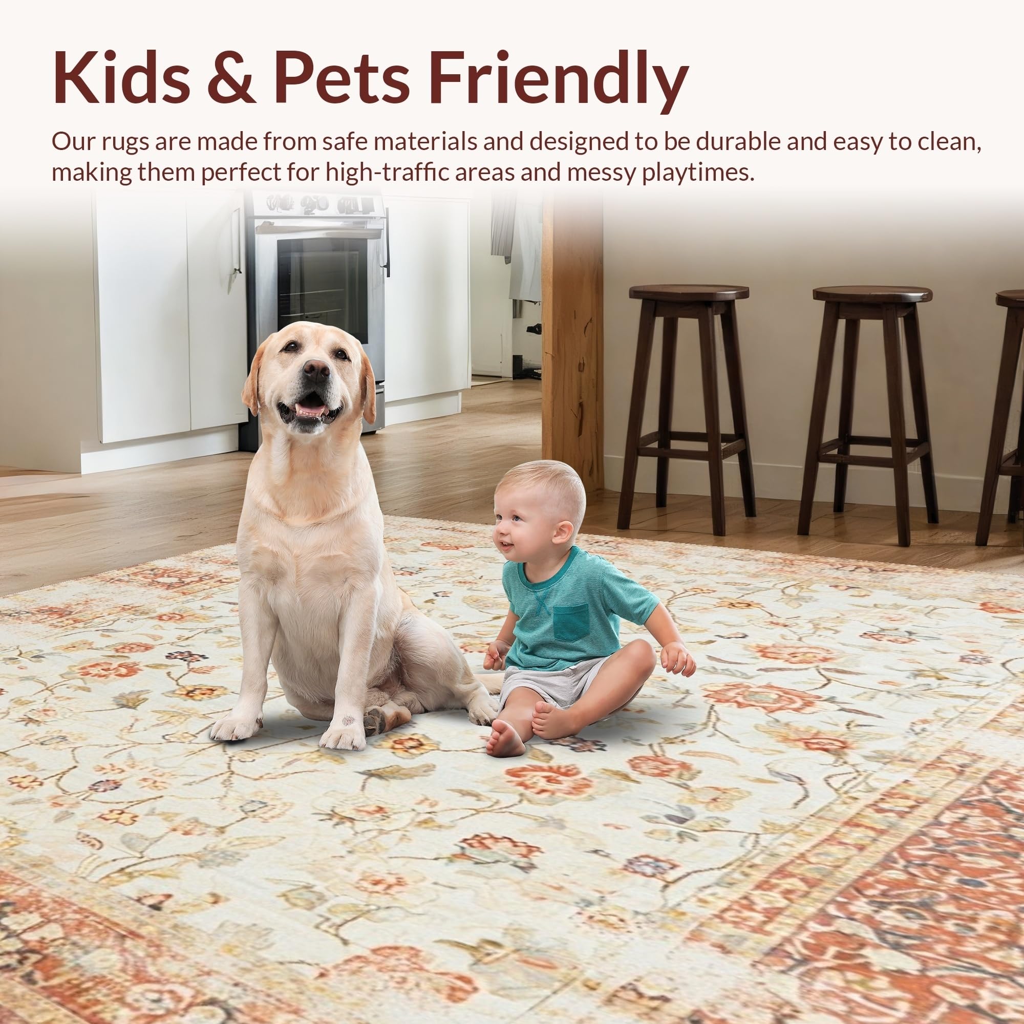 Ultra Soft Area Rug, Non Slip, Stain Resistant, Washable Area Rugs for Living Room, Bedroom, Antique Inspired Gentle Floral Motif Area(Beige) Overview: