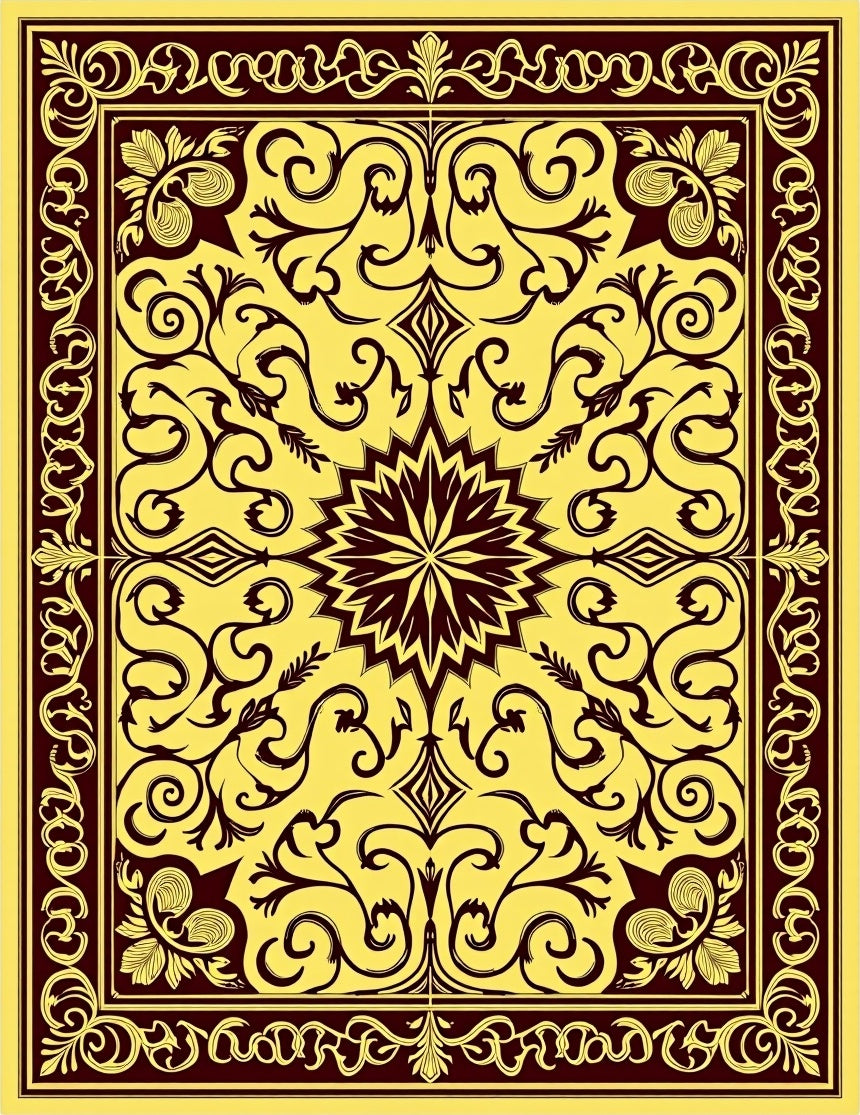 Arabesque Scroll Design with Symmetrical Vine(Yellow)