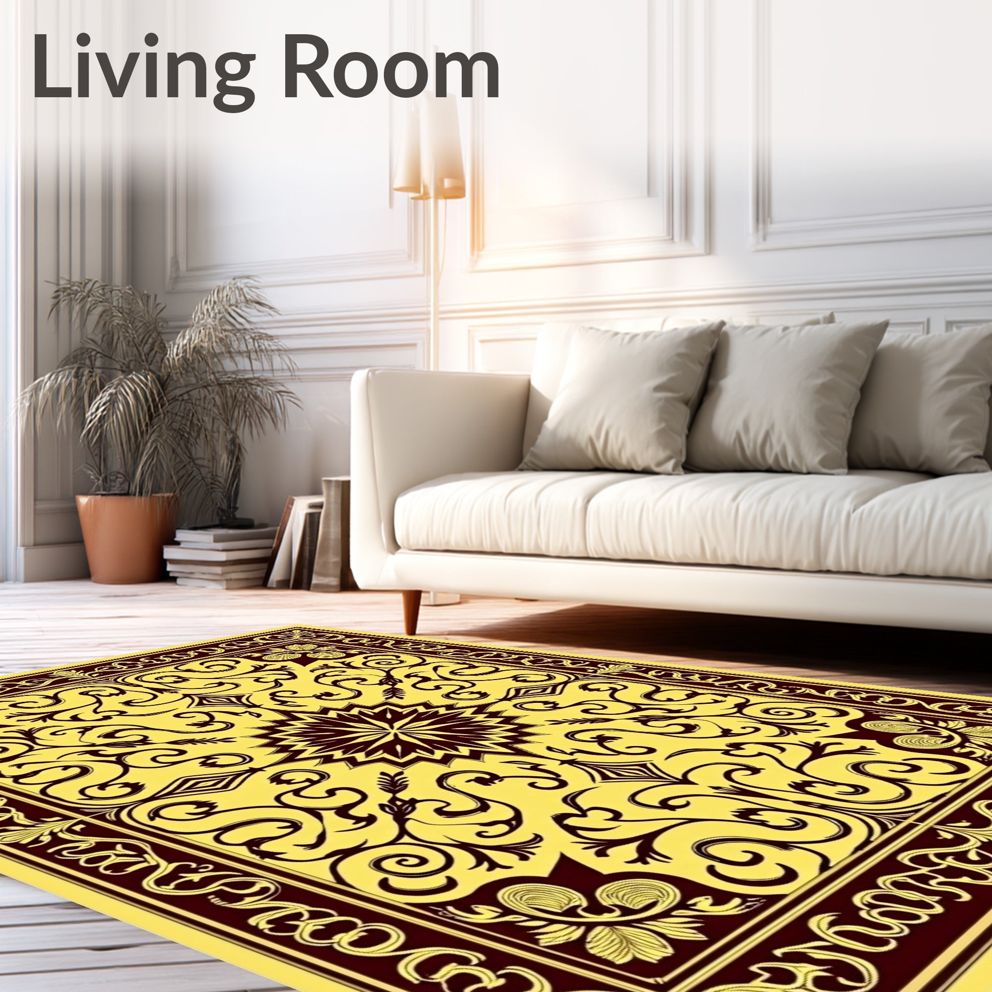 Ultra Soft Area Rug, Non Slip, Stain Resistant, Washable Area Rugs for Living Room, Bedroom, Arabesque Scroll Design with Symmetrical Vine(Yellow) Overview: