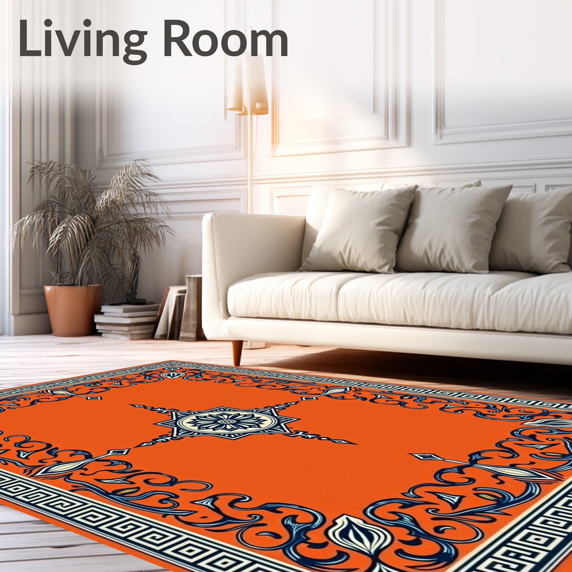 Ultra Soft Area Rug, Non Slip, Stain Resistant, Washable Area Rugs for Living Room, Bedroom, Arabesque Scrollwork Vine Decorative Floor(Orange) Overview: