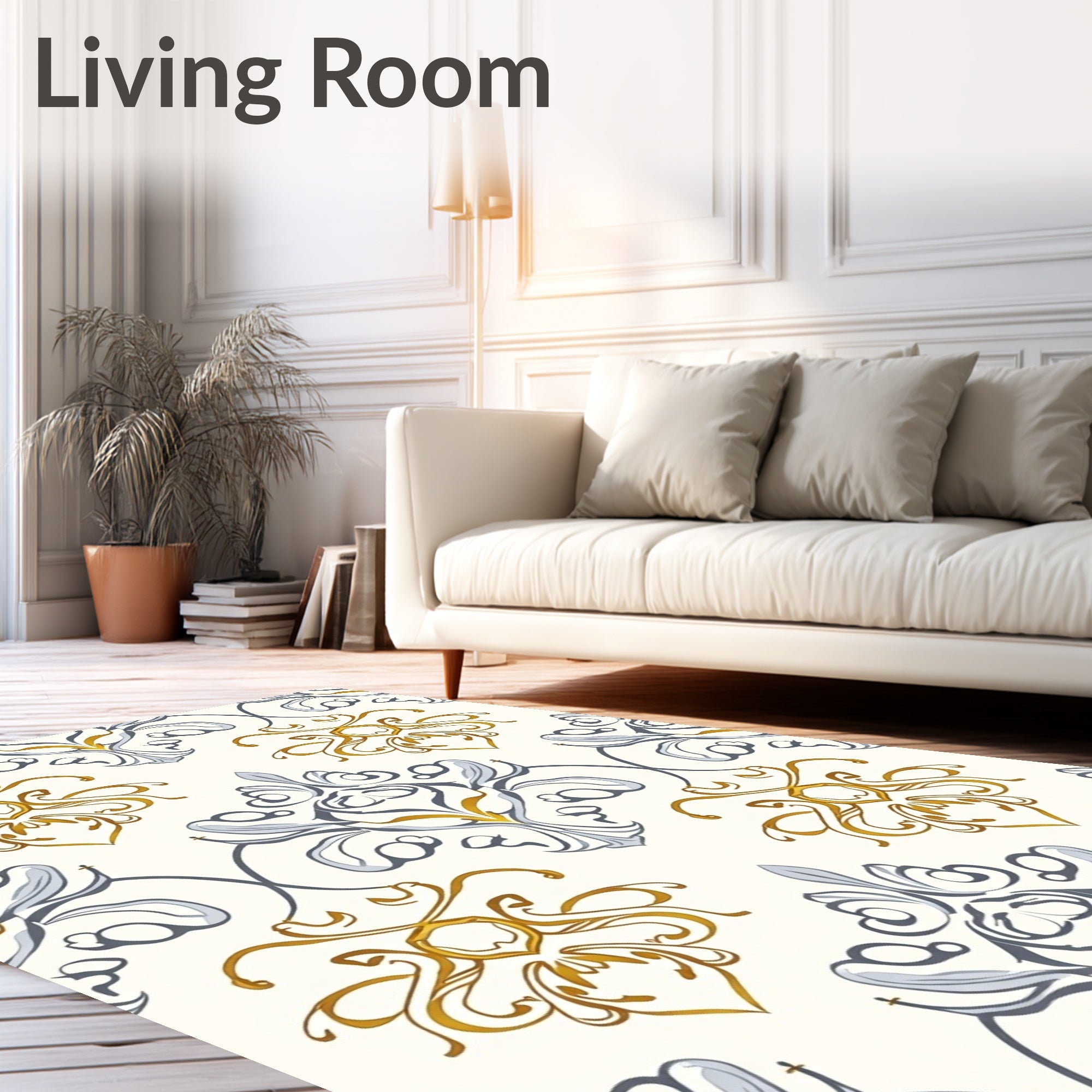 Ultra Soft Area Rug, Non Slip, Stain Resistant, Washable Area Rugs for Living Room, Bedroom, Arabesque Symphony Authentic Luxury(White) Overview: