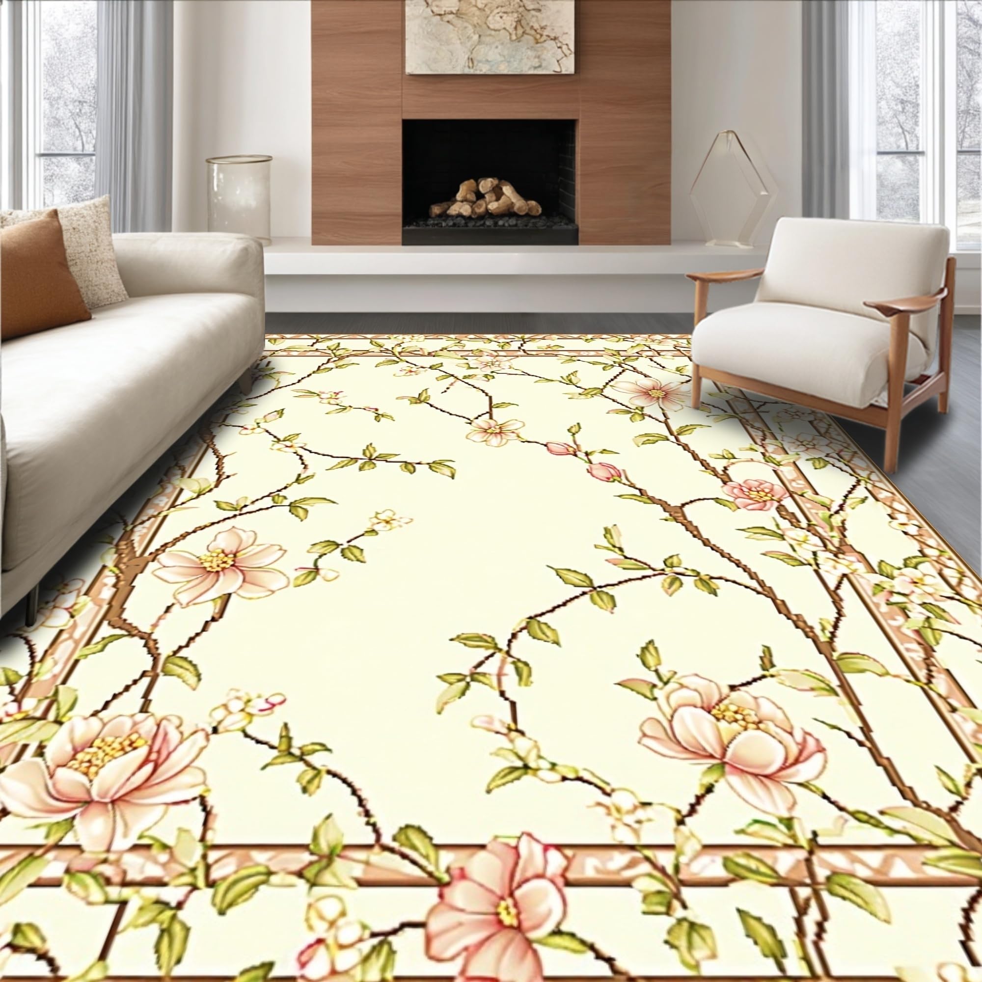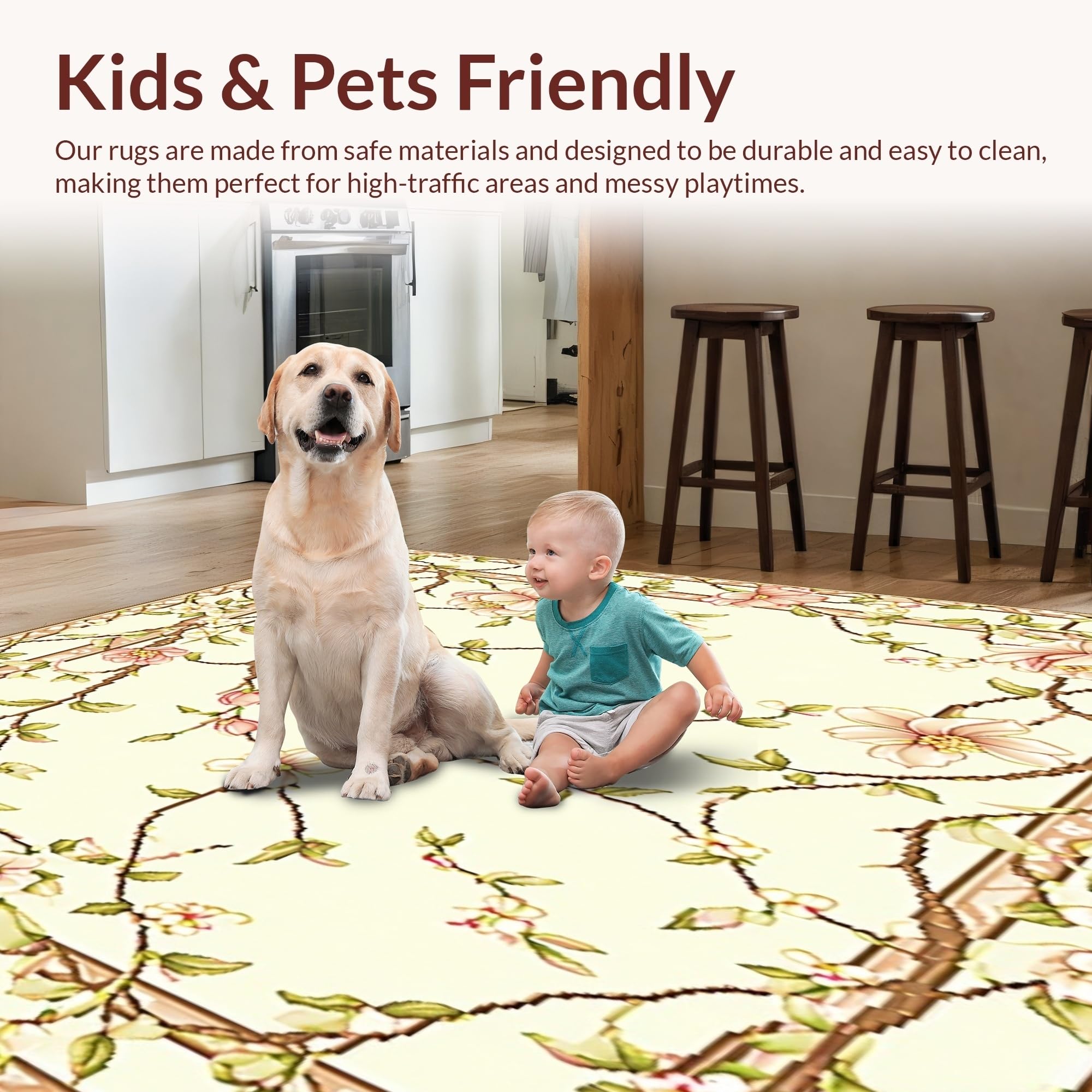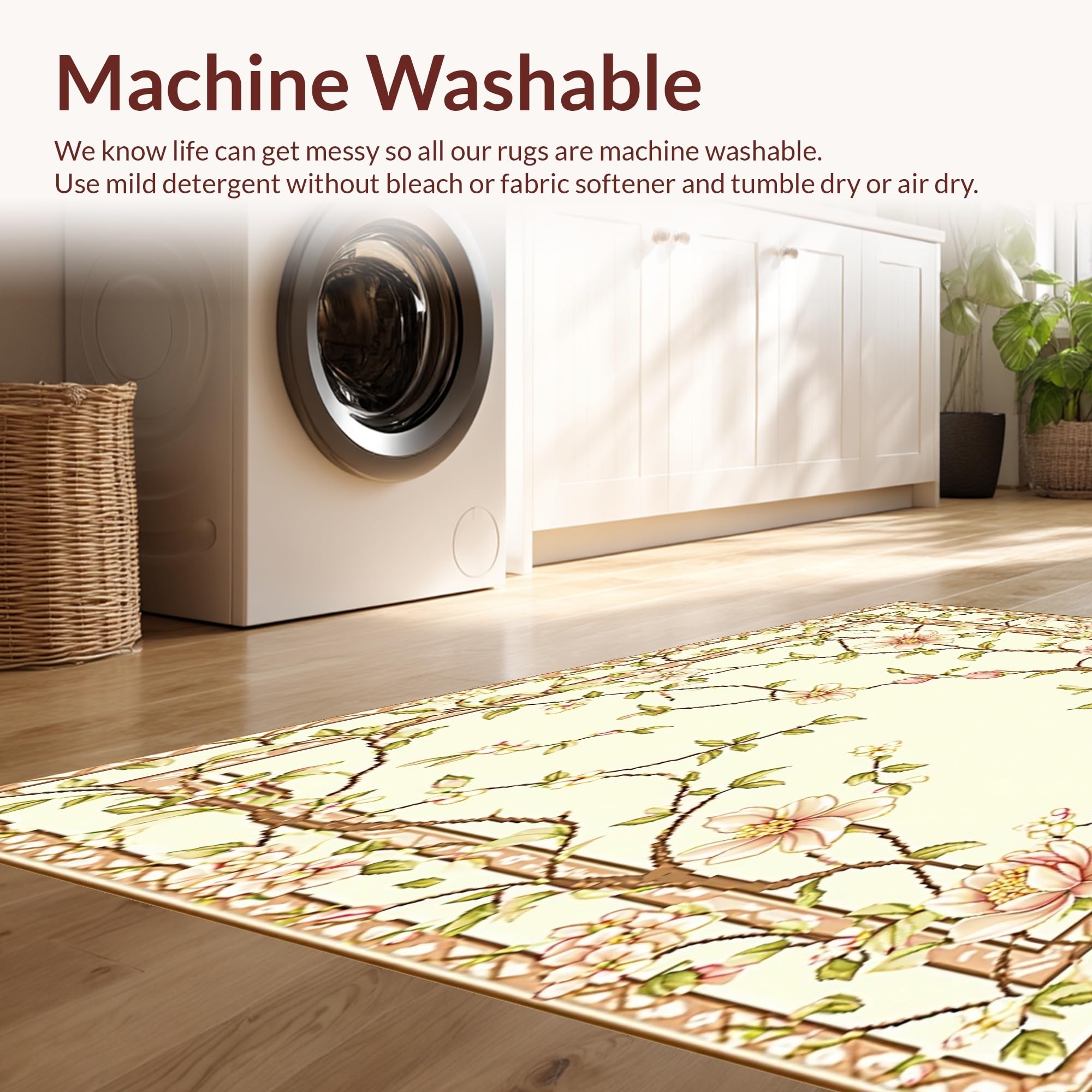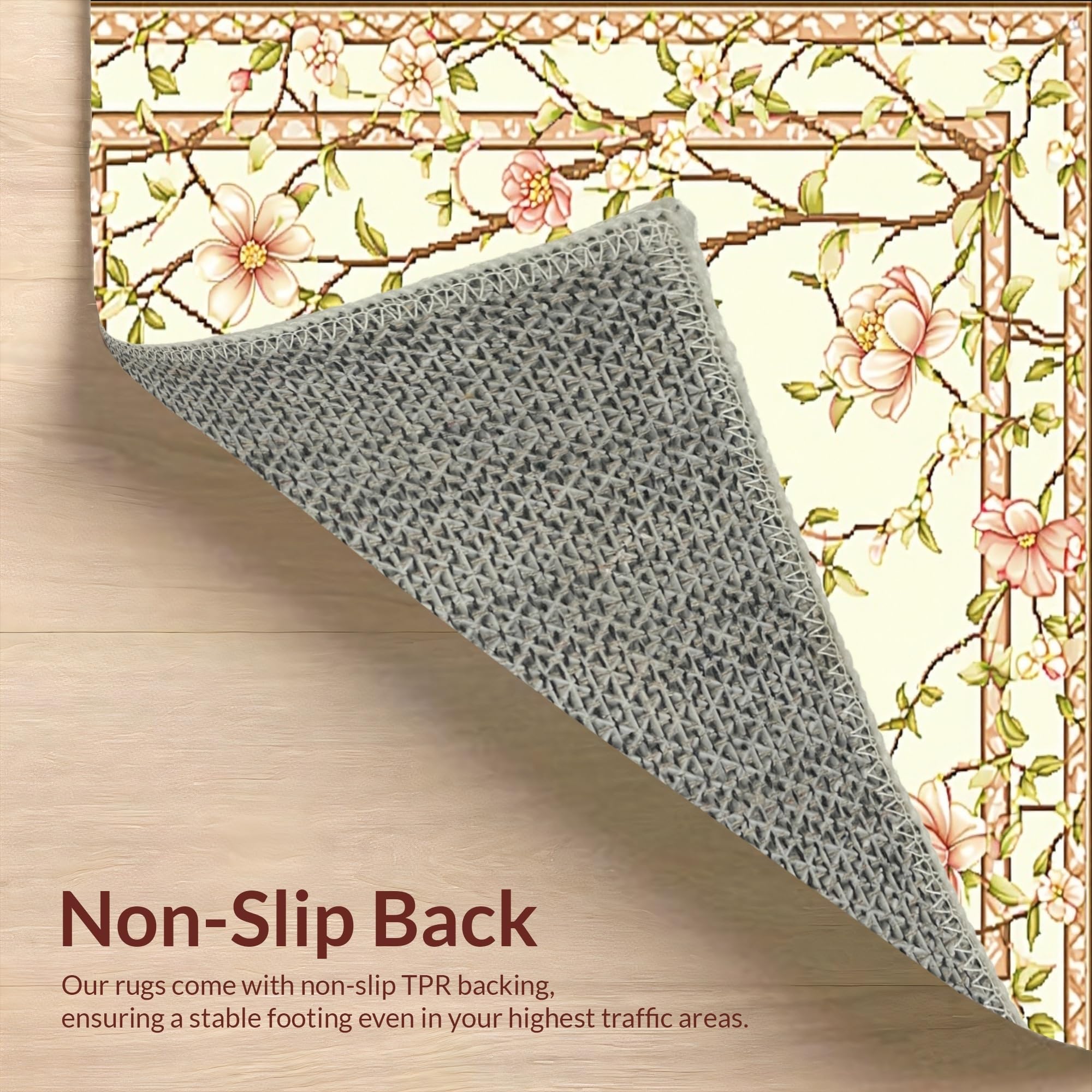 Ultra Soft Area Rug, Non Slip, Stain Resistant, Washable Area Rugs for Living Room, Bedroom, Area Runner with Beige Garden Floral(Ivory) Overview: