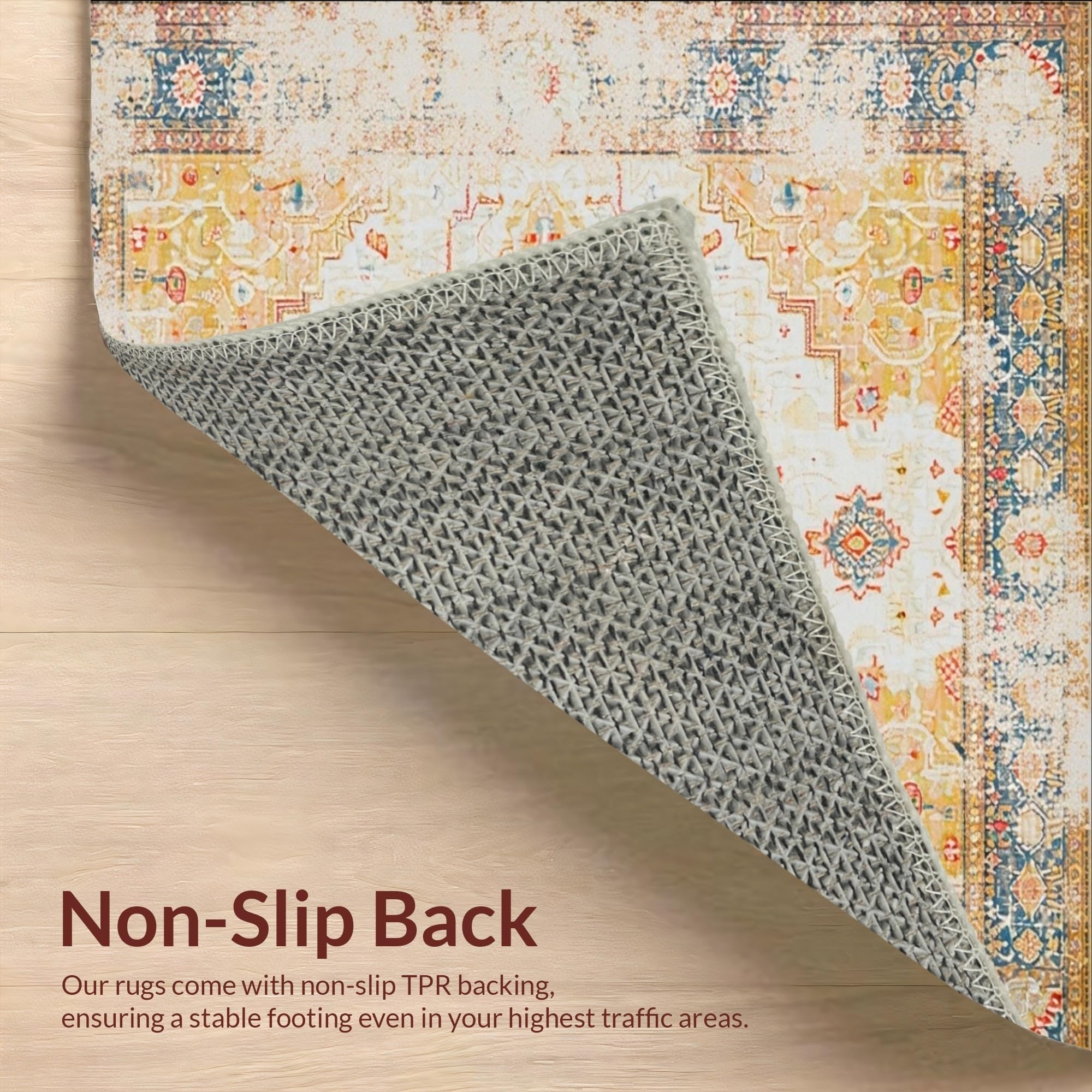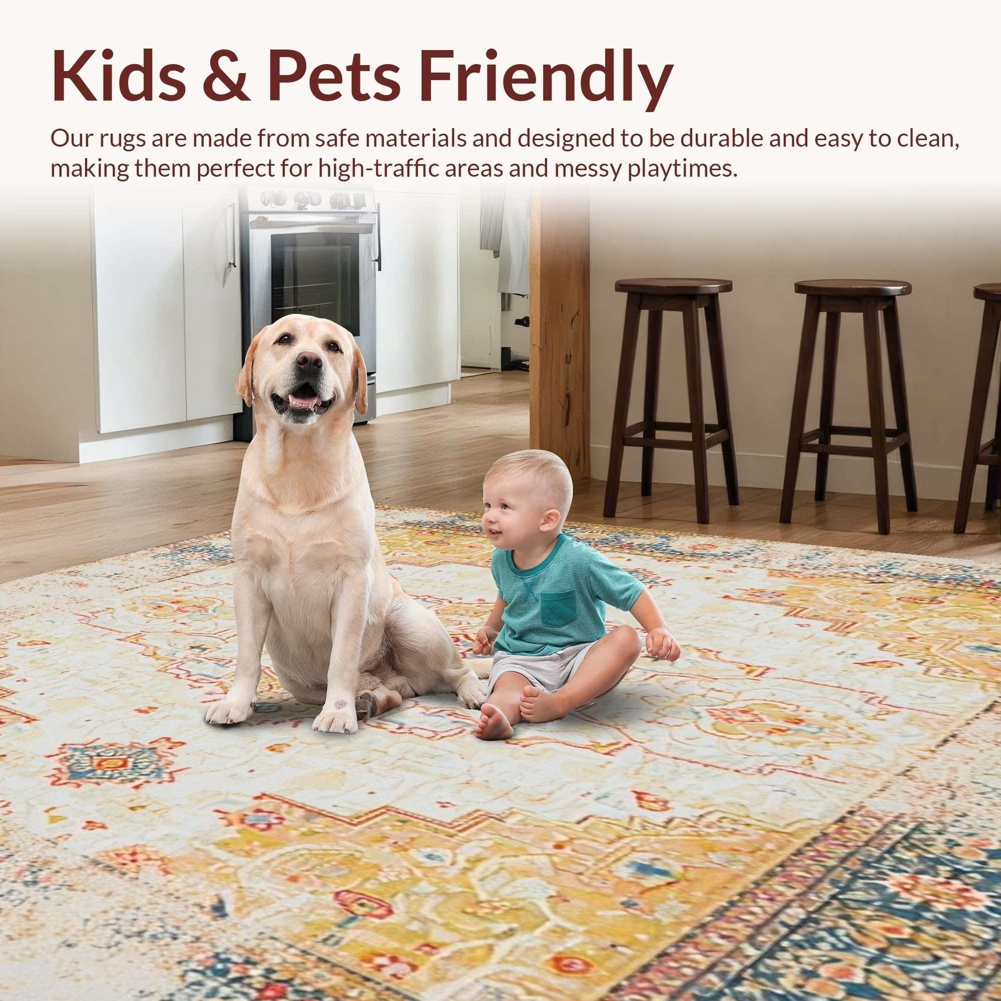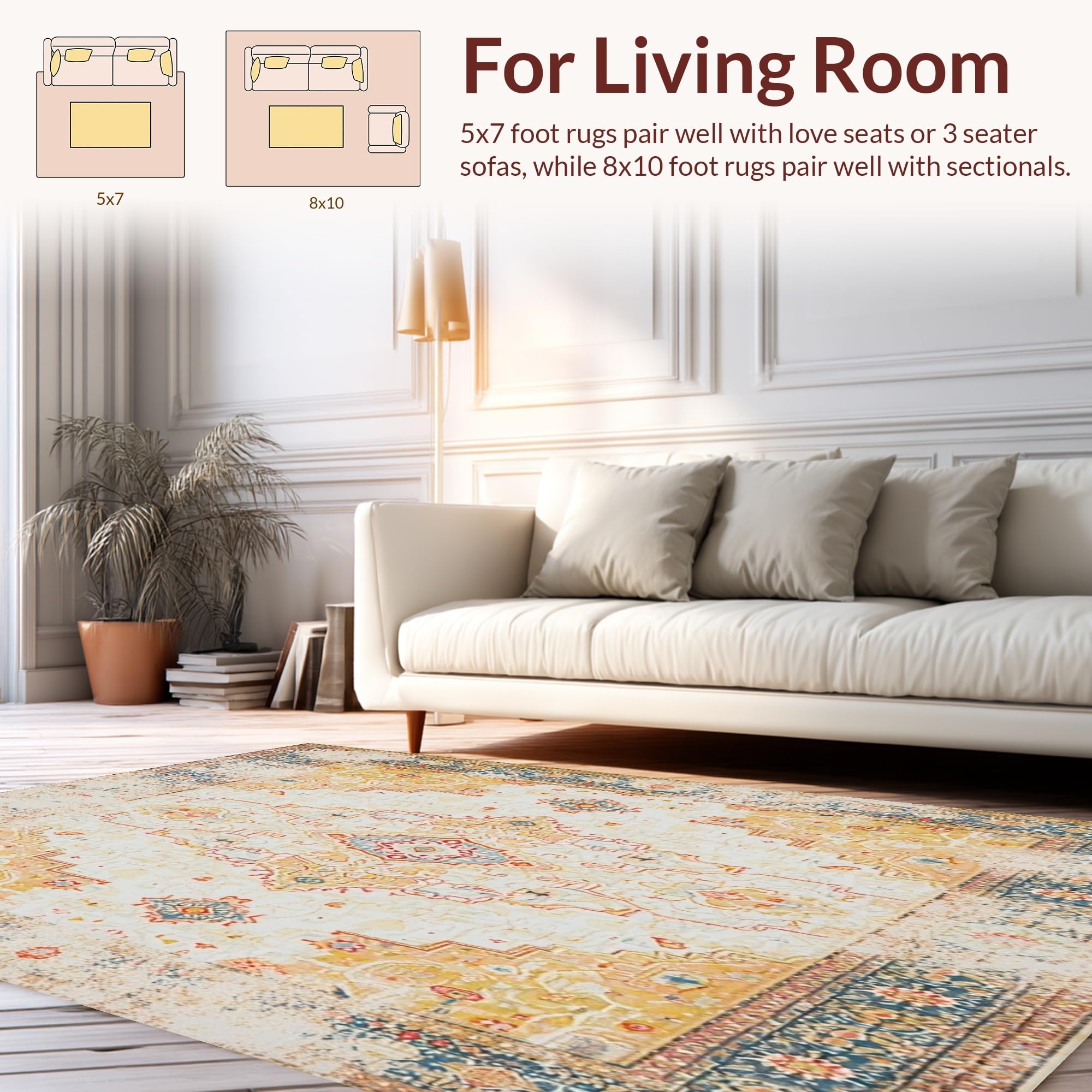 Ultra Soft Area Rug, Non Slip, Stain Resistant, Washable Area Rugs for Living Room, Bedroom, Area with Elegant Vintage Inspired(Ivory) Overview: