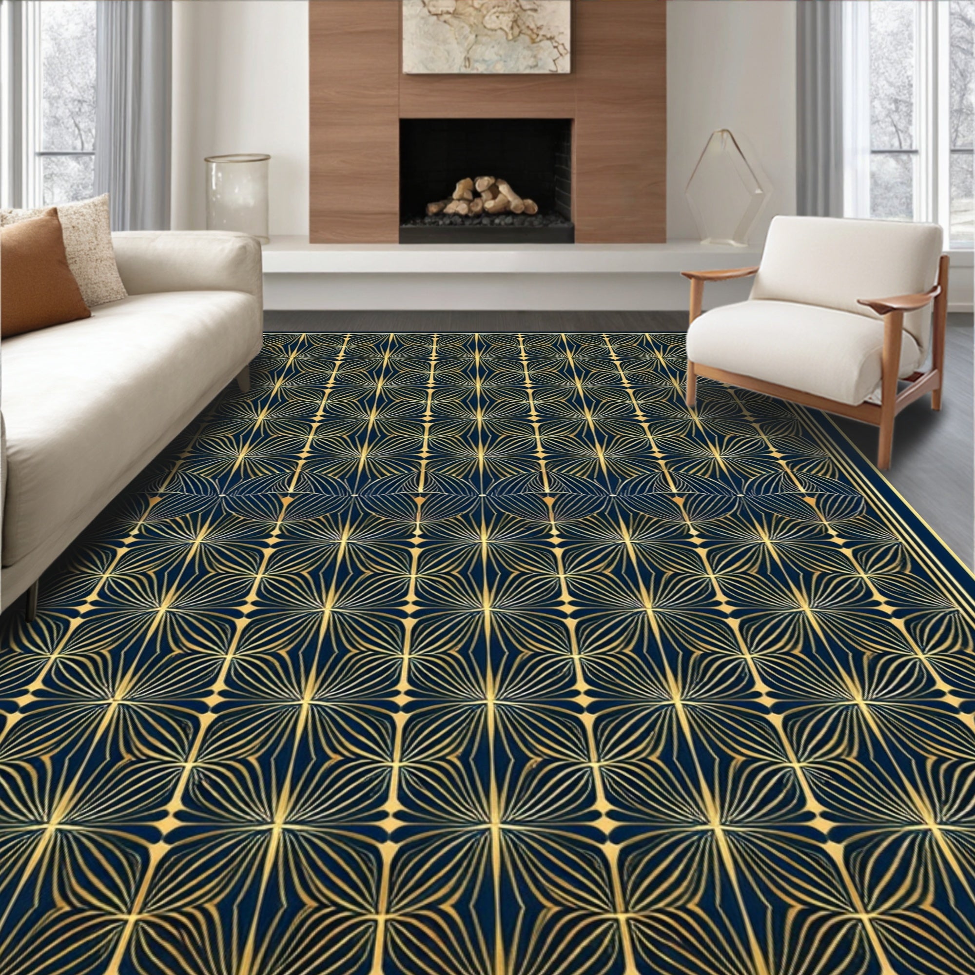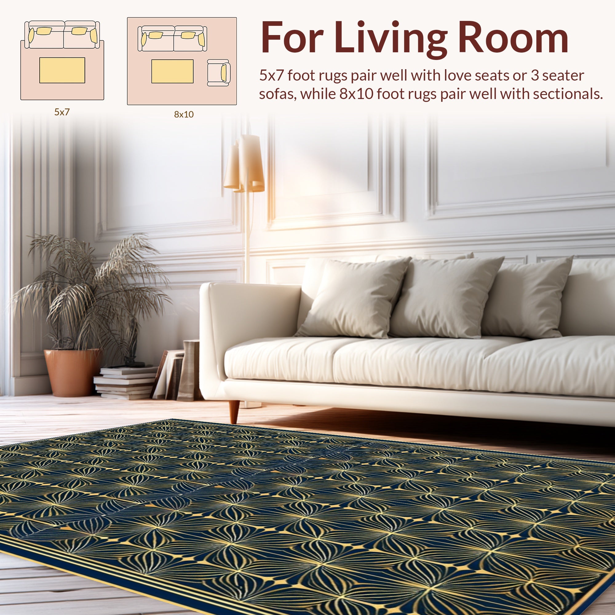 Flatwoven High Traffic Area Rug, Art Deco Revival Interlocking Fan Motif, Non Slip, Stain Resistant, Washable Area Rugs for Living Room, Bedroom (Gold) Overview: